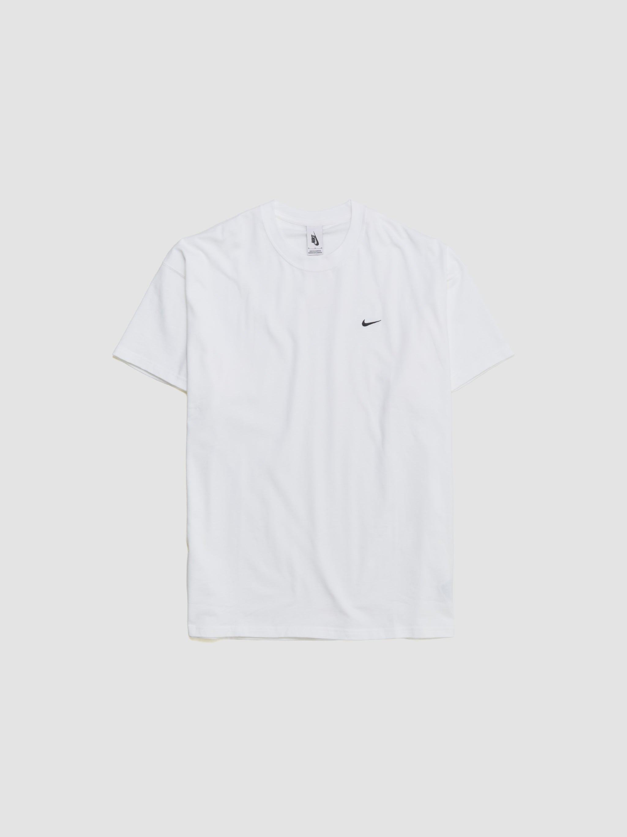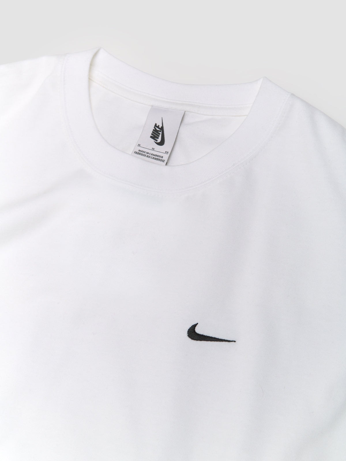 Nike Embroidered Swoosh Tee in White is made from 100% cotton following a boxy silhouette with dropped shoulders.