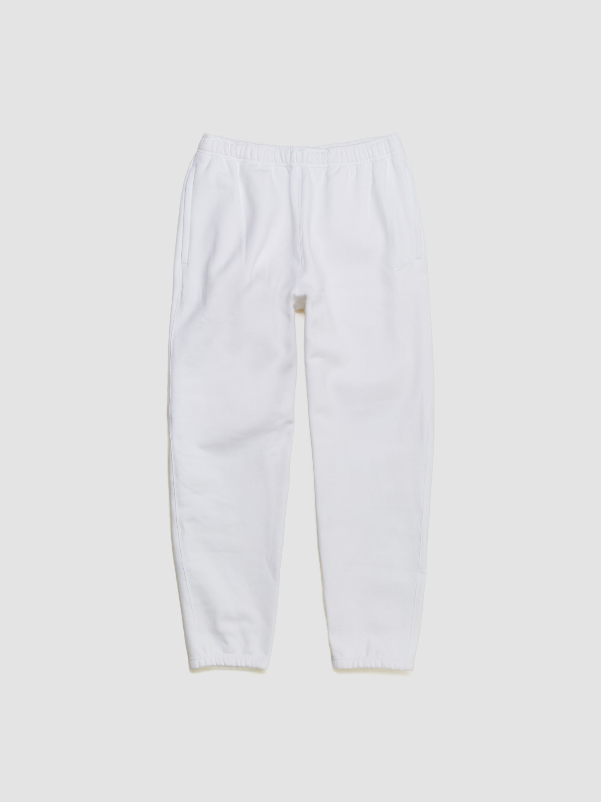 Nike NRG Fleece Trackpant in White are made from a cotton blend, following a relaxed silhouette with elastic waistband and cuffs.