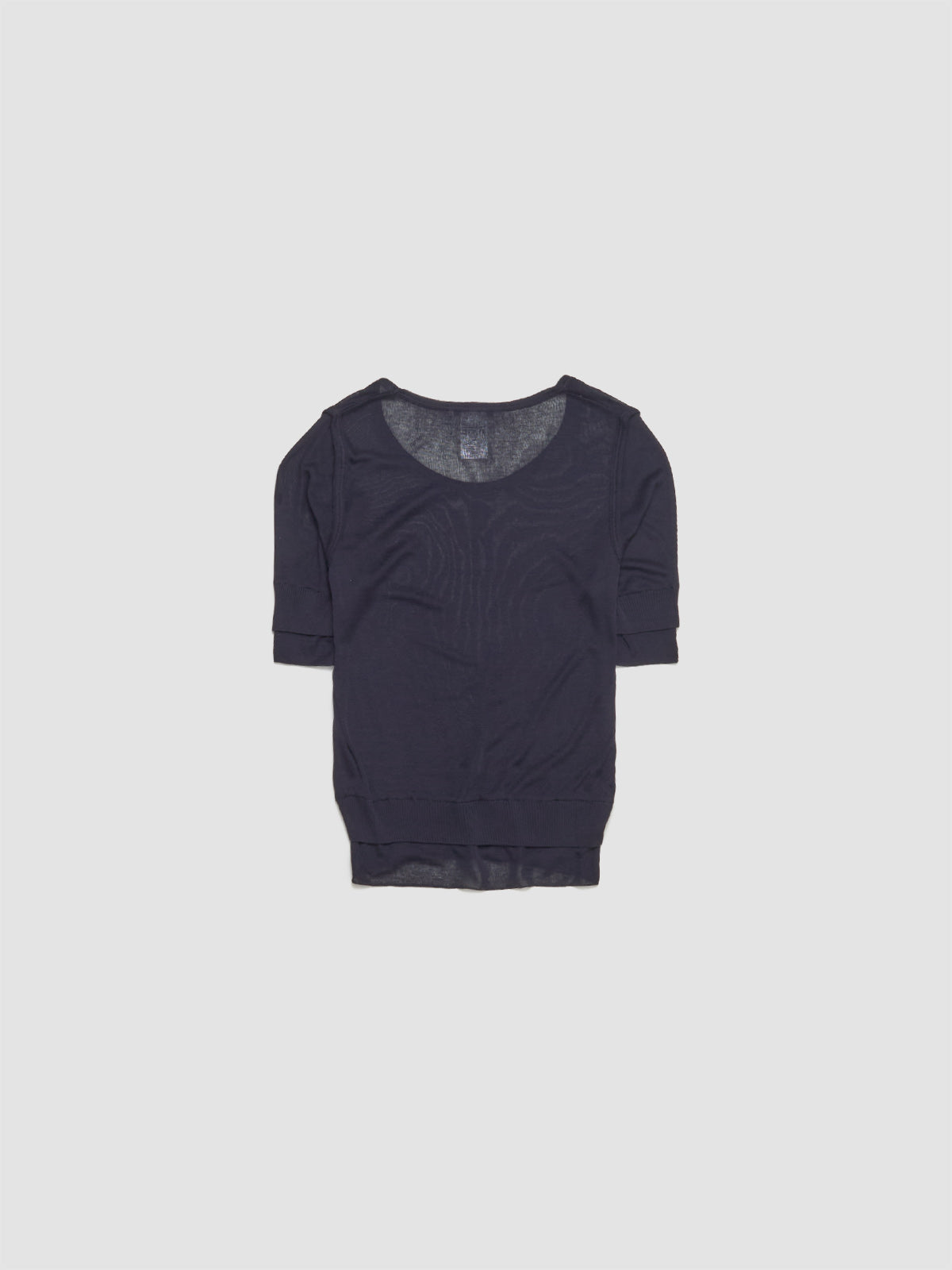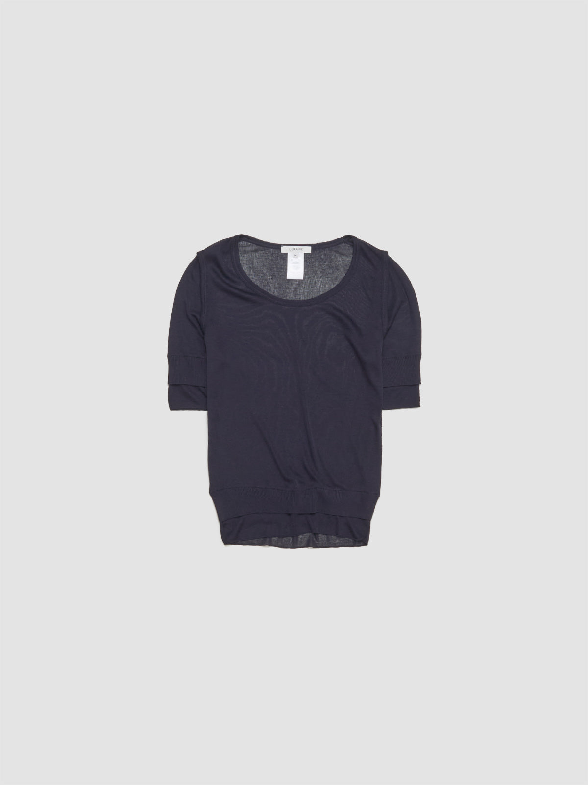 Lemaire Seamless Trompe L'Oeil Top in Midnight is made from viscose blend following a fitted silhouette with layered trompe-l’œil effect.