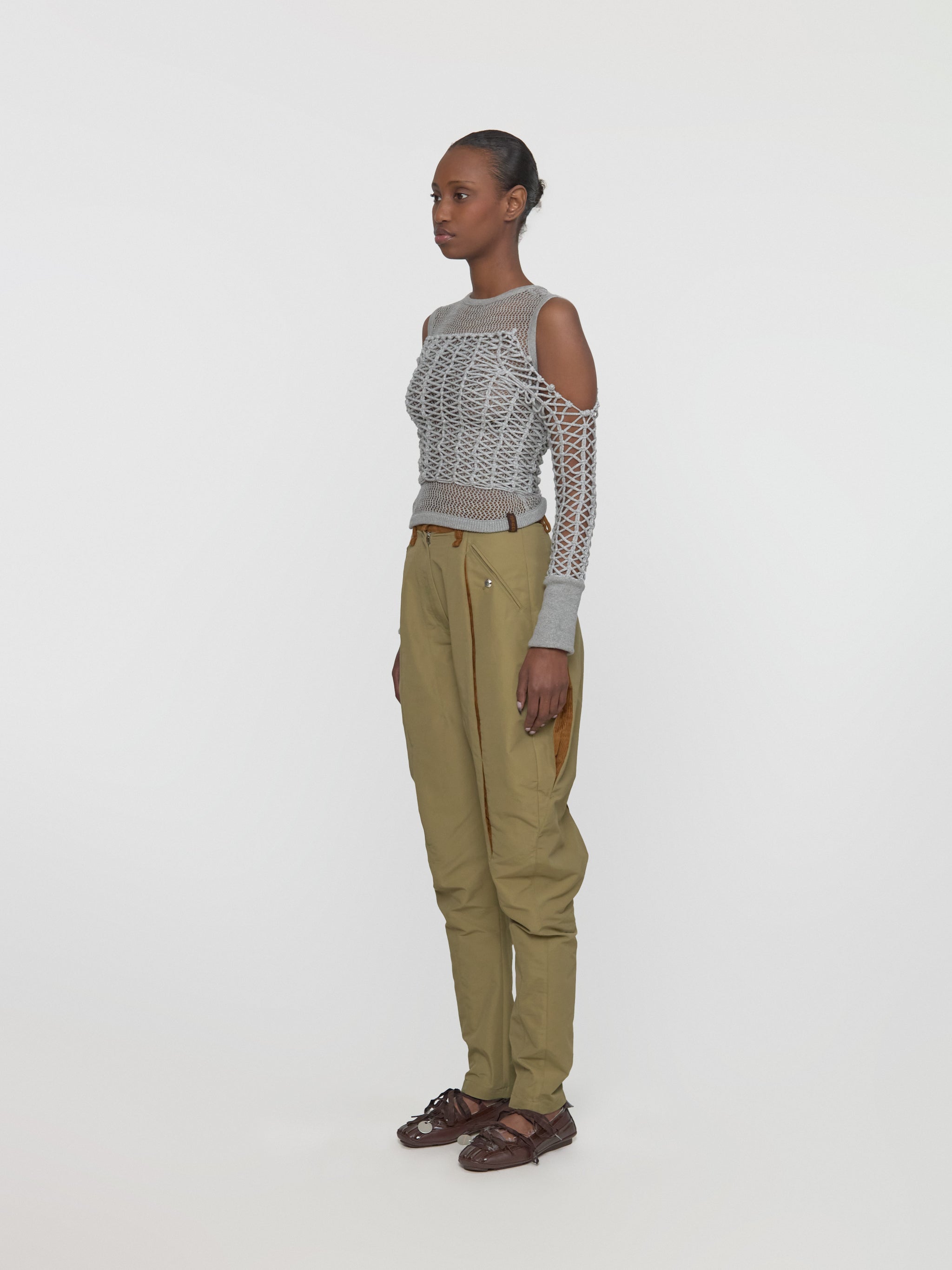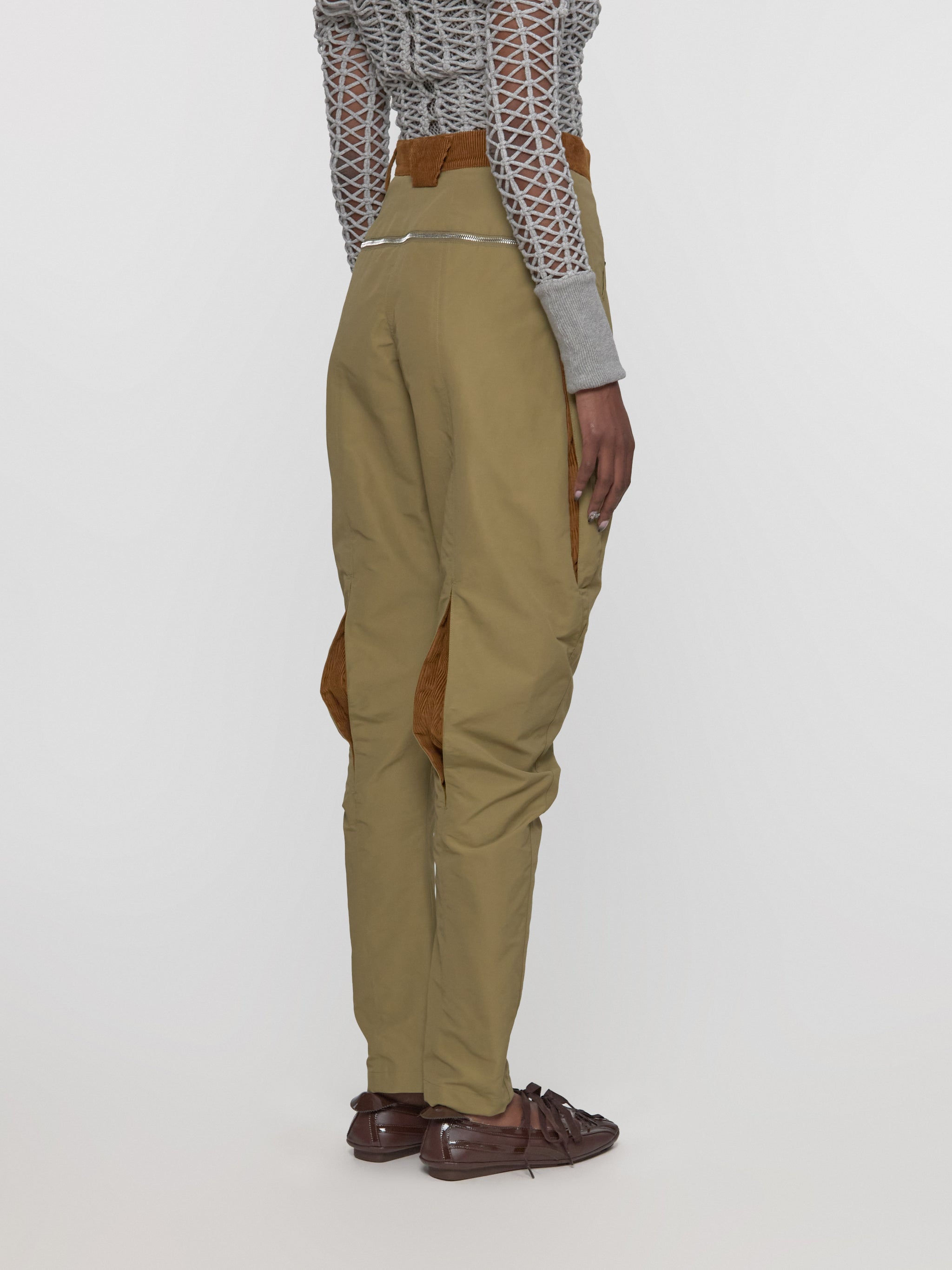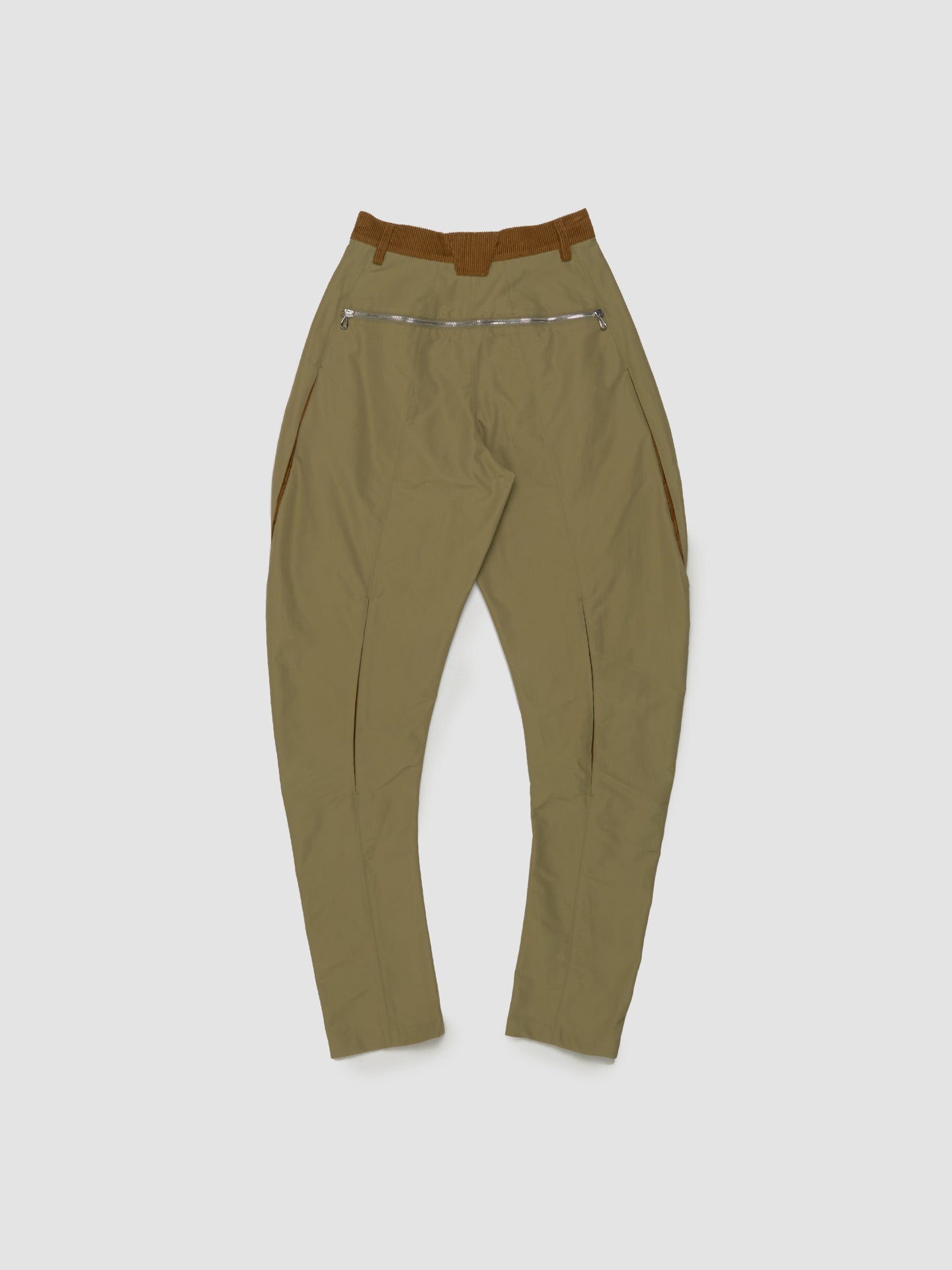 KIKO KOSTADINOV Chasseur Trouser in Olive Green & Honey are made from a cotton blend following a fitted silhouette with inverted pleats throughout.