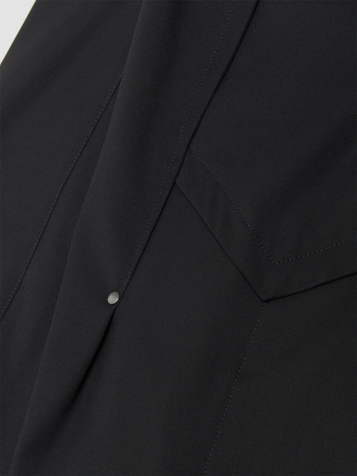 – Snap button and zip-fly closure with asymmetric opening
