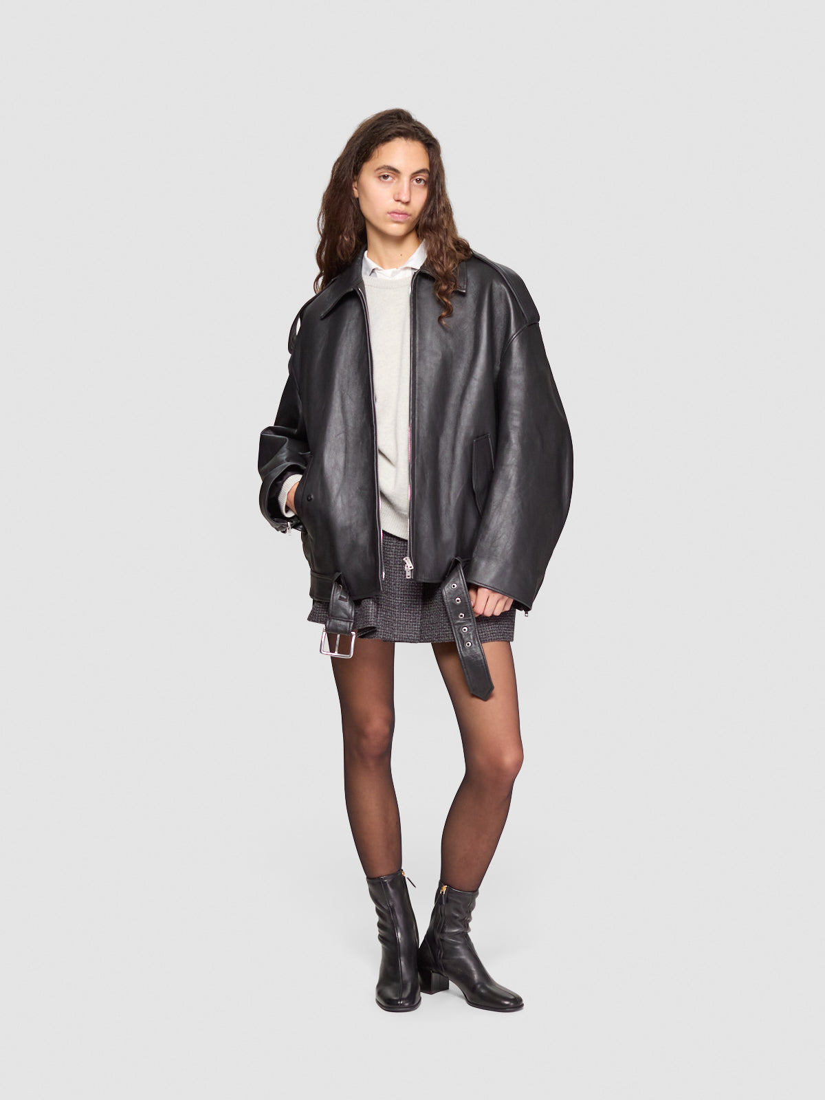 Acne Studios Leather Jacket in Black is made from 100% leather following a boxy silhouette with an integrated belt at the hem.