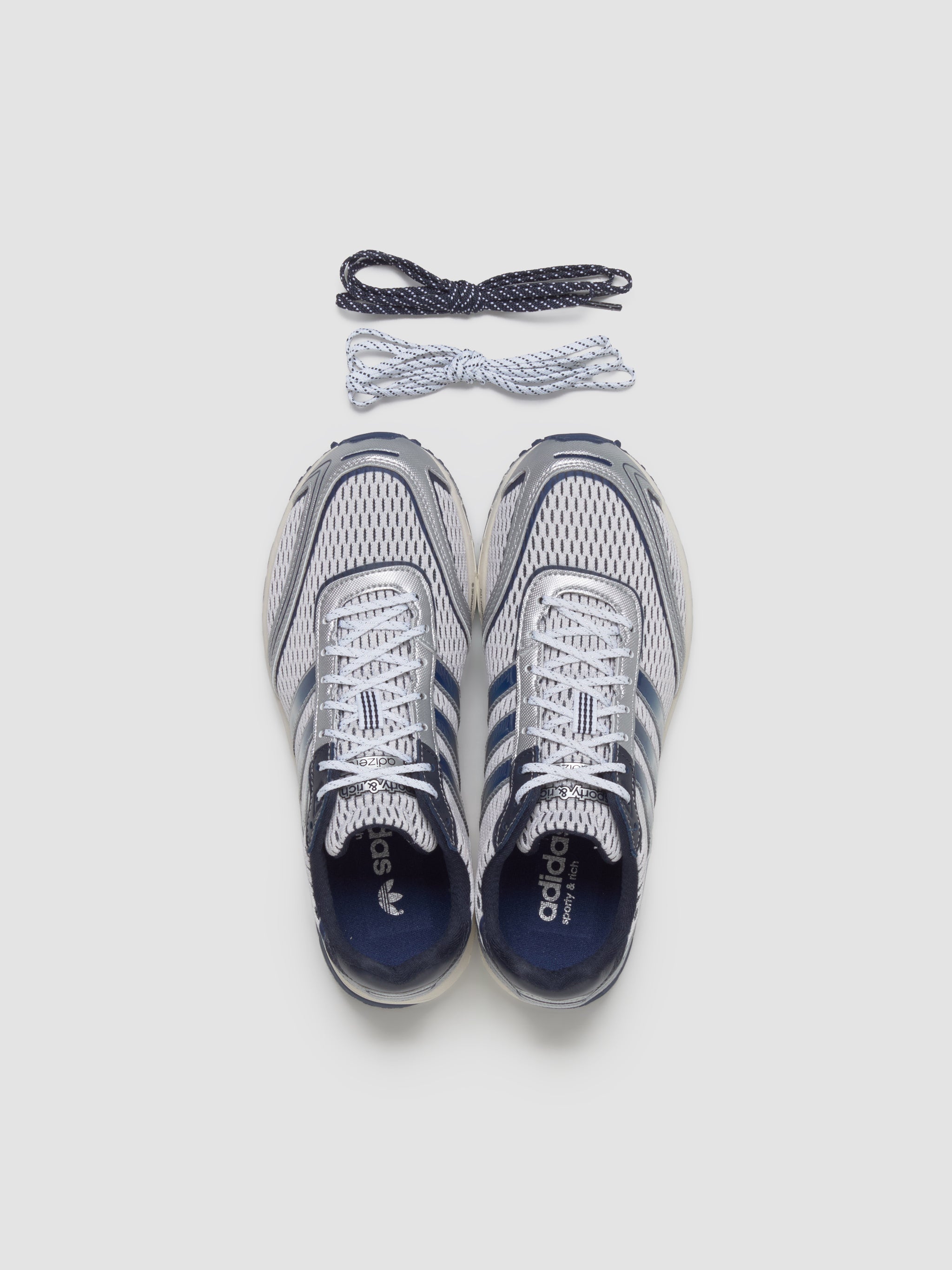 x Sporty & Rich WMNS Adizero Adios Sneaker in White & Core Navy