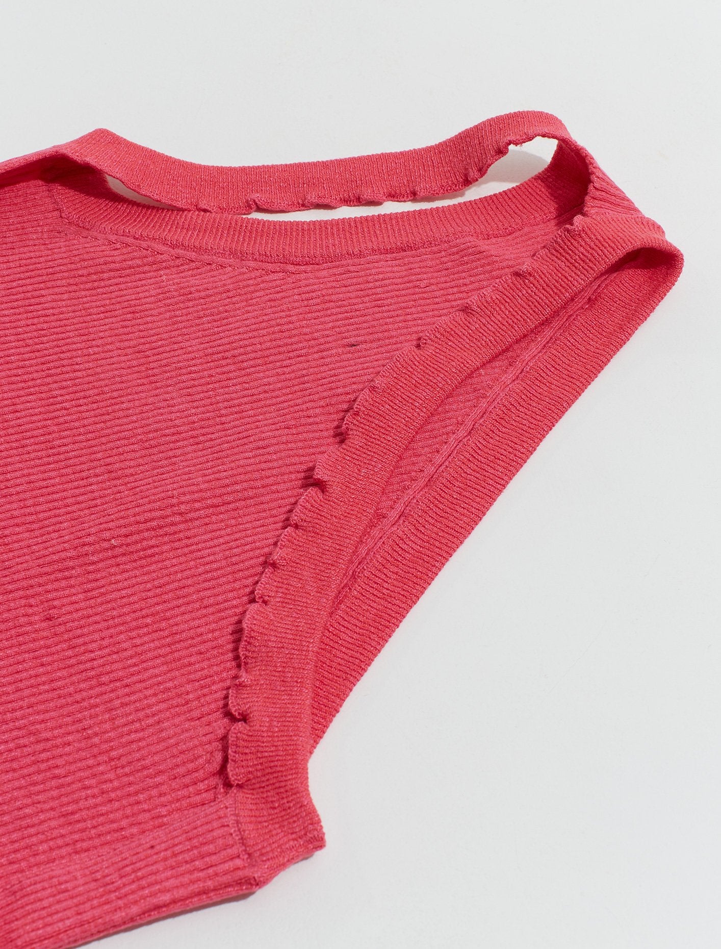 Jacquemus La Maille Ascu in Pink is made from a linen blend following an asymmetric silhouette with an open back.