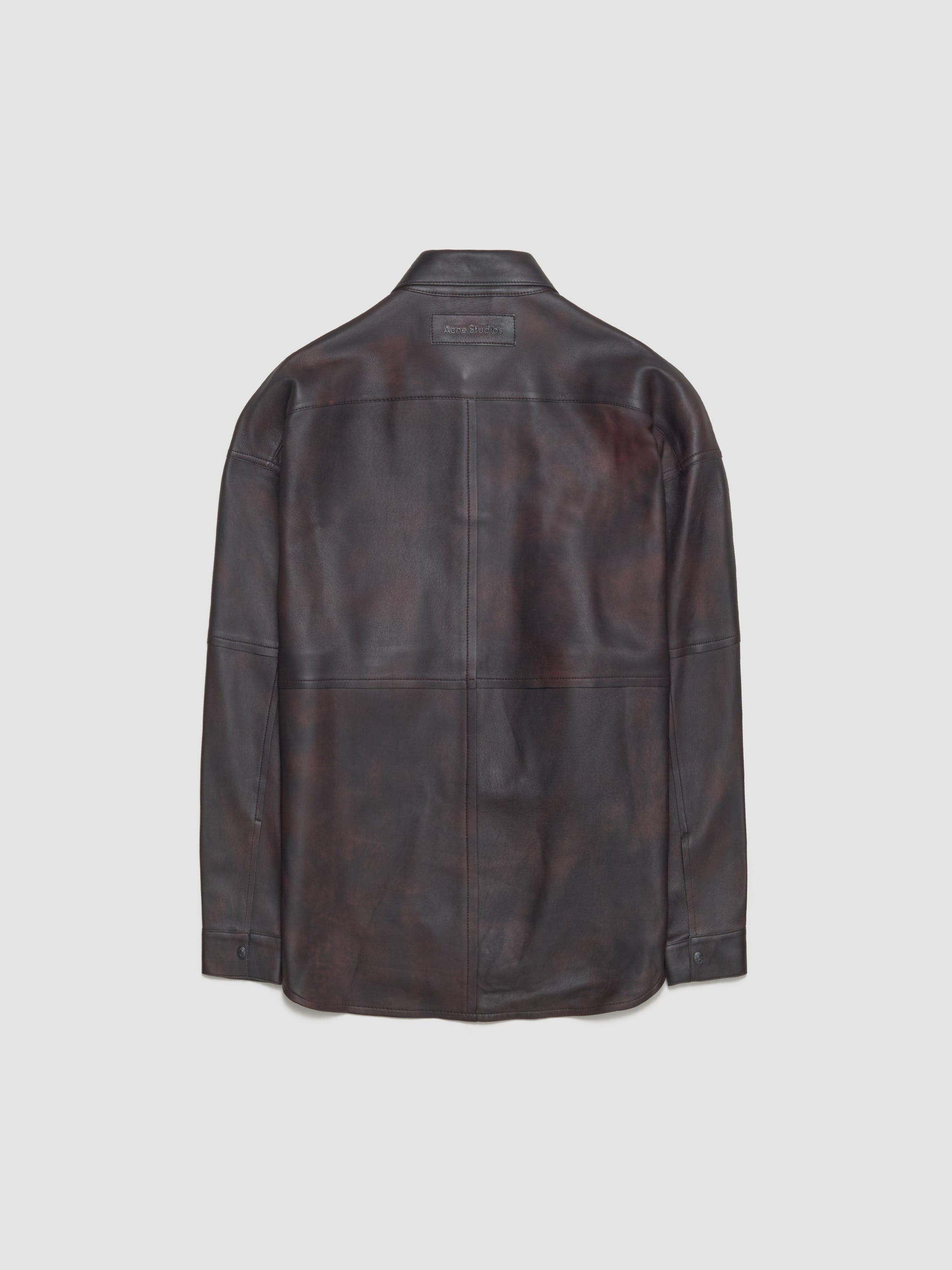 Acne Studios Leather Shirt Jacket in Black & Red is made from 100% leather following a loose silhouette with an embossed logo patch at the back.