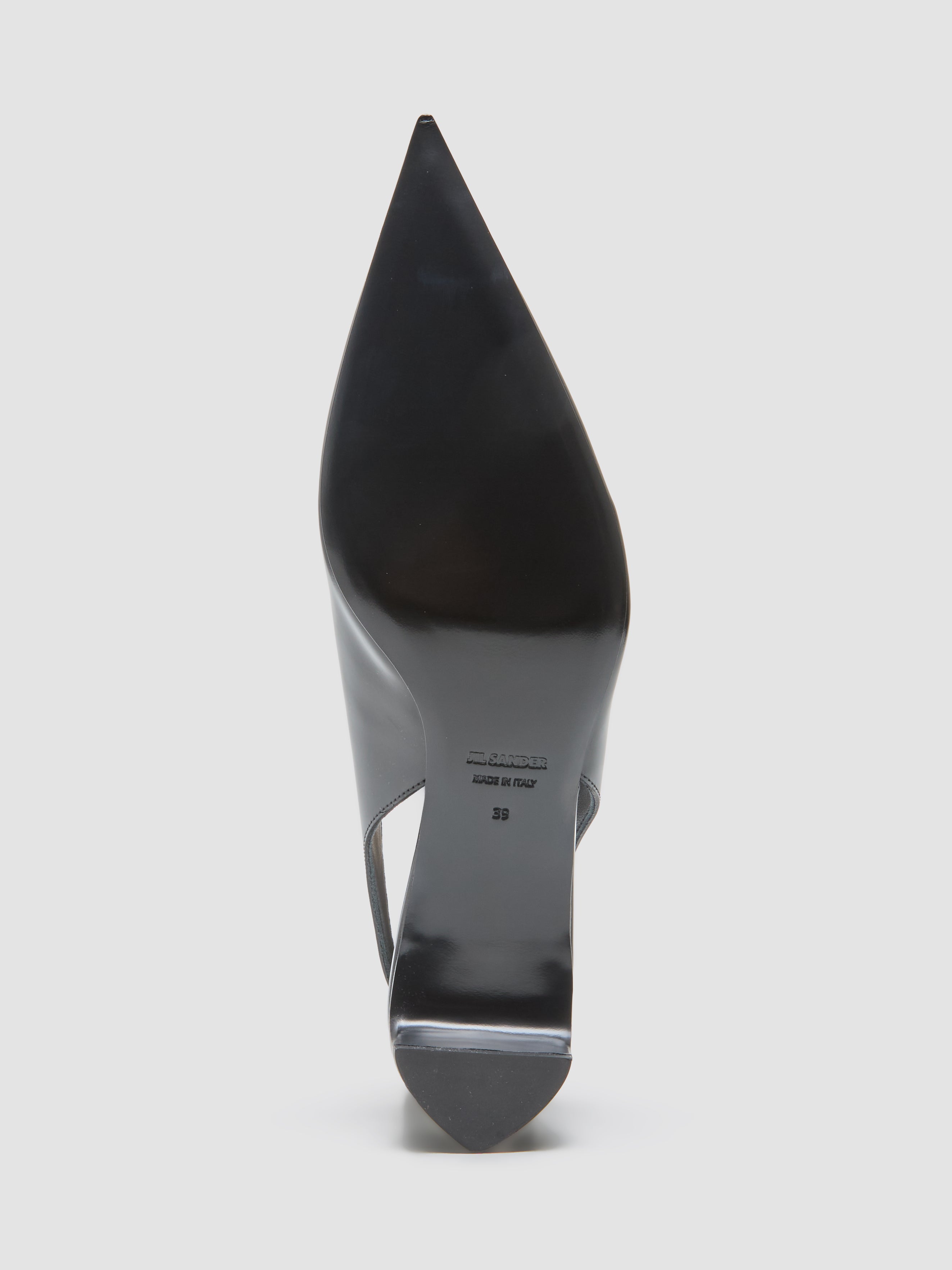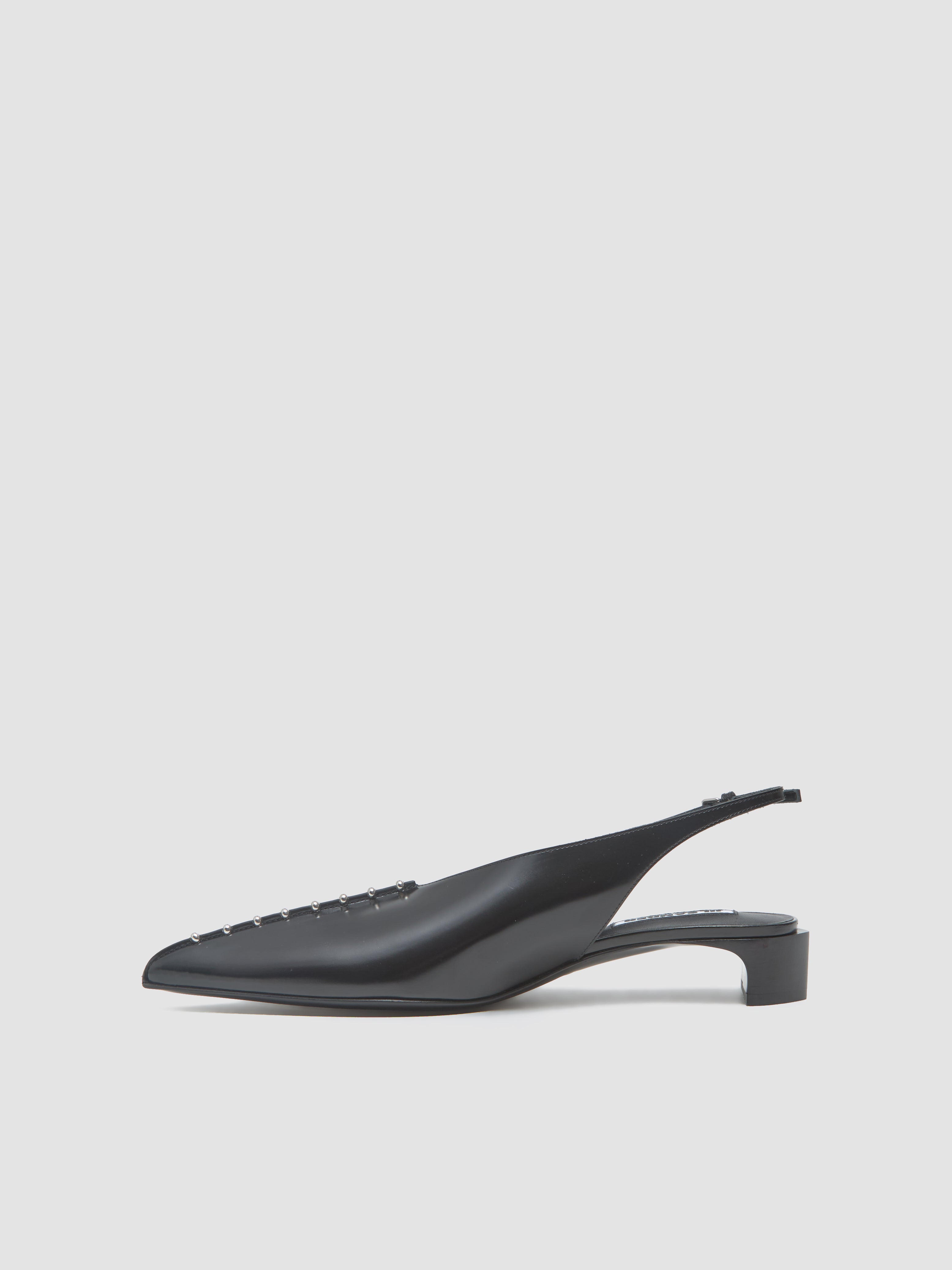 Jil Sander Sling Back Pumps in Black in Black are made from 100% leather featuring silver-toned pearl detailing along the top.