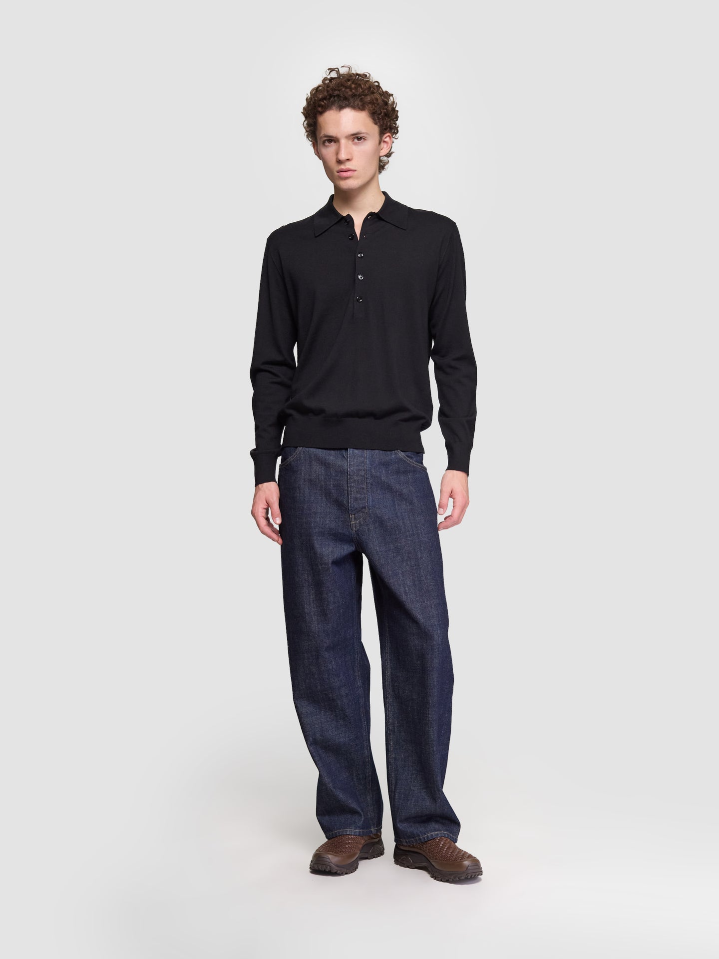 Dries Van Noten Muano Polo in Black is made from 100% wool following a fitted silhouette with a polo collar.