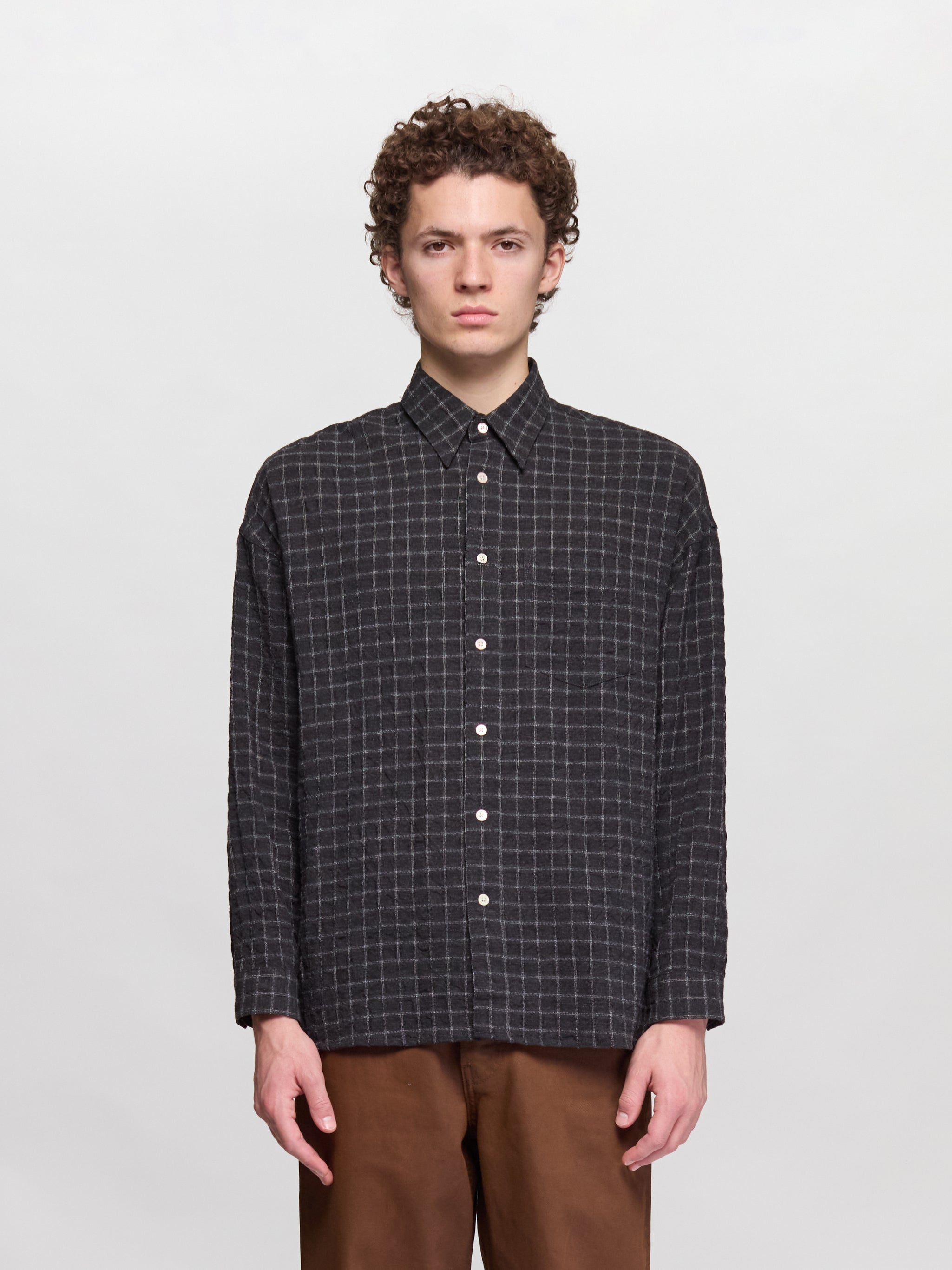 Sunflower Stable Shirt in Black Check is made from a viscose blend following a relaxed silhouette with an all-over check pattern.