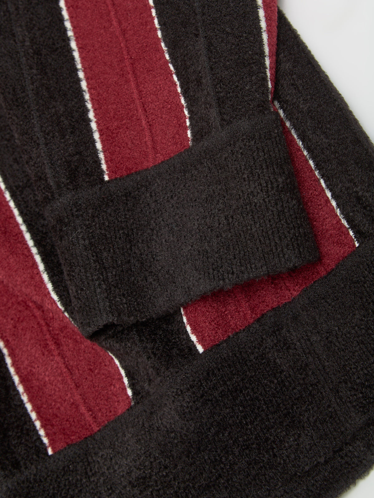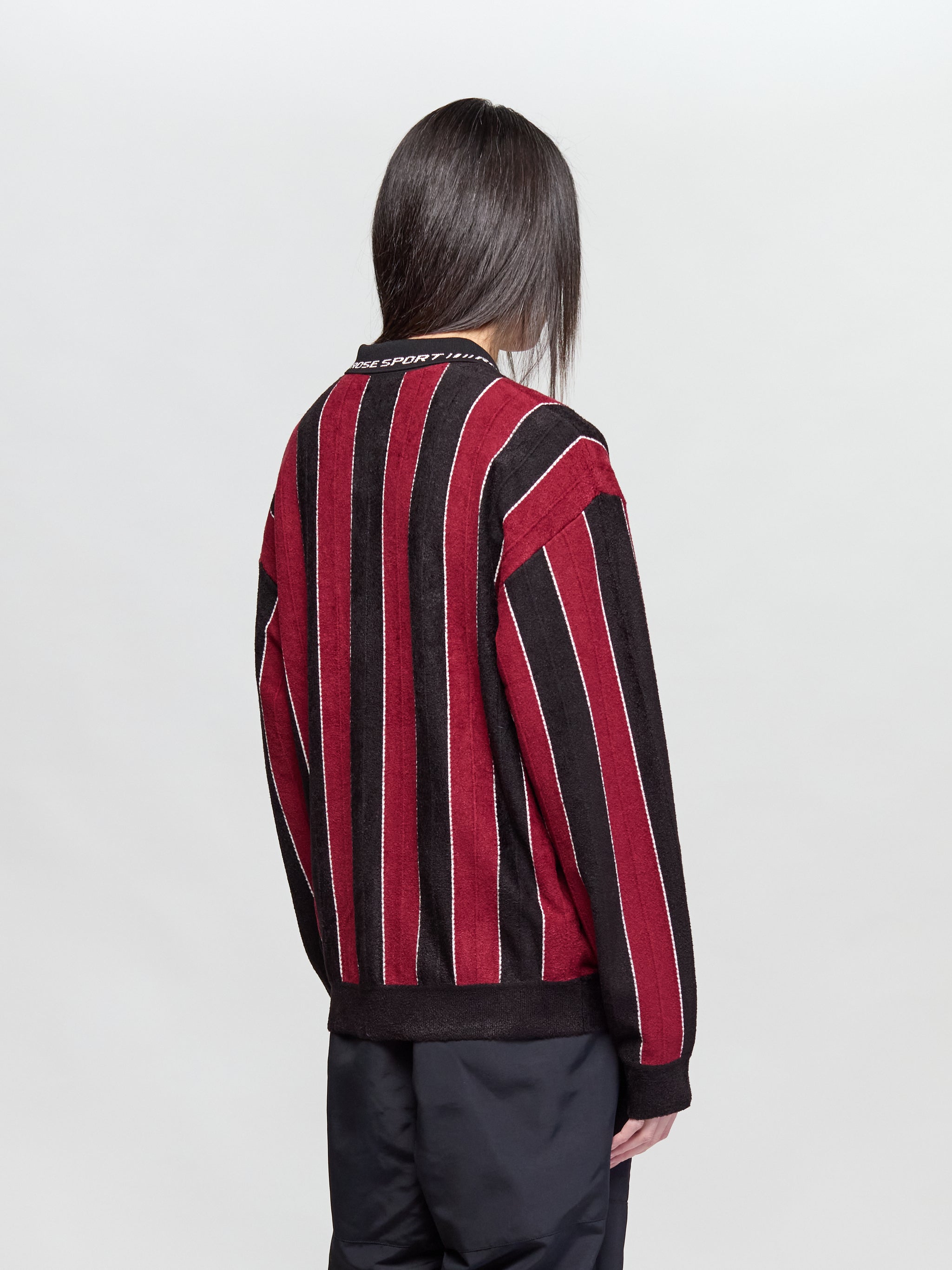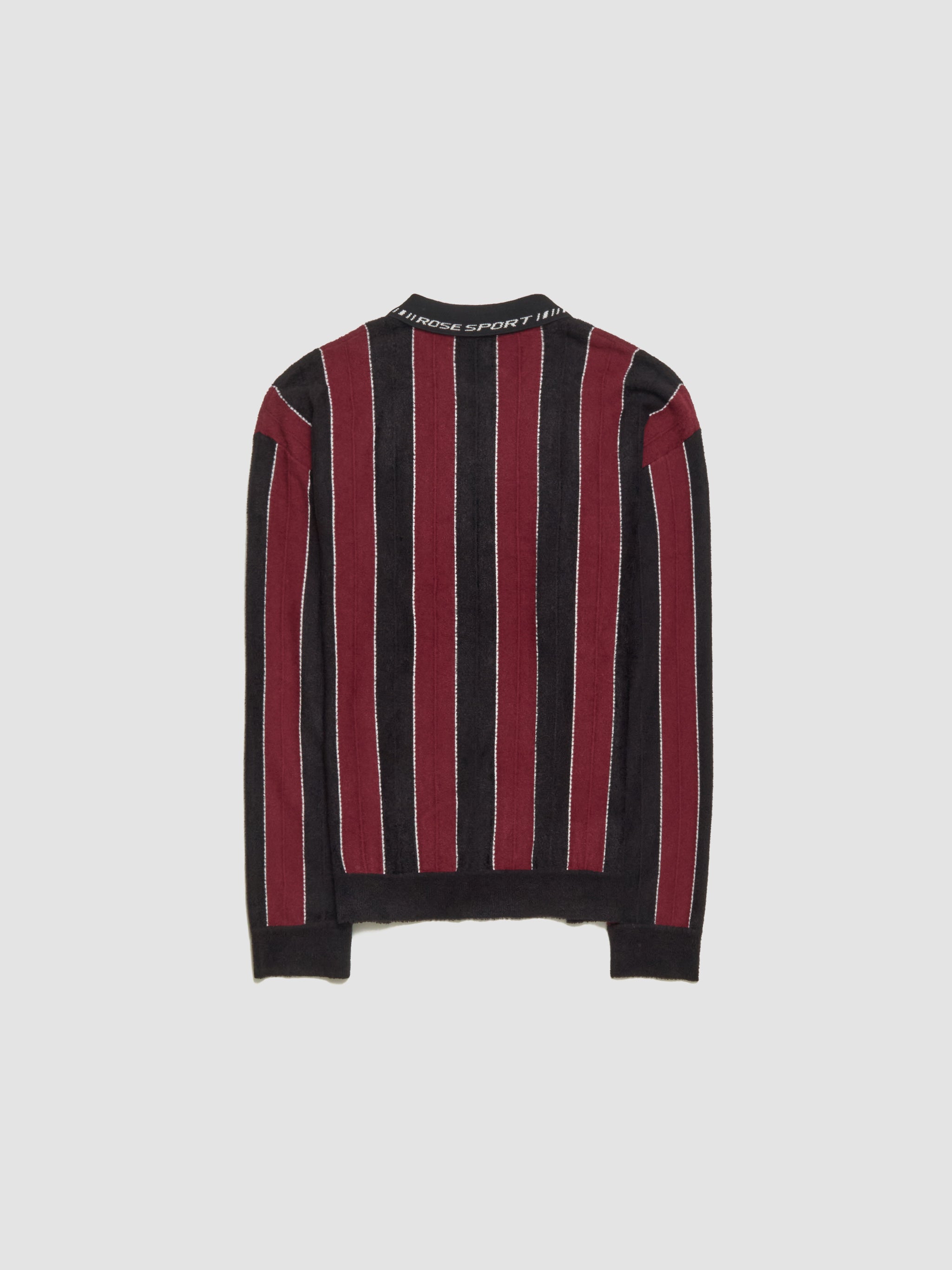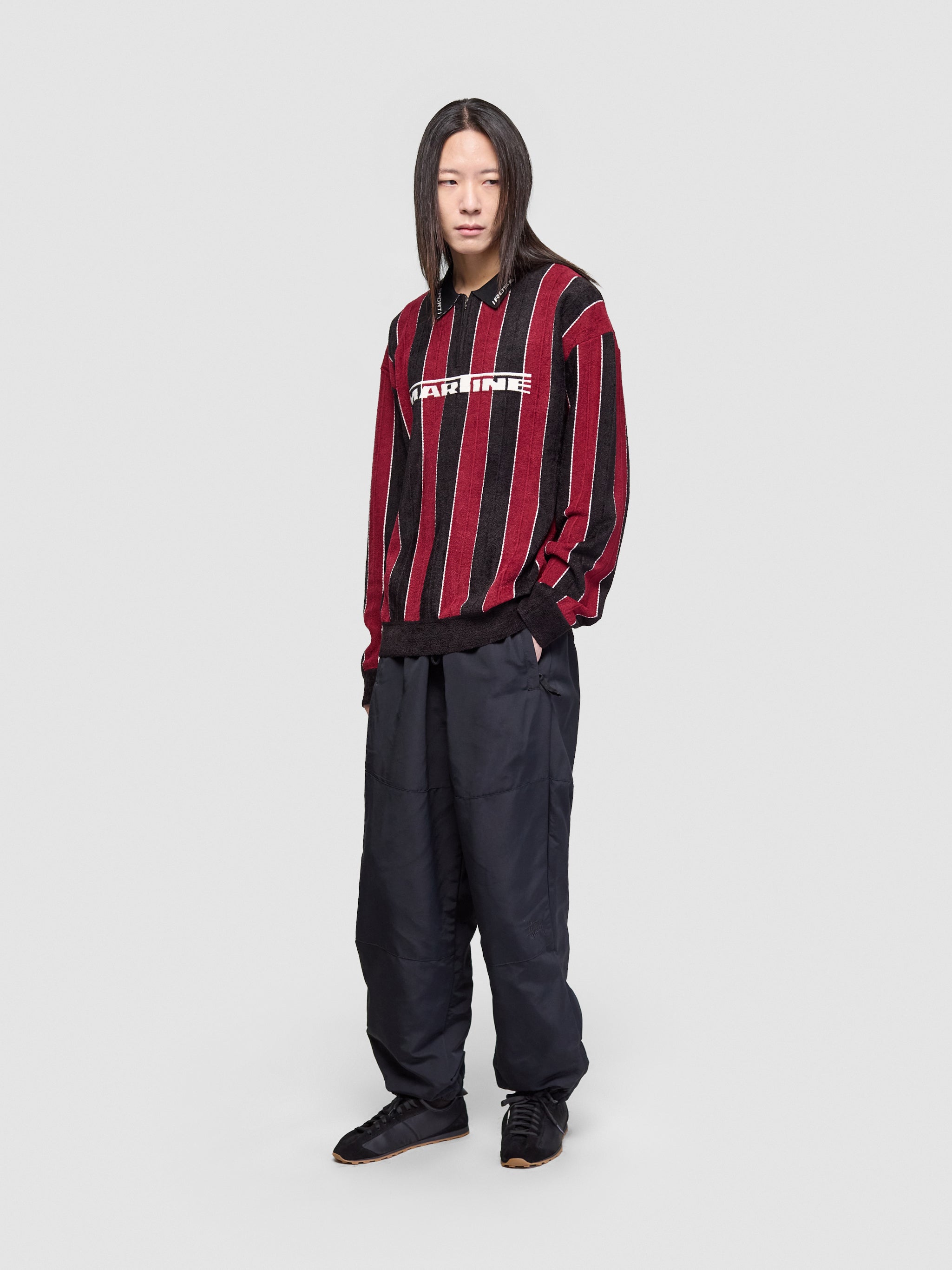 Martine Rose Sporty Logo Polo in Black is made from a viscose blend following a relaxed silhouette with an all-over striped pattern.