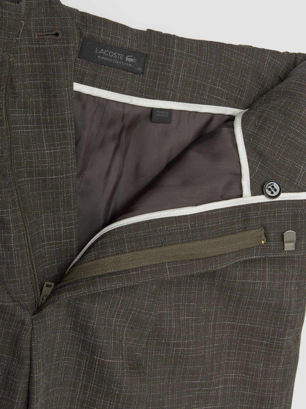 Lacoste Nebraska Trousers in Opium is made from a wool blend following a straight silhouette with a pressed crease along the legs.
