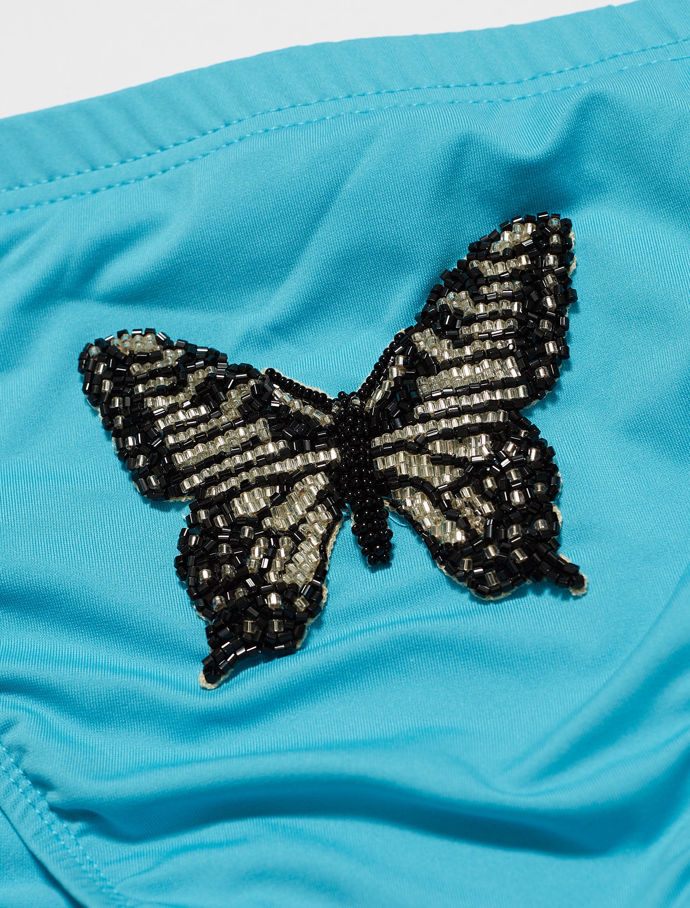 LAZOSCHMIDL SS21 Toby Speedo Blue is made from a polyester blend following a low–rise silhouette with a beaded butterfly detail at centre front.