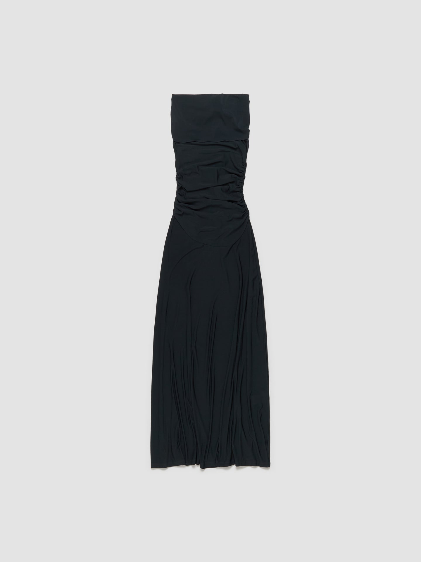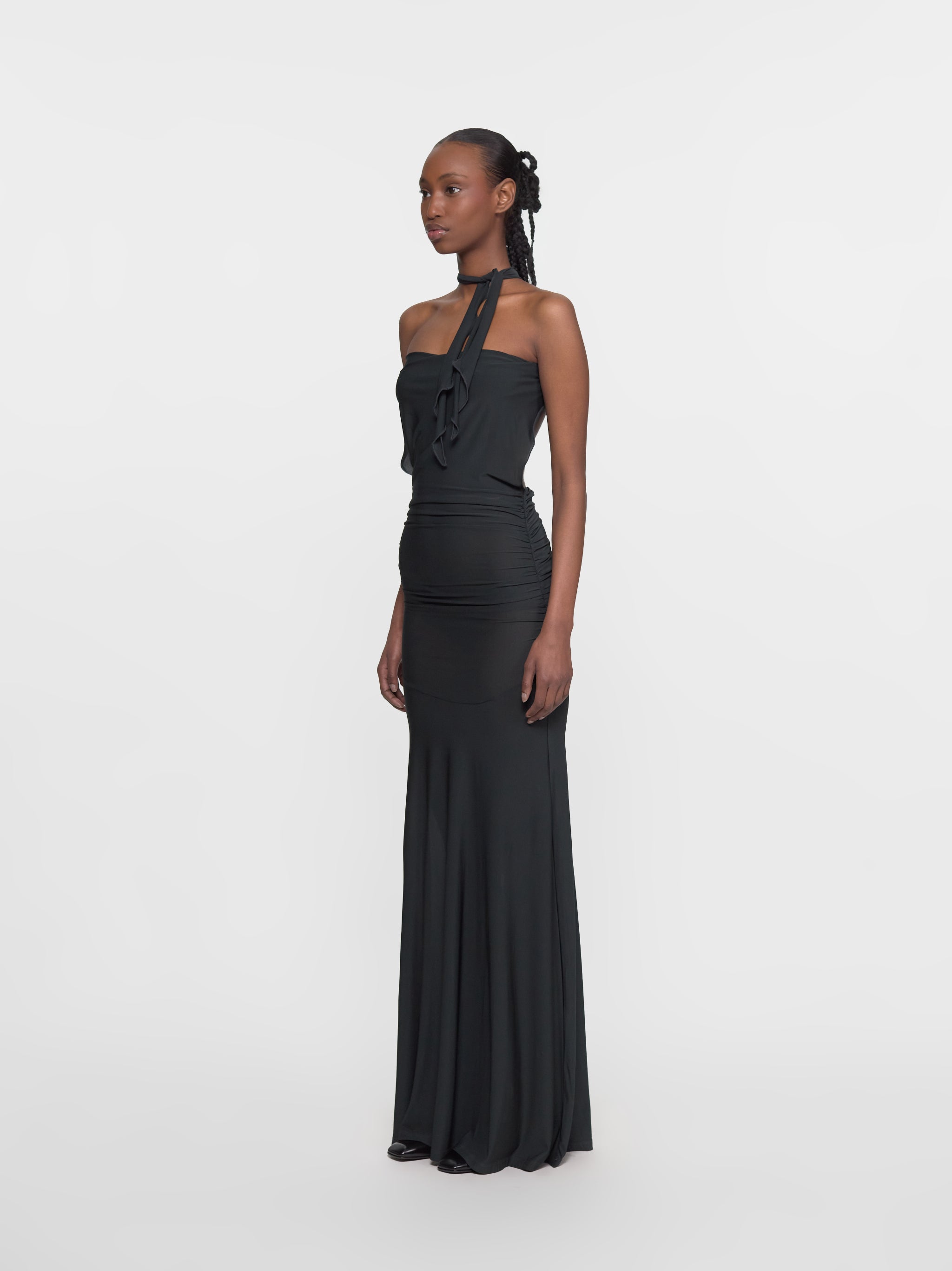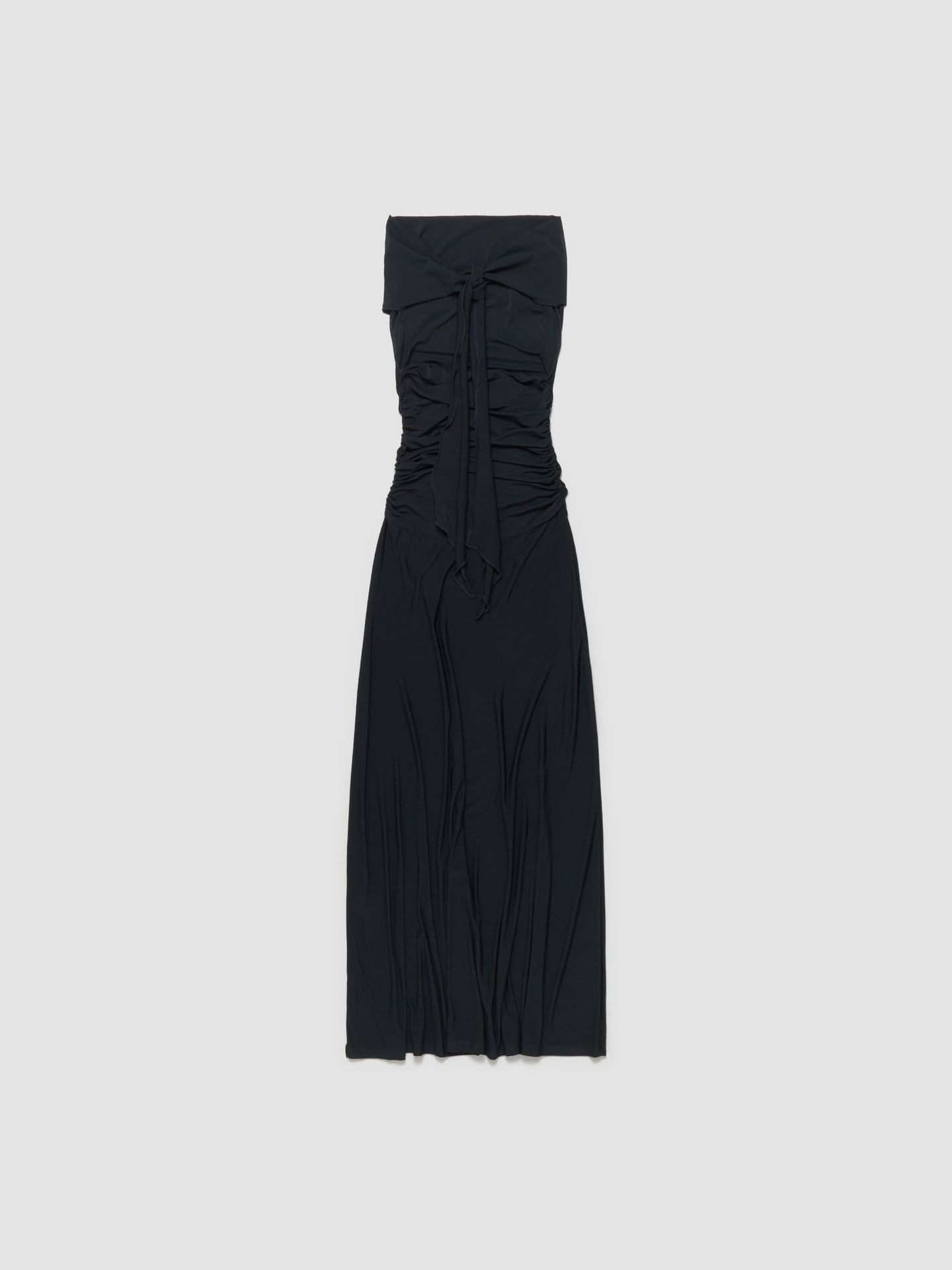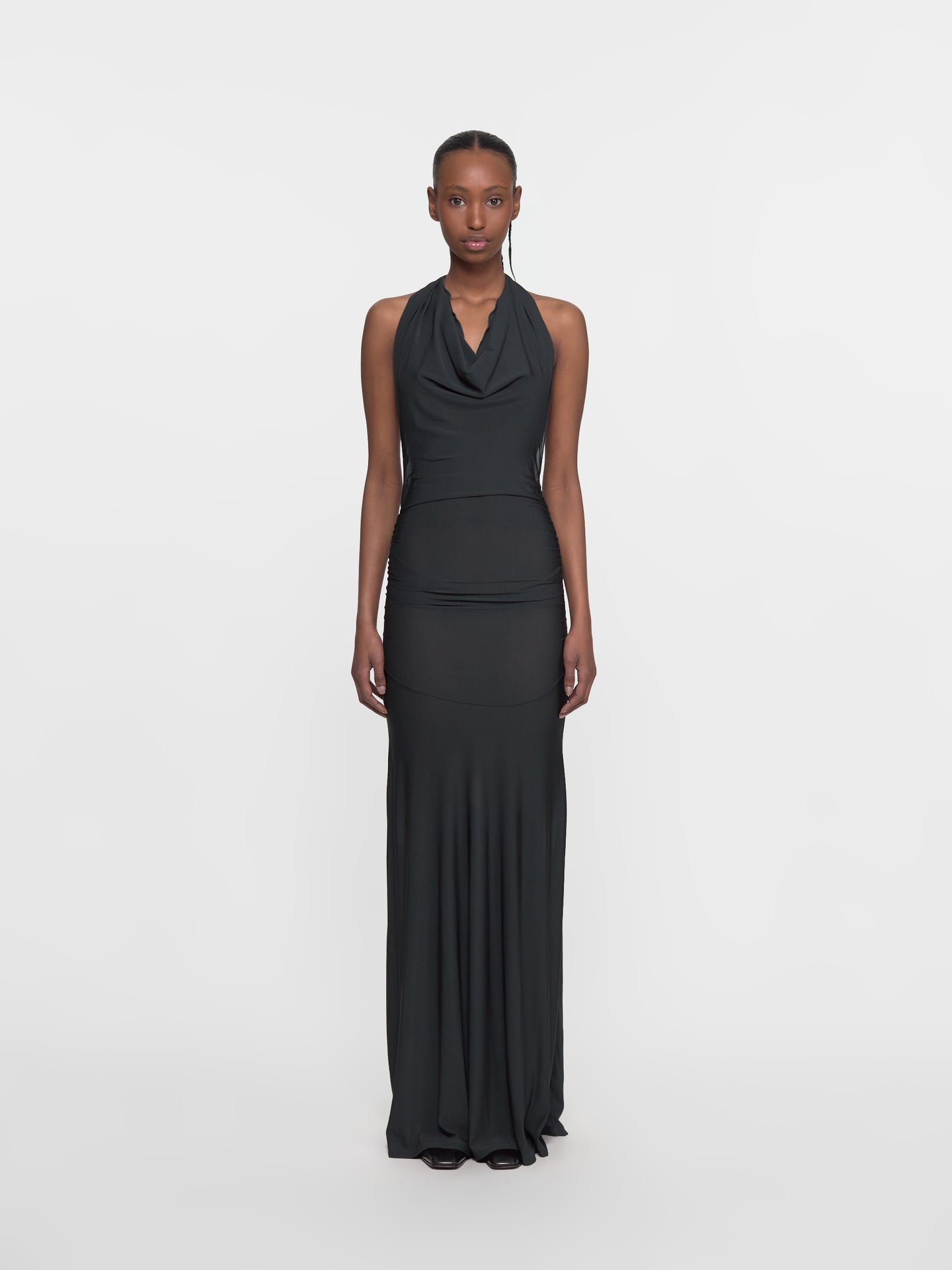 Paloma Wool Jay Dress in Dark Green is made from a viscose blend following a fitted silhouette with a draped adjustable neck.