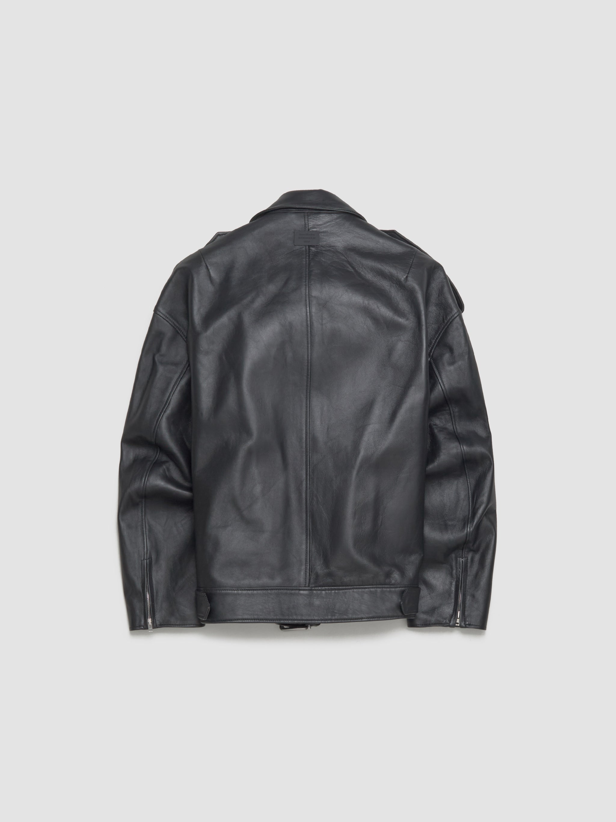 Acne Studios Leather Jacket in Black is made from 100% leather following a boxy silhouette with an integrated belt at the hem.