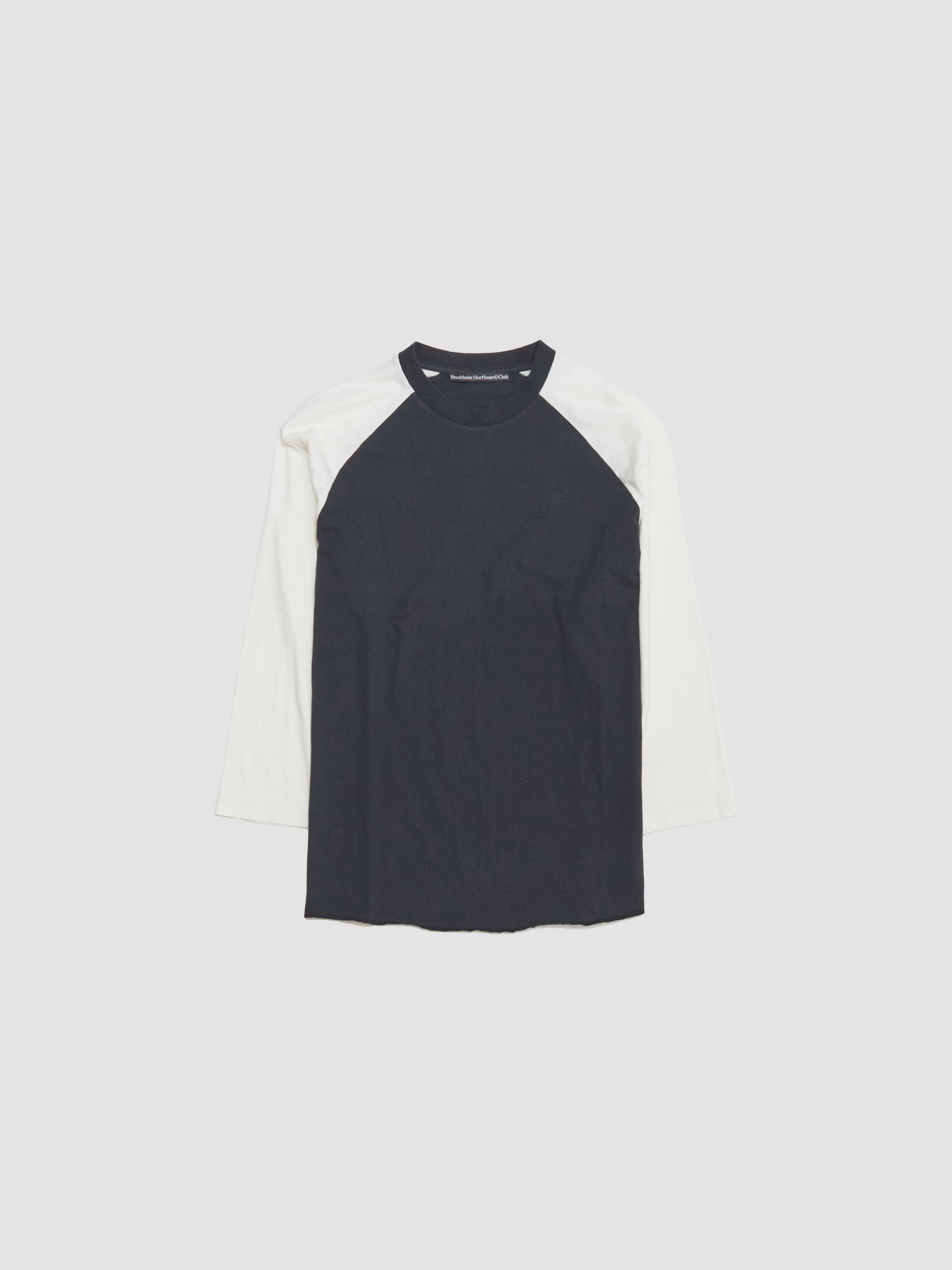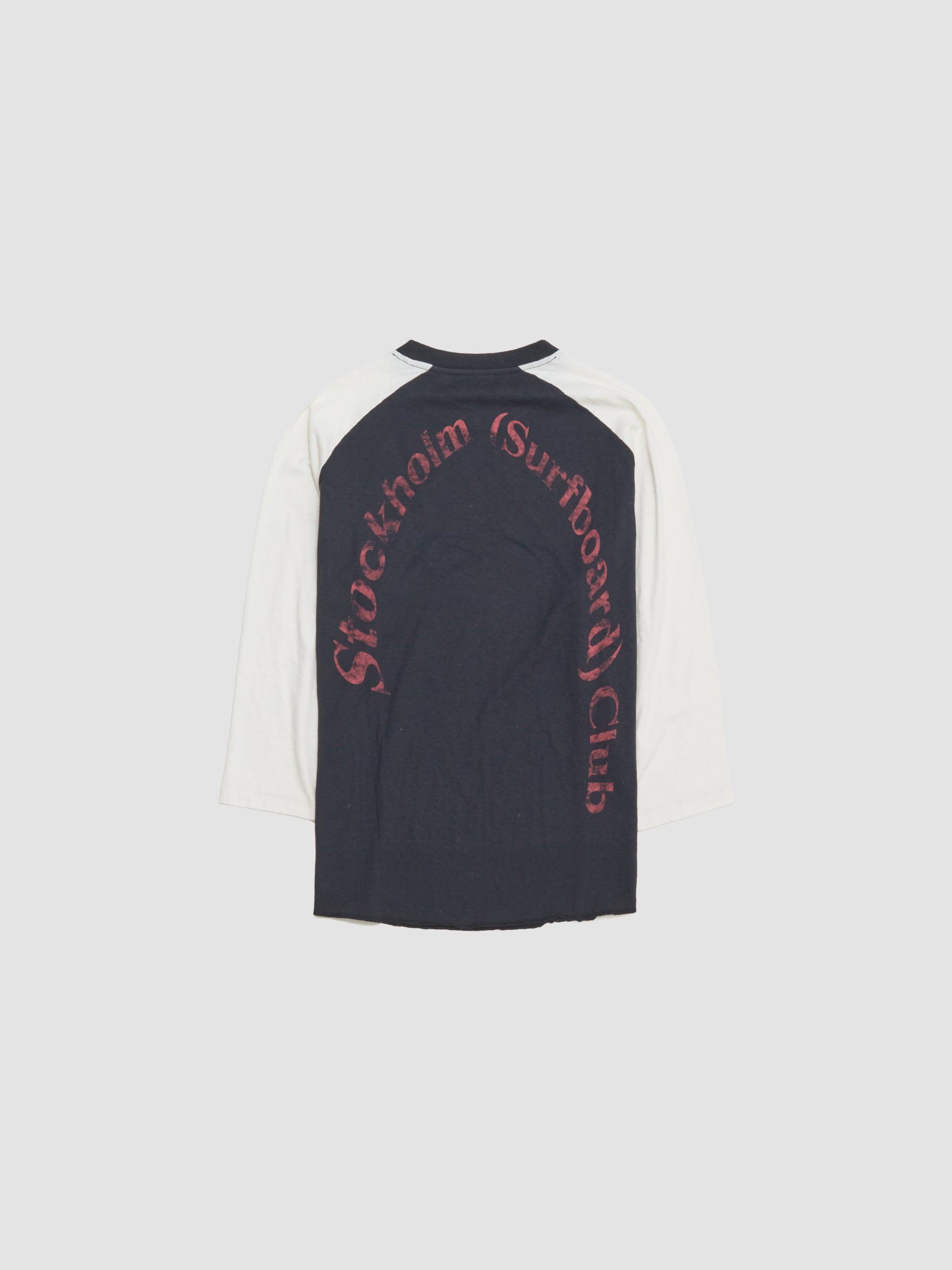 Stockholm Surfboard Club Vinnie Top in Black & White is made from 100% cotton following a relaxed silhouette with ¾ raglan sleeves.