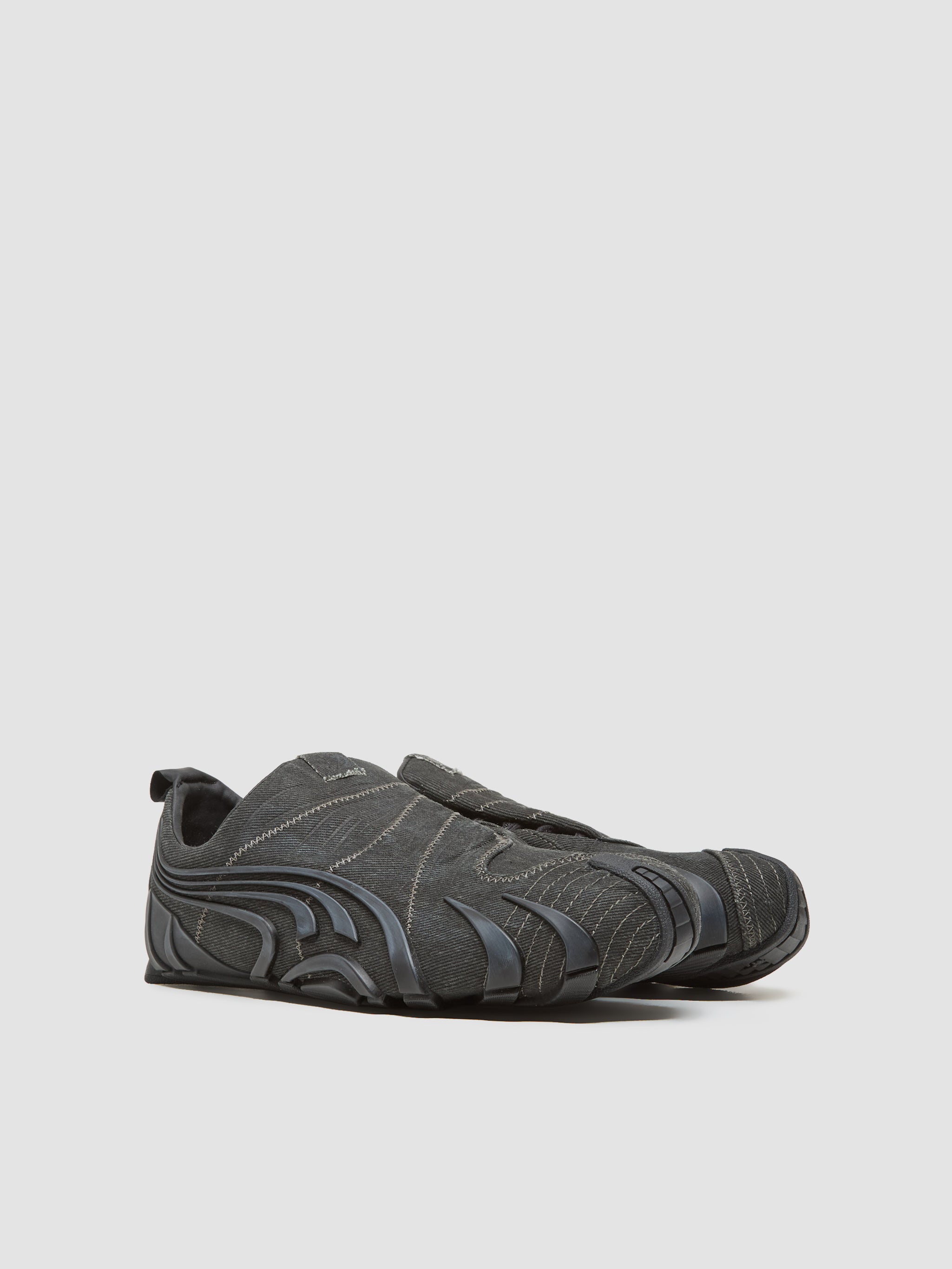 Inspired by the Puma Talon model from 2004, this reinterpreted version features an asymmetrical silhouette with a distinct lacing system along the side. Overlock stitching extends across the flap, giving the upper a unique linear structure. The sculpted sole wraps around the shoe, evoking the dynamic movement of an eagle crawl. Made from canvas with a subtle used effect on the flap, the design combines functional detailing with a contemporary aesthetic.