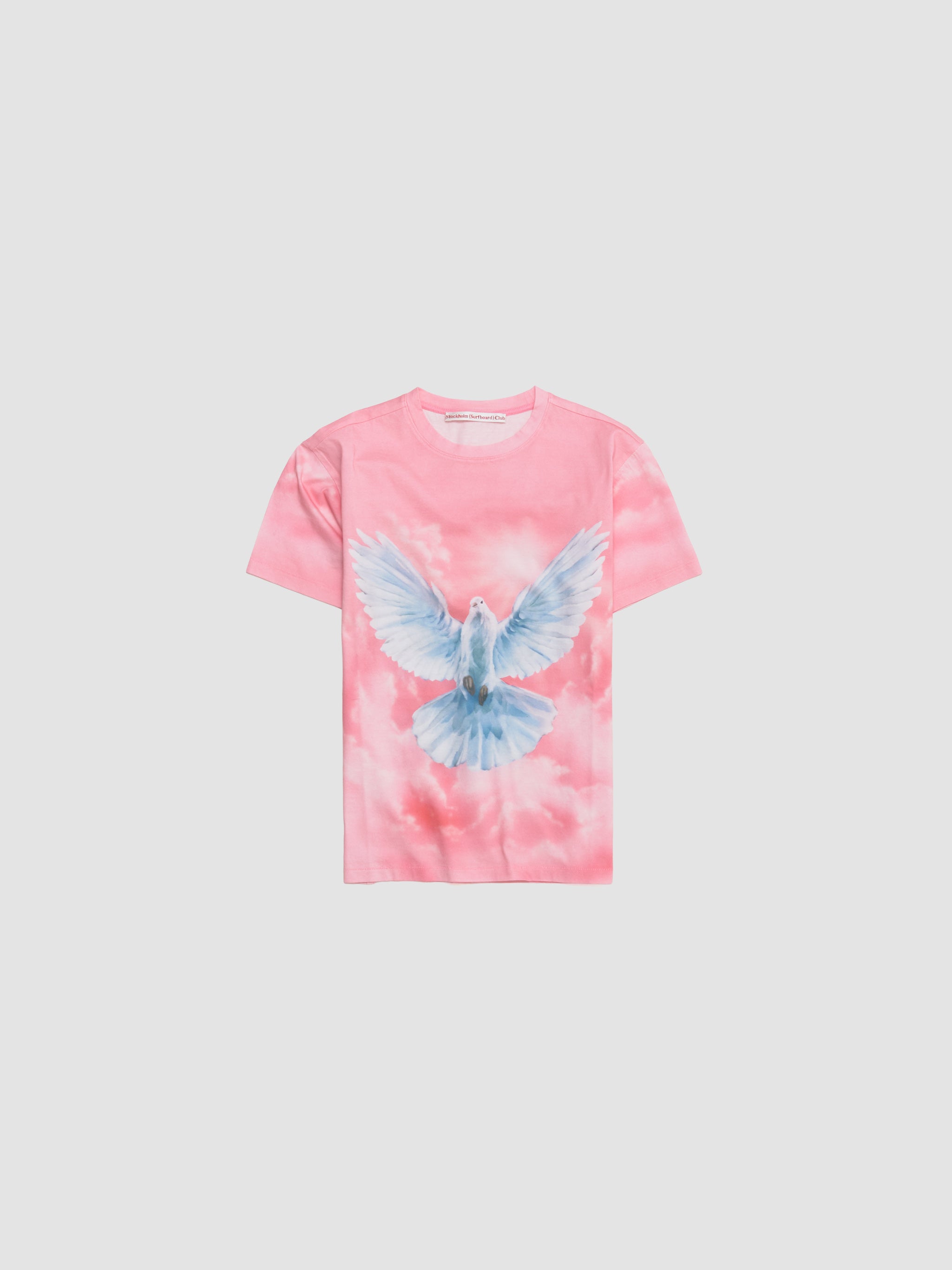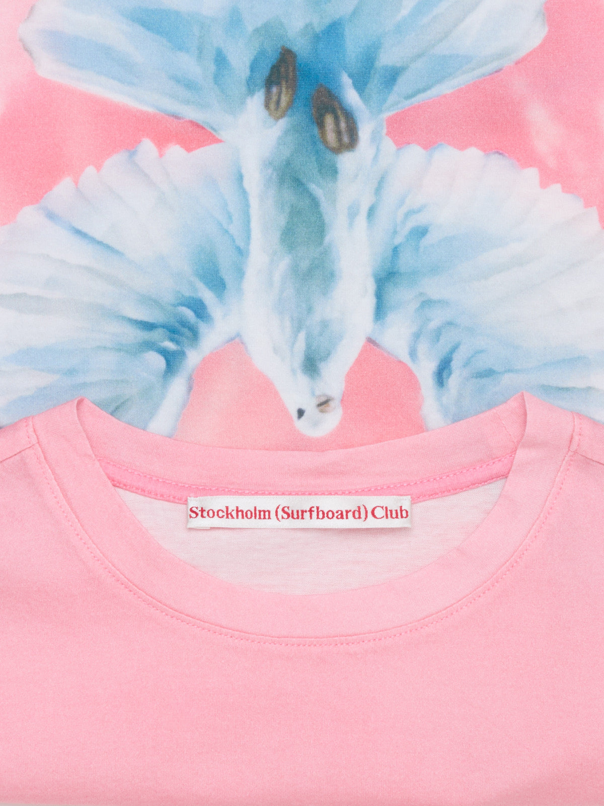 Stockholm Surfboard Club Franz Dove Print T-Shirt in Pink is made from 100% cotton following a fitted silhouette with an all-over faded airbrush print.