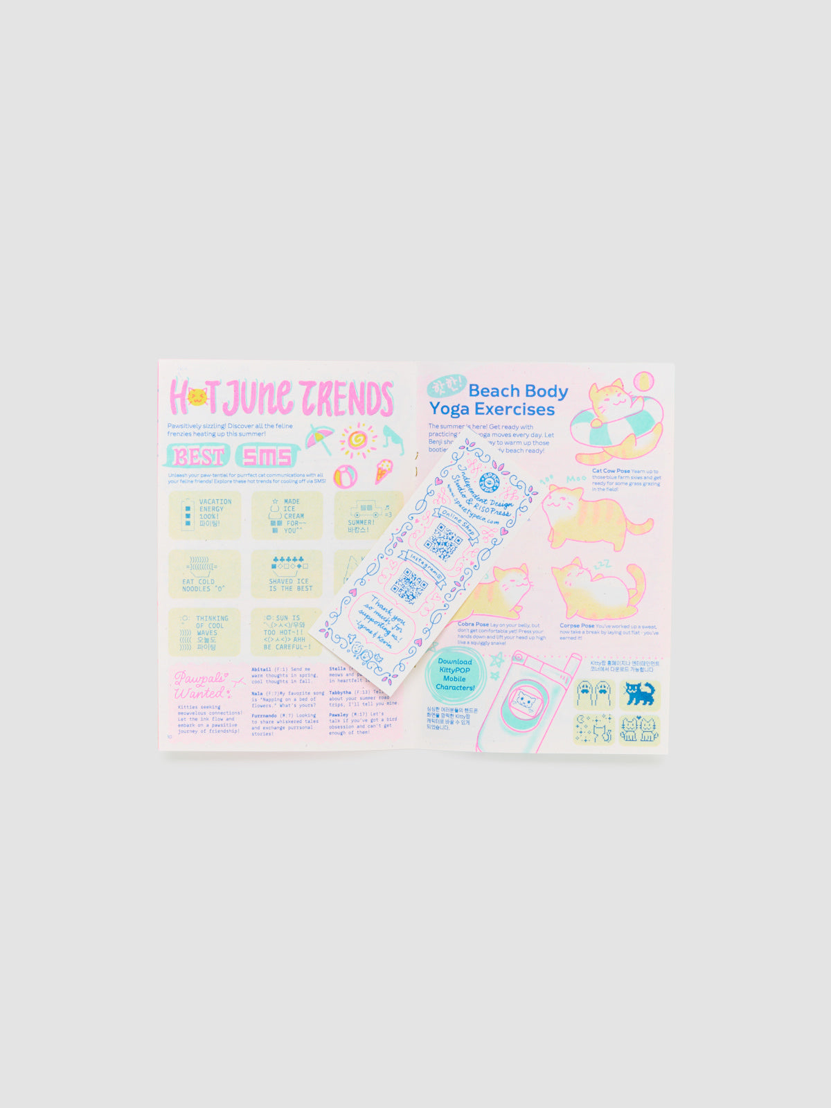Meow, it’s finally here! Get ready to dive into this super cute kitty-themed zine that’s packed with all the things you never knew you needed. Inspired by mid-2000s Korean teen mags, this issue has it all—exclusive features on Pawssanova (the hottest boy band in town), Catthew Purry (the prince of Pawlywood), and even feline tips for your astrology sign. Plus, take our fun quiz to find out what kind of kitty you are! Showcasing original typefaces from Space Type and artwork by guest illustrators Chris Kwon, Sooyoung Jeon, and Cecilia Zhang, this zine is a must-have for anyone who loves a little bit of feline flair.