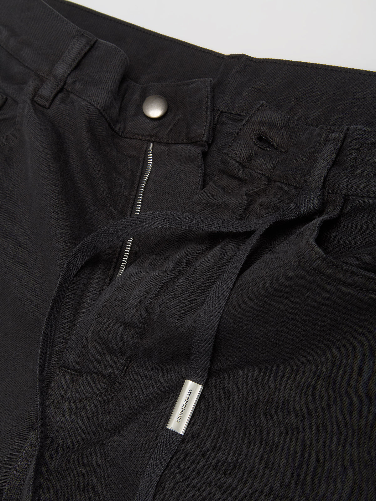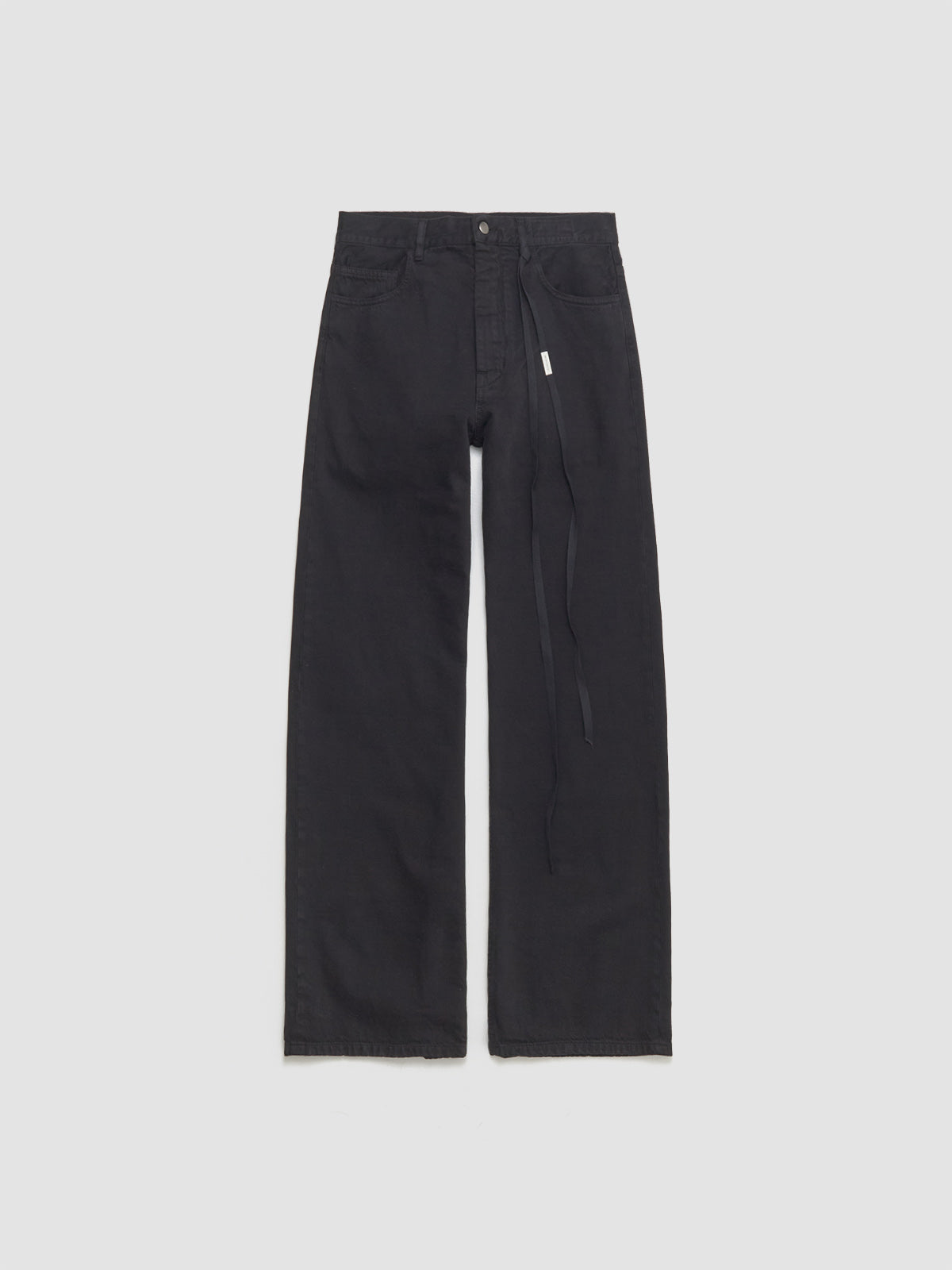 Ann Demeulemeester Modest 5-Pockets Relaxed Flared Trousers in Black are made from 100% cotton following a relaxed silhouette with a subtle waist drawstring.