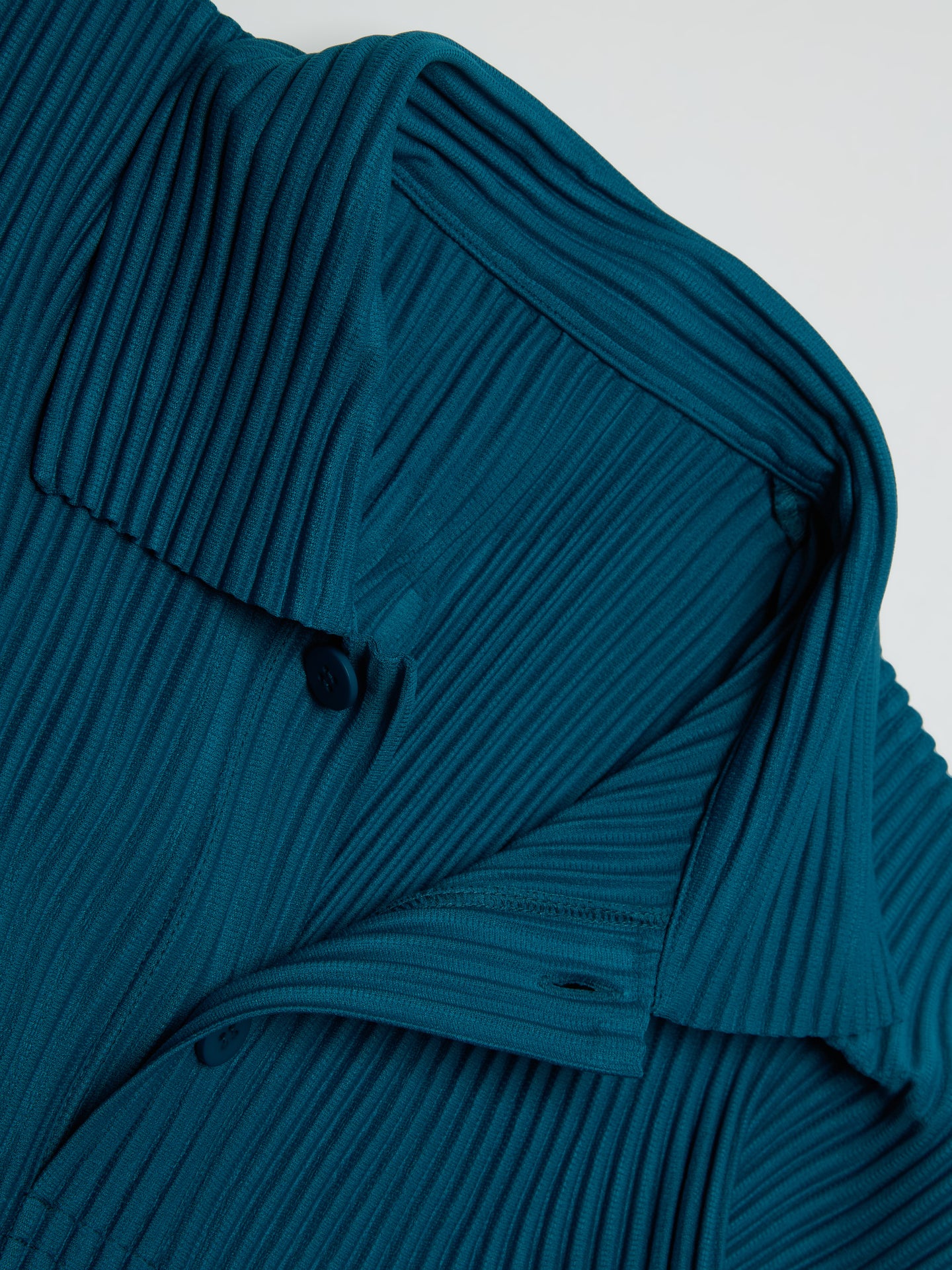 HOMME PLISSÉ Issey Miyake Pleated Short Sleeved Shirt in Teal Green is made from 100% polyester following a relaxed silhouette with a polo shirt collar.
