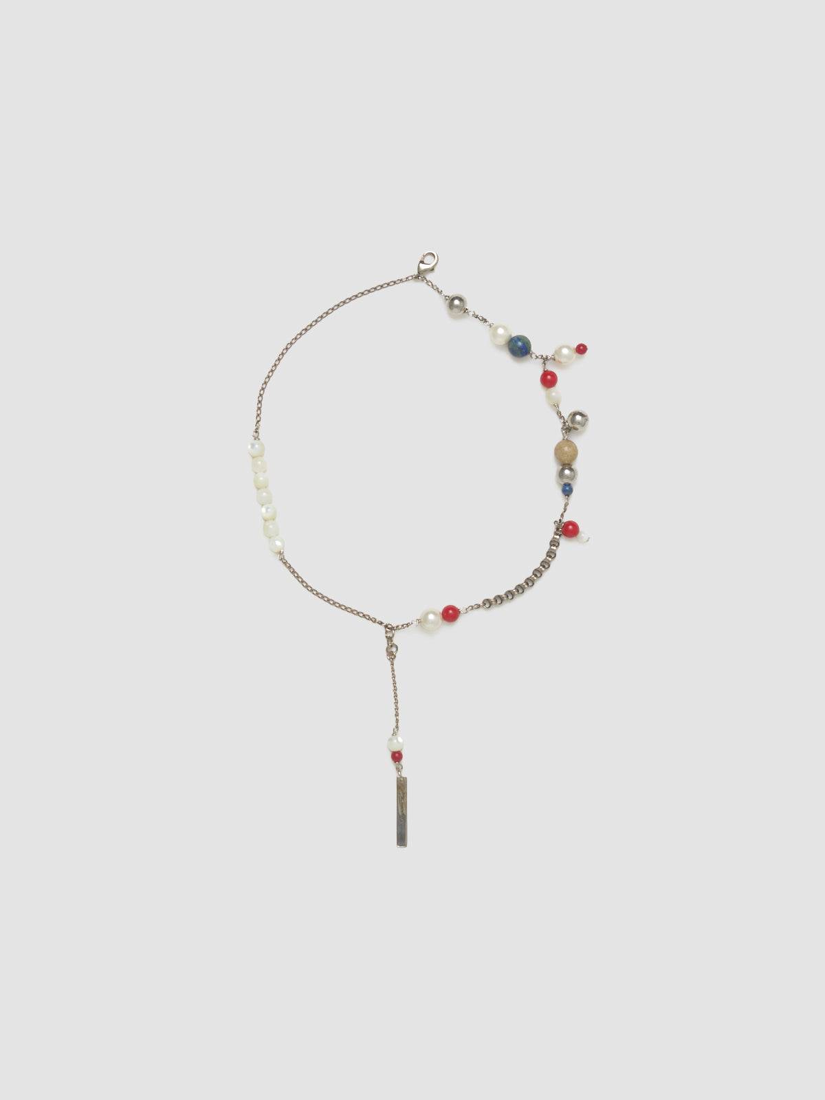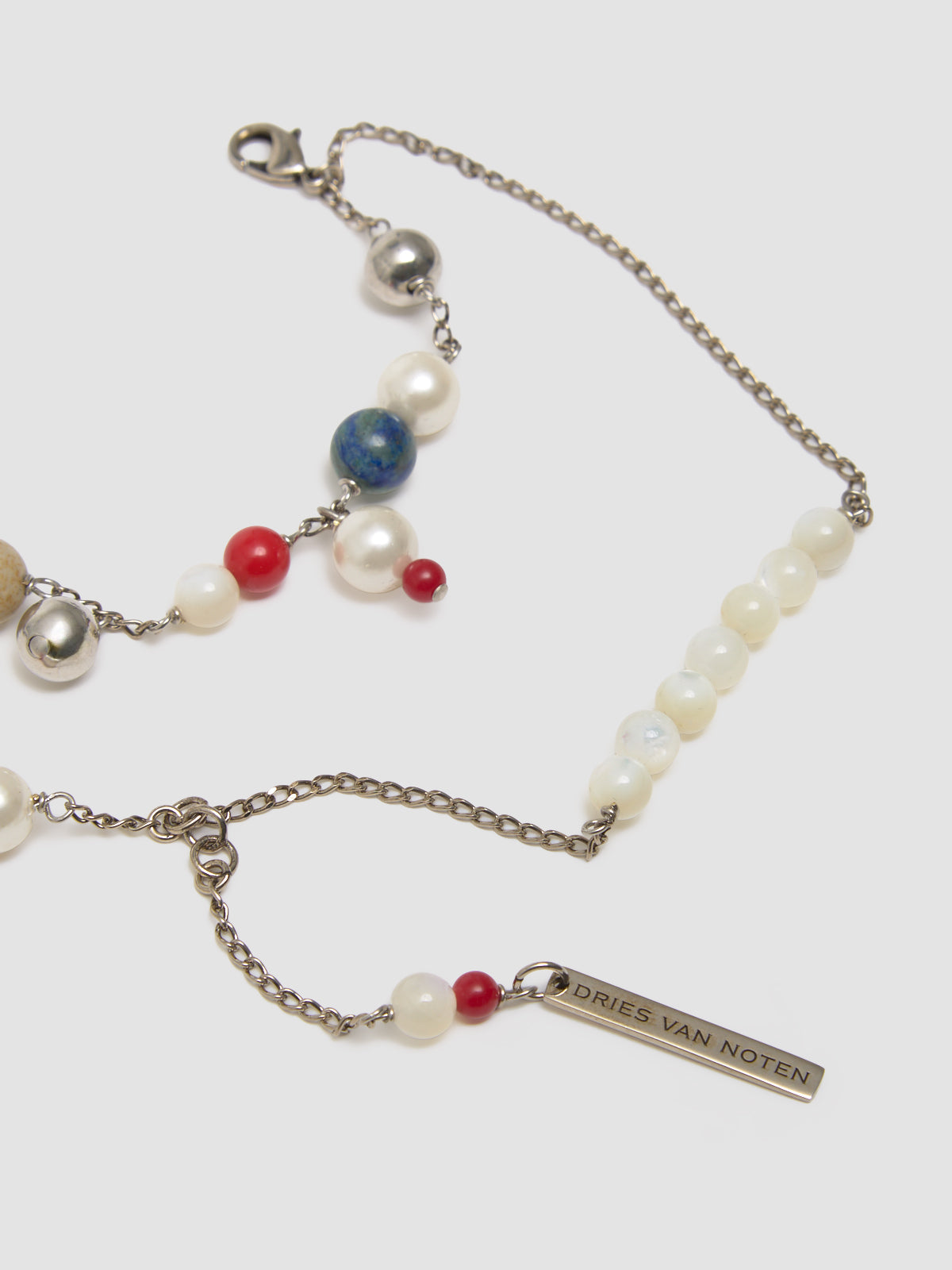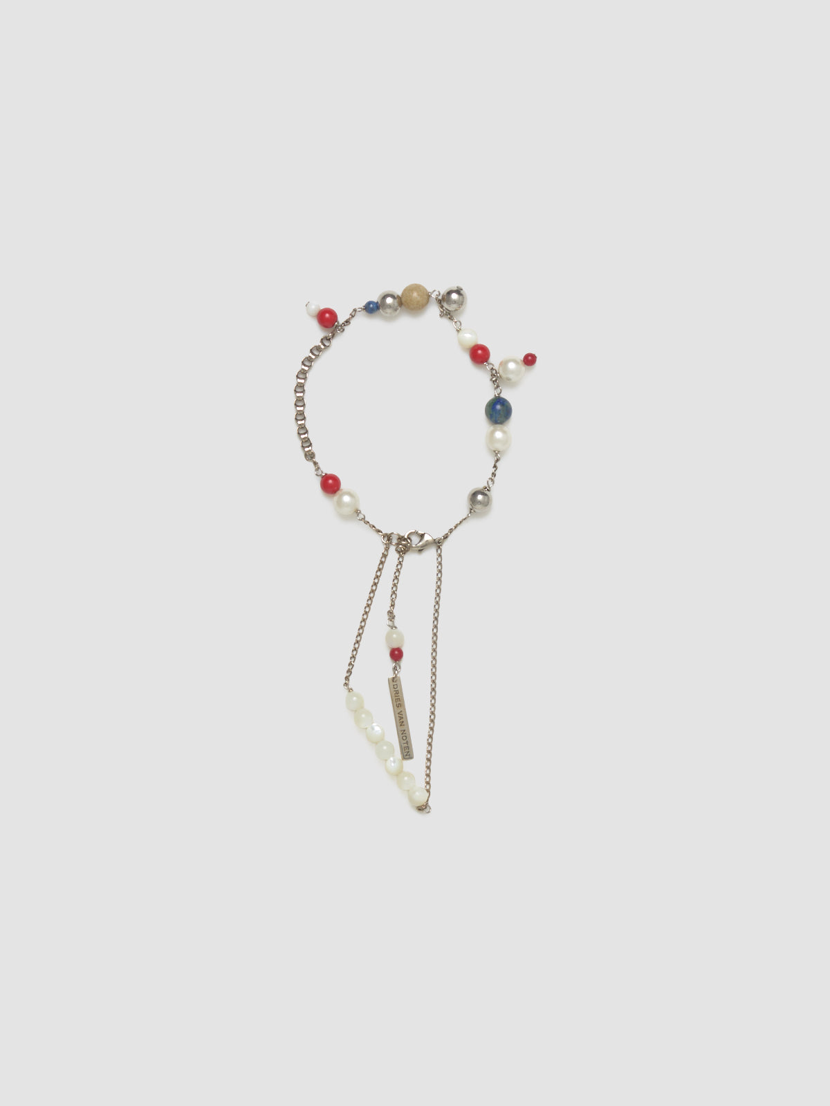Dries Van Noten Double Chain Charm Bracelet in Multicolor is made with brass featuring freshwater pearls and semi-precious stones charms.