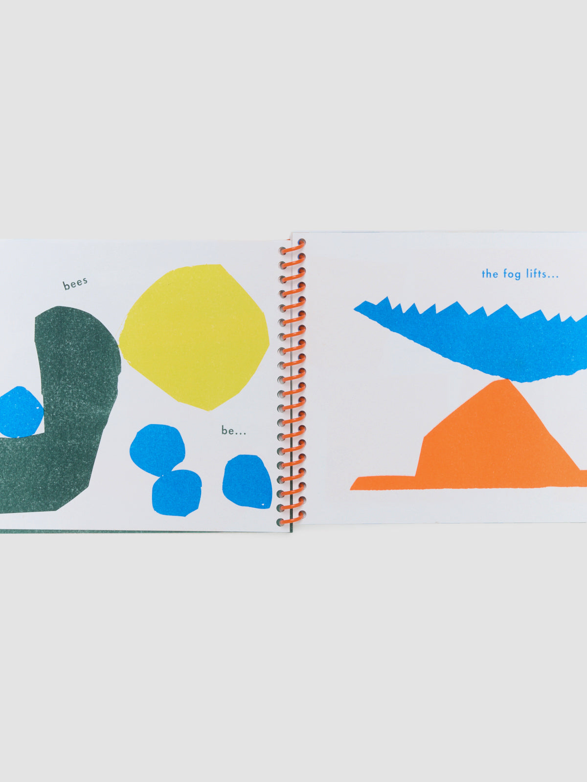 This spiral-bound paperback book by London-based artist Nicolas Burrows is for children and anyone young at heart. Its narrative sequences play with the concepts of sound and color through lively illustrations and easy language that combine to reinterpret our world. His imagining of the natural environment lends a fresh perspective on how we see, hear, touch and experience the everyday. It’s a warm, charmingly naive encouragement of curiosity, observation and appreciation for the simple things in life.