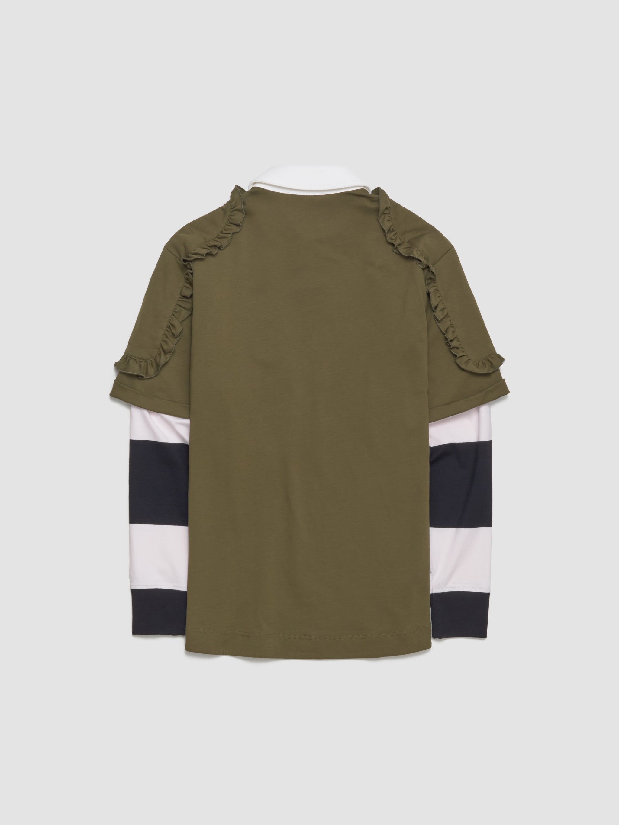 Layered Ruffle Rugby Shirt in Khaki & Pearl