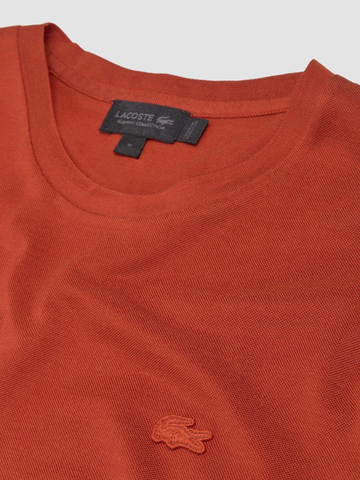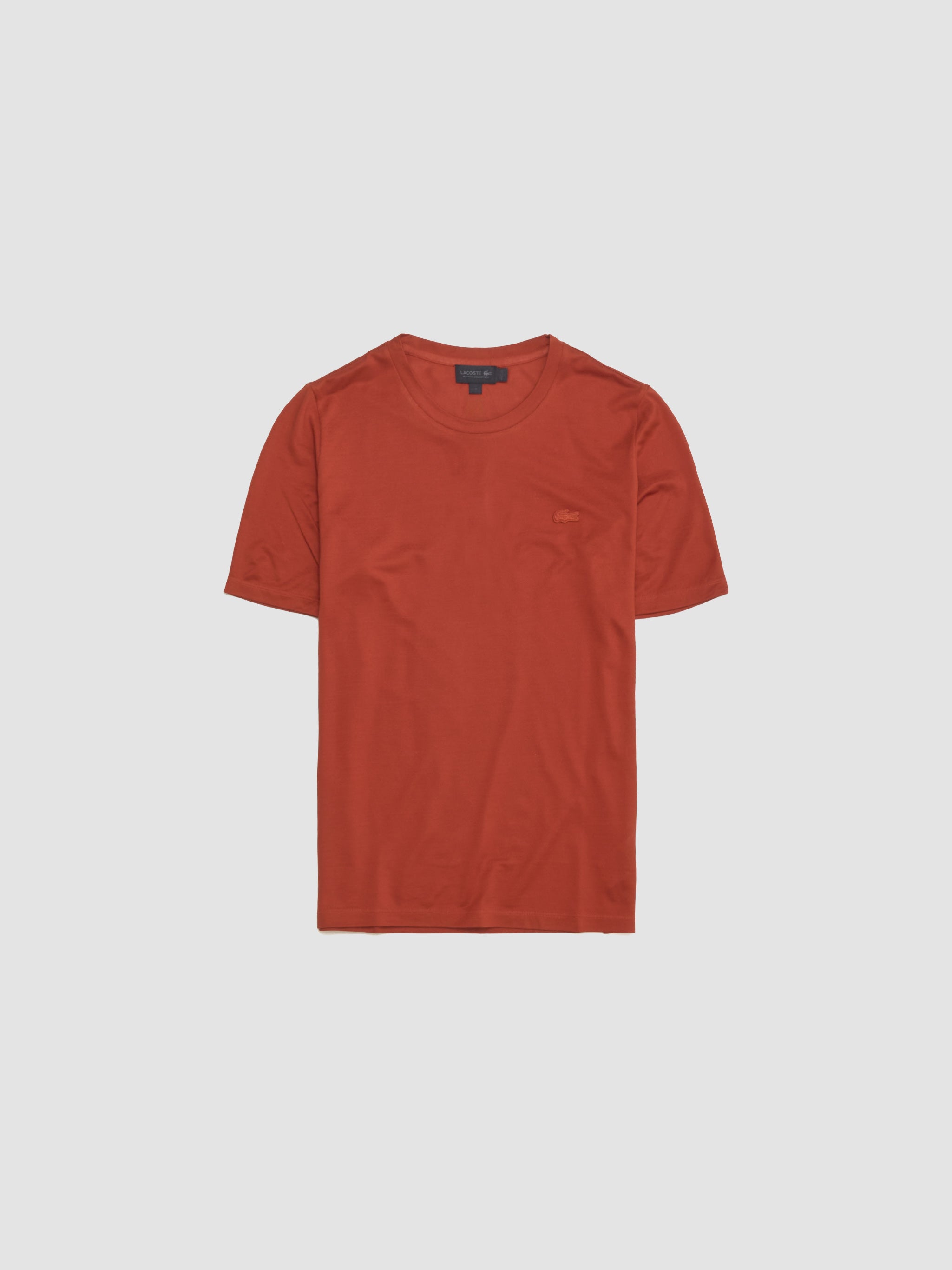Lacoste Neptune Crewneck T-Shirt in Orangine is made from 100% silk following a fitted silhouette with a tonal crocodile patch detail at the chest.