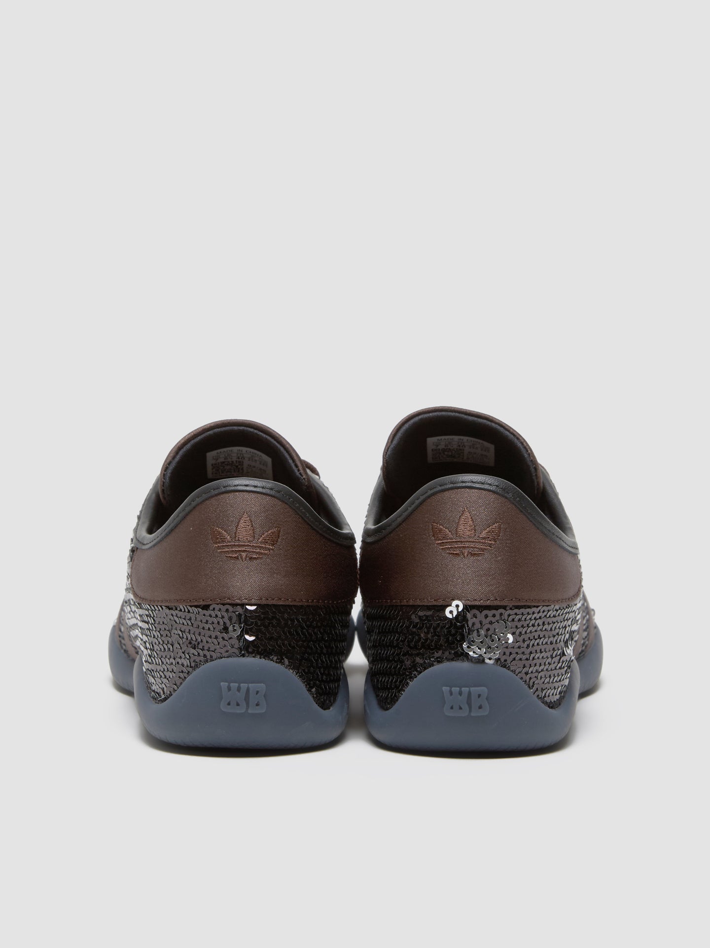 Adidas x Wales Bonner Karintha Sequin Sneaker in Dark Brown is made from synthetic upper and rubber sole following low-cut silhouette with logo details.