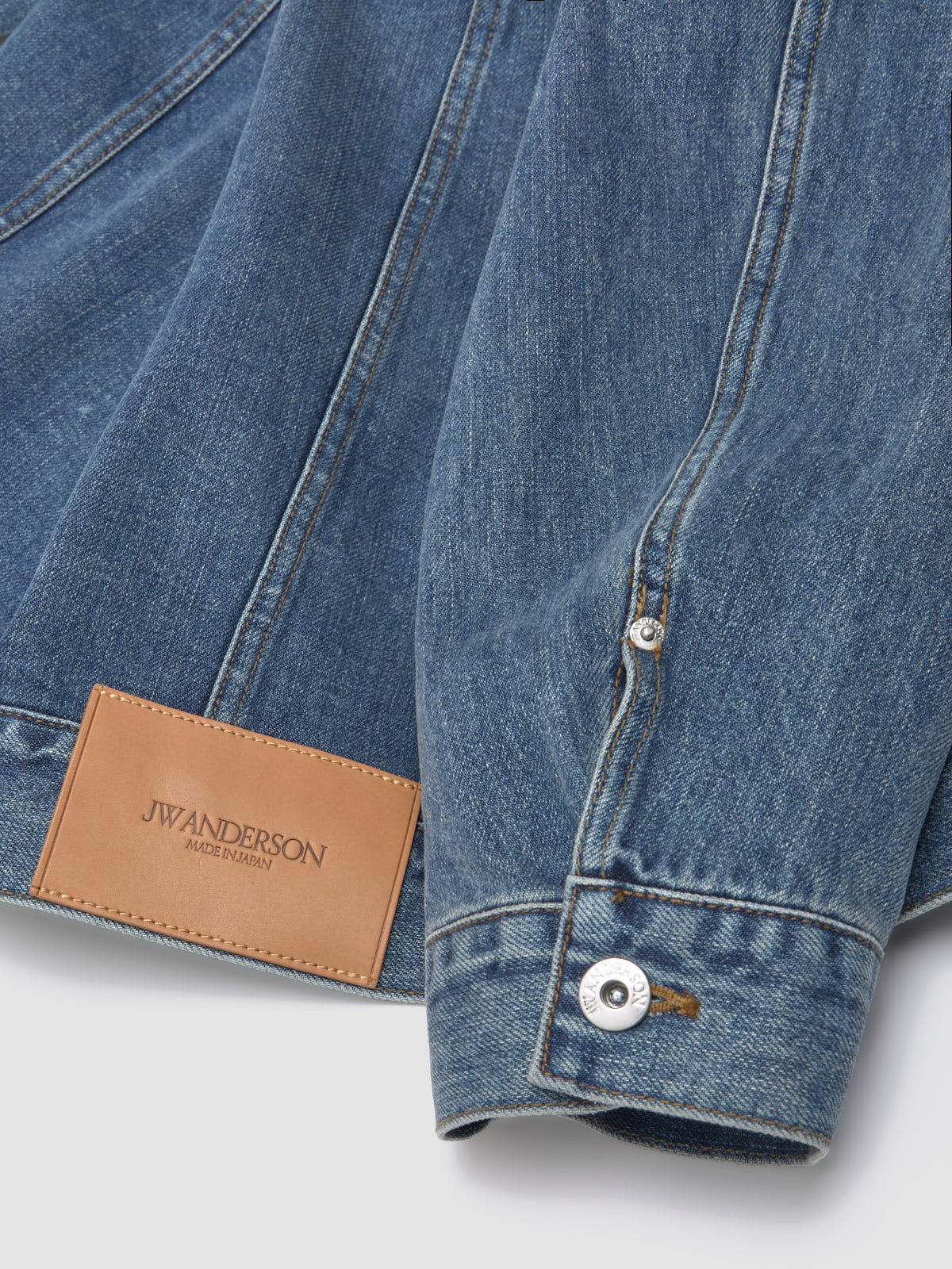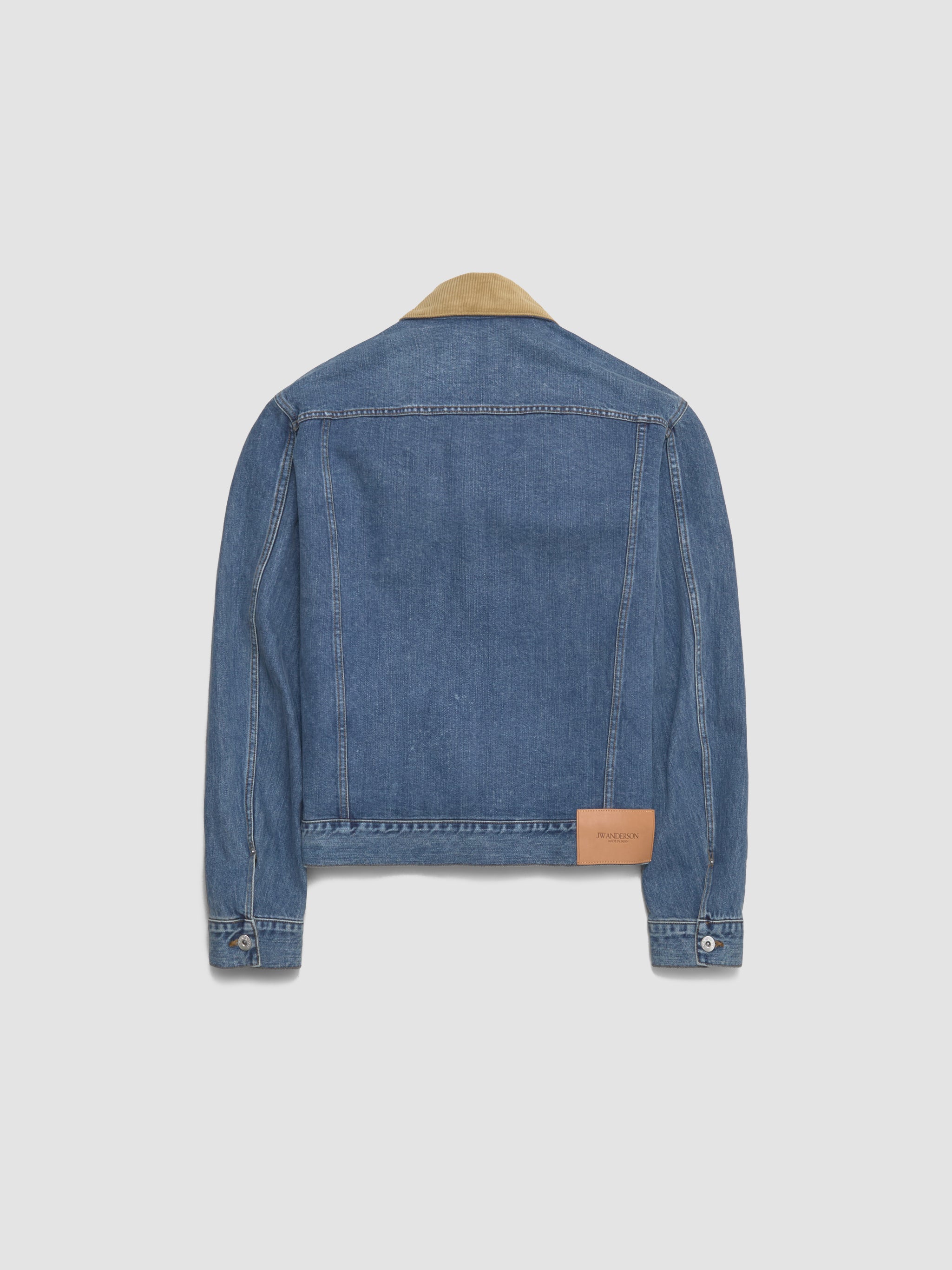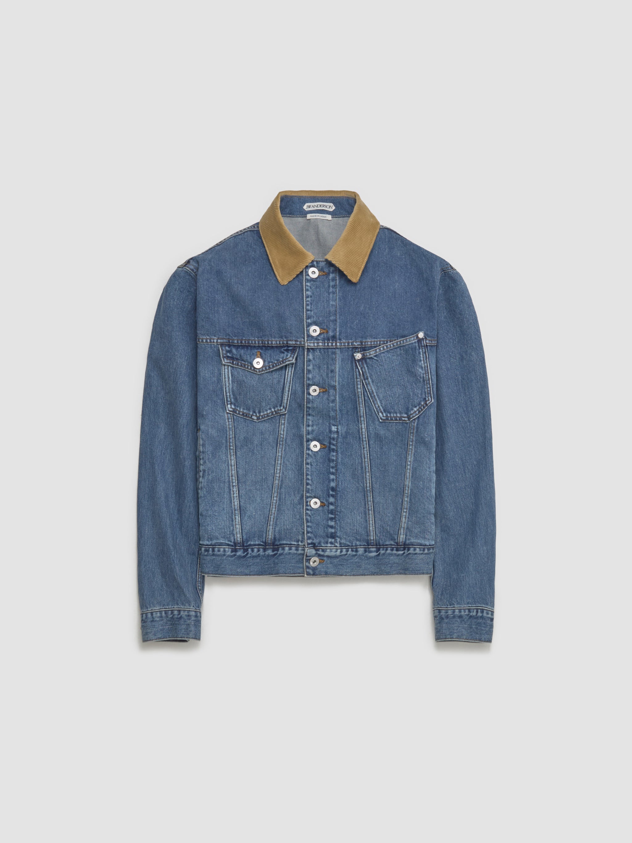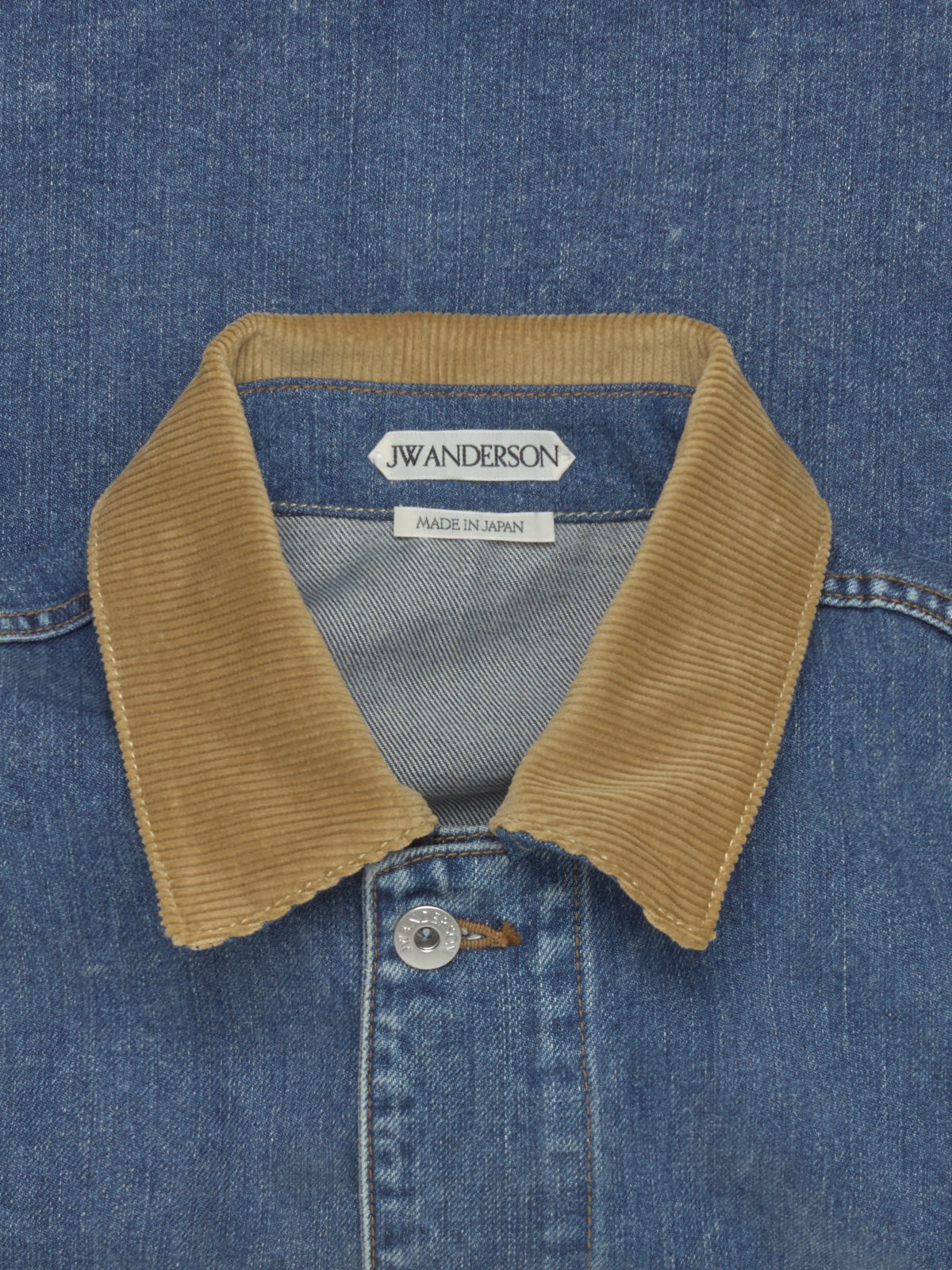 JW Anderson Corduroy Collar Jacket in Mid Blue is made from 100% cotton following a boxy silhouette with a contrasting corduroy collar.