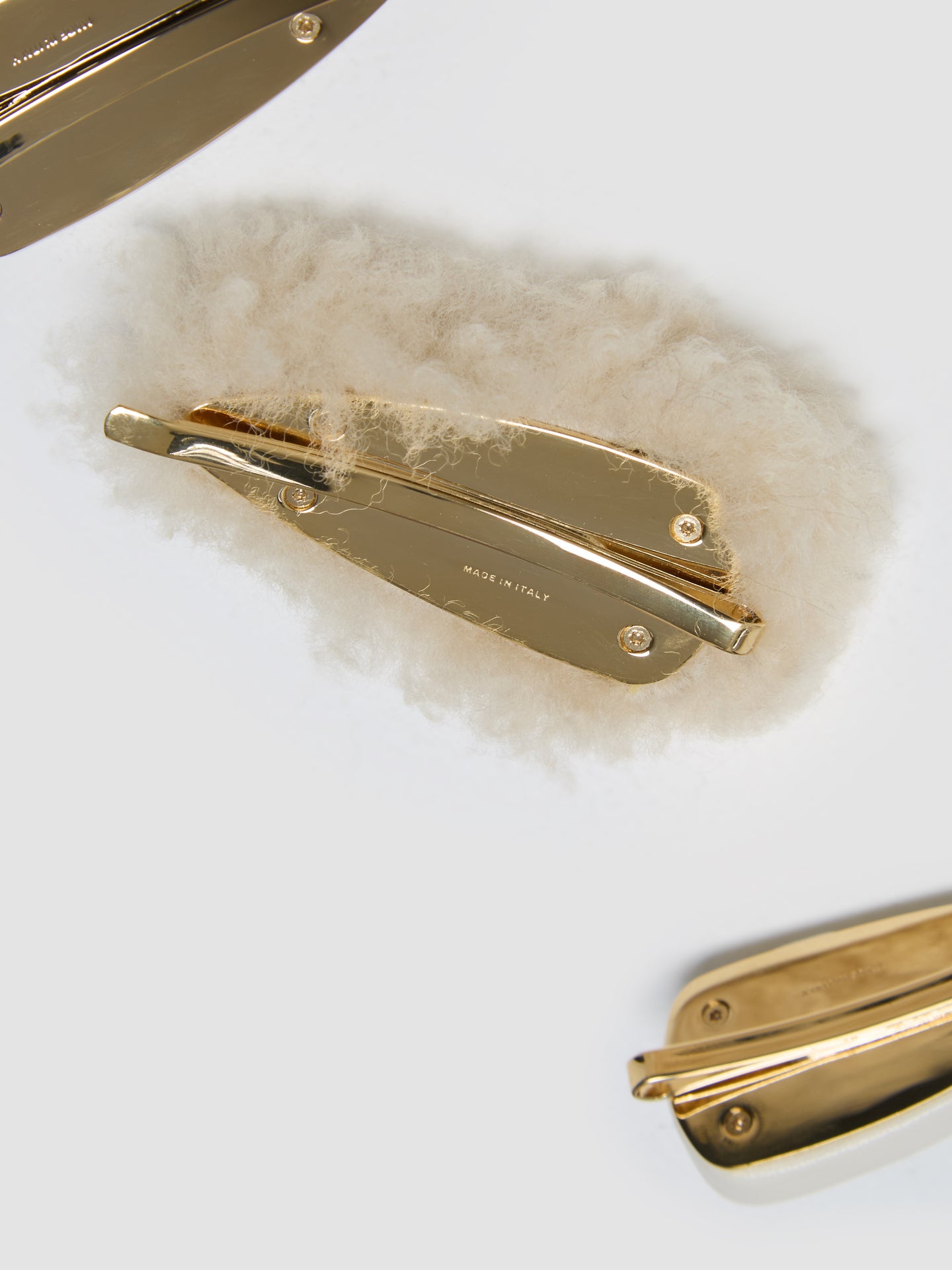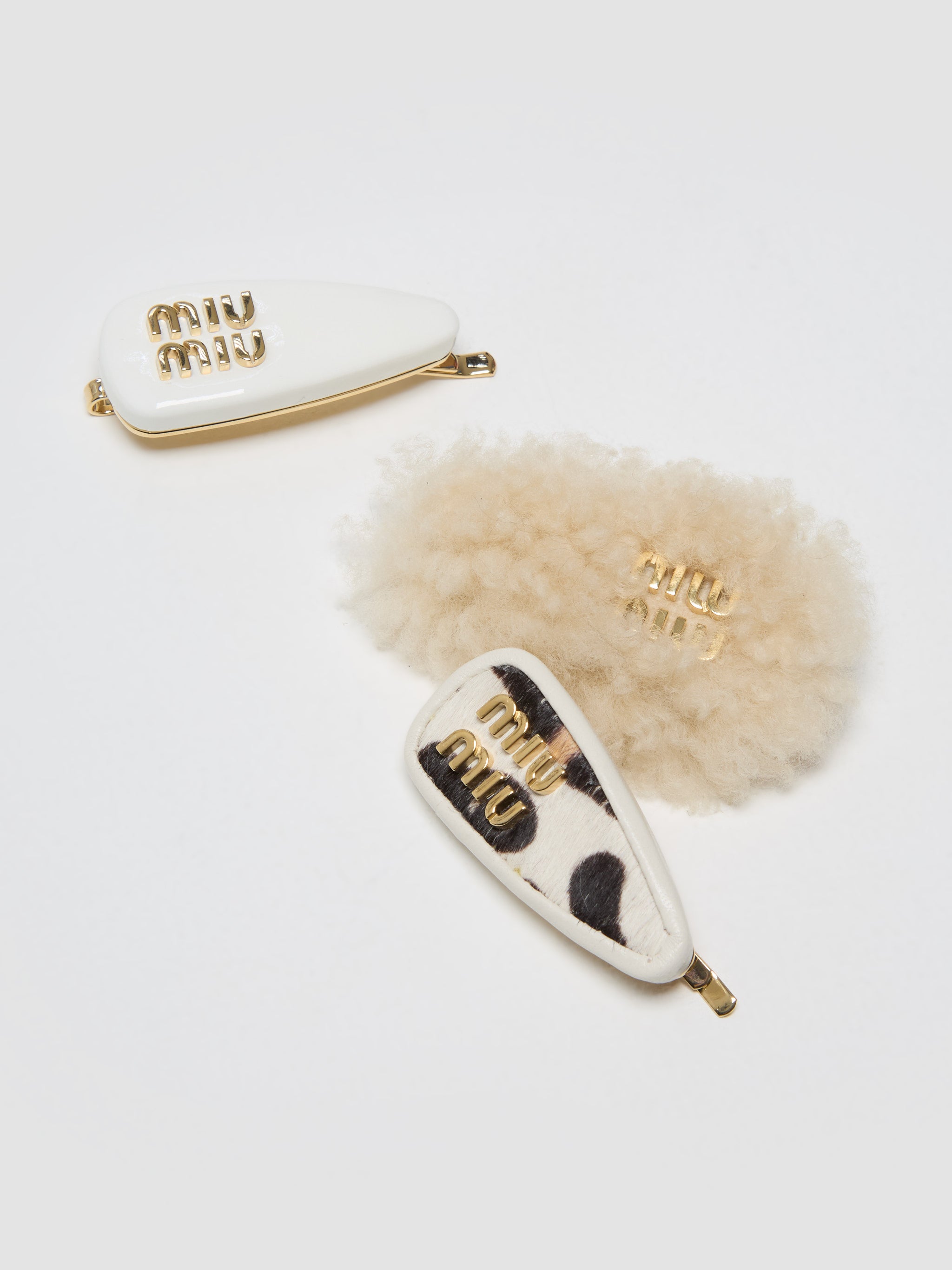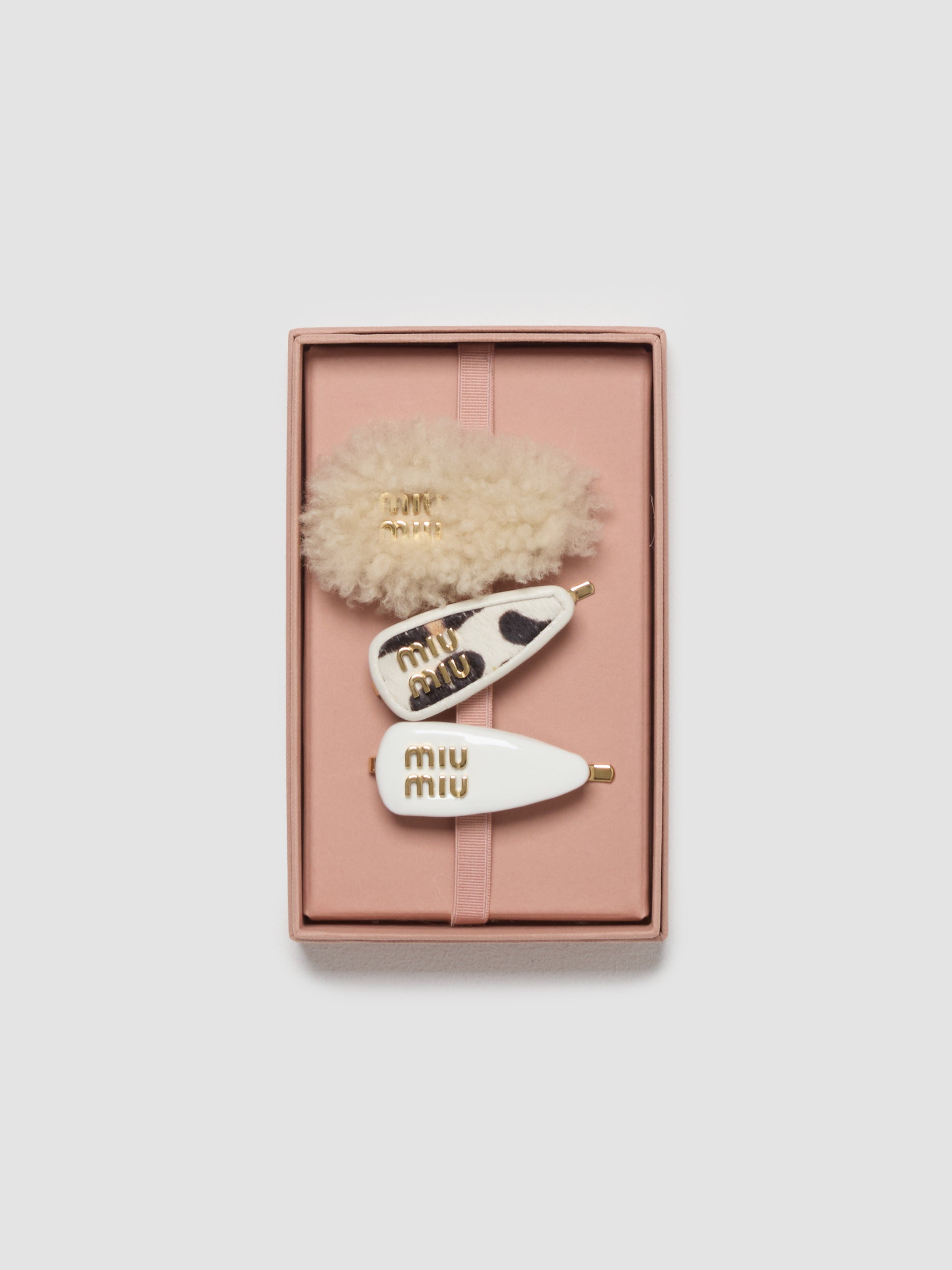 Miu Miu Hair Clip Set in Bianco is made from leather with gold-tone brass hardware.