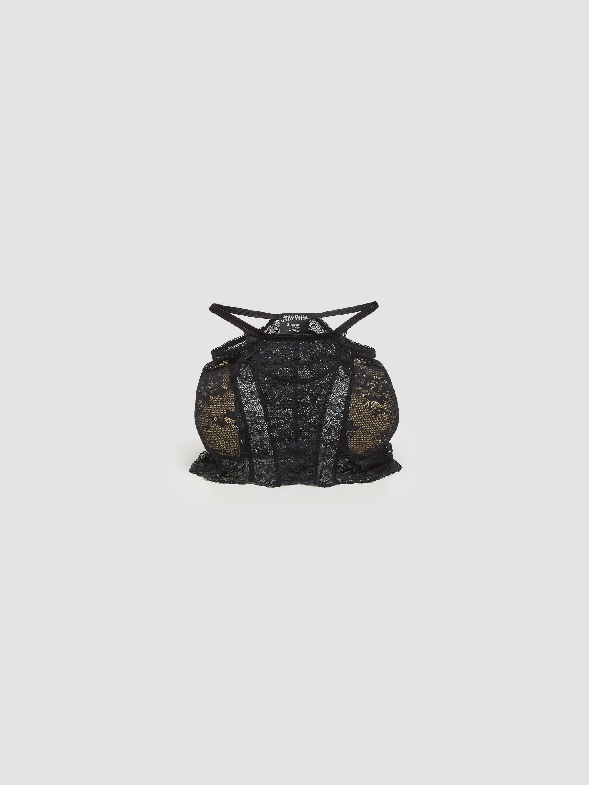 Jean Paul Gaultier x Shayne Oliver Lace Skirt in Black is made from a polyamide blend following a mini silhouette with padded hips.