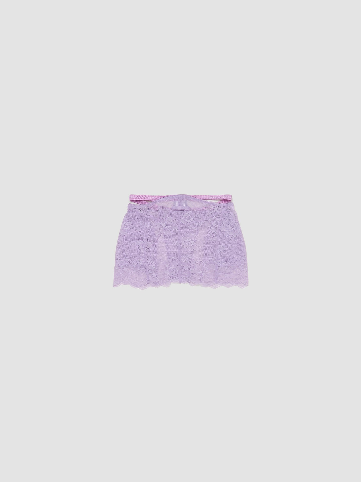 Jean Paul Gaultier x Shayne Oliver Lace Skirt in Lilac is made from a polyamide blend following a mini silhouette with padded hips.