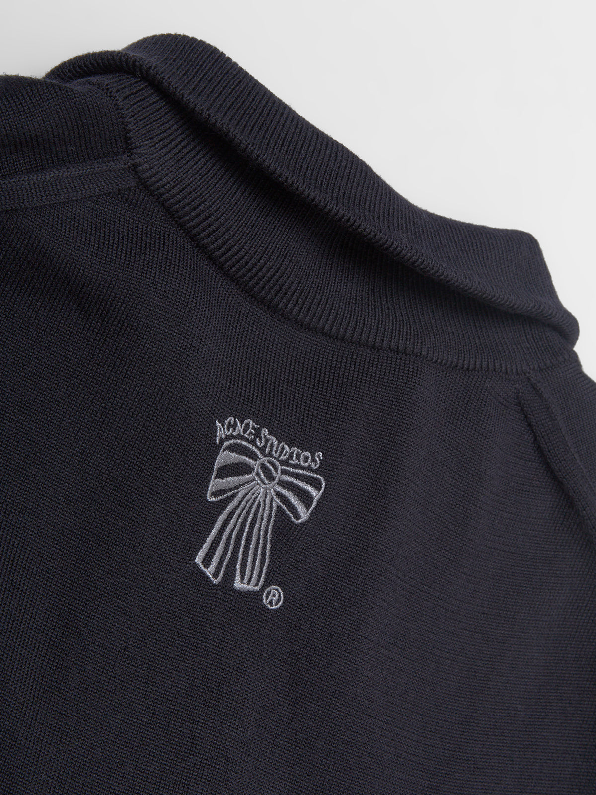 Acne Studios Zip-Up Cardigan in Black is made from 100% wool following a relaxed silhouette with a small bow embroidery at the back.