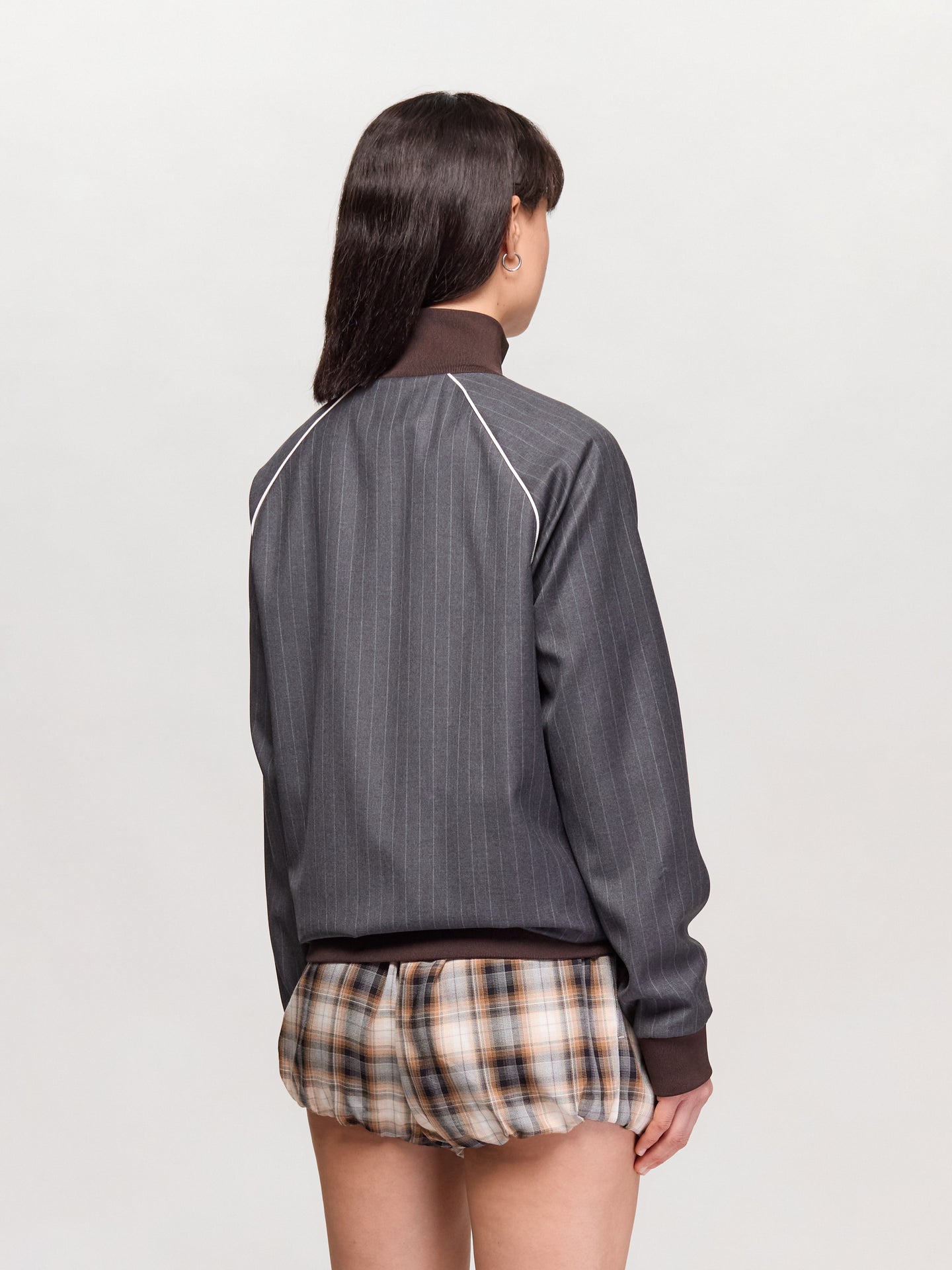 Blouson Jacket with Zip and Pinstripes in Slate Grey