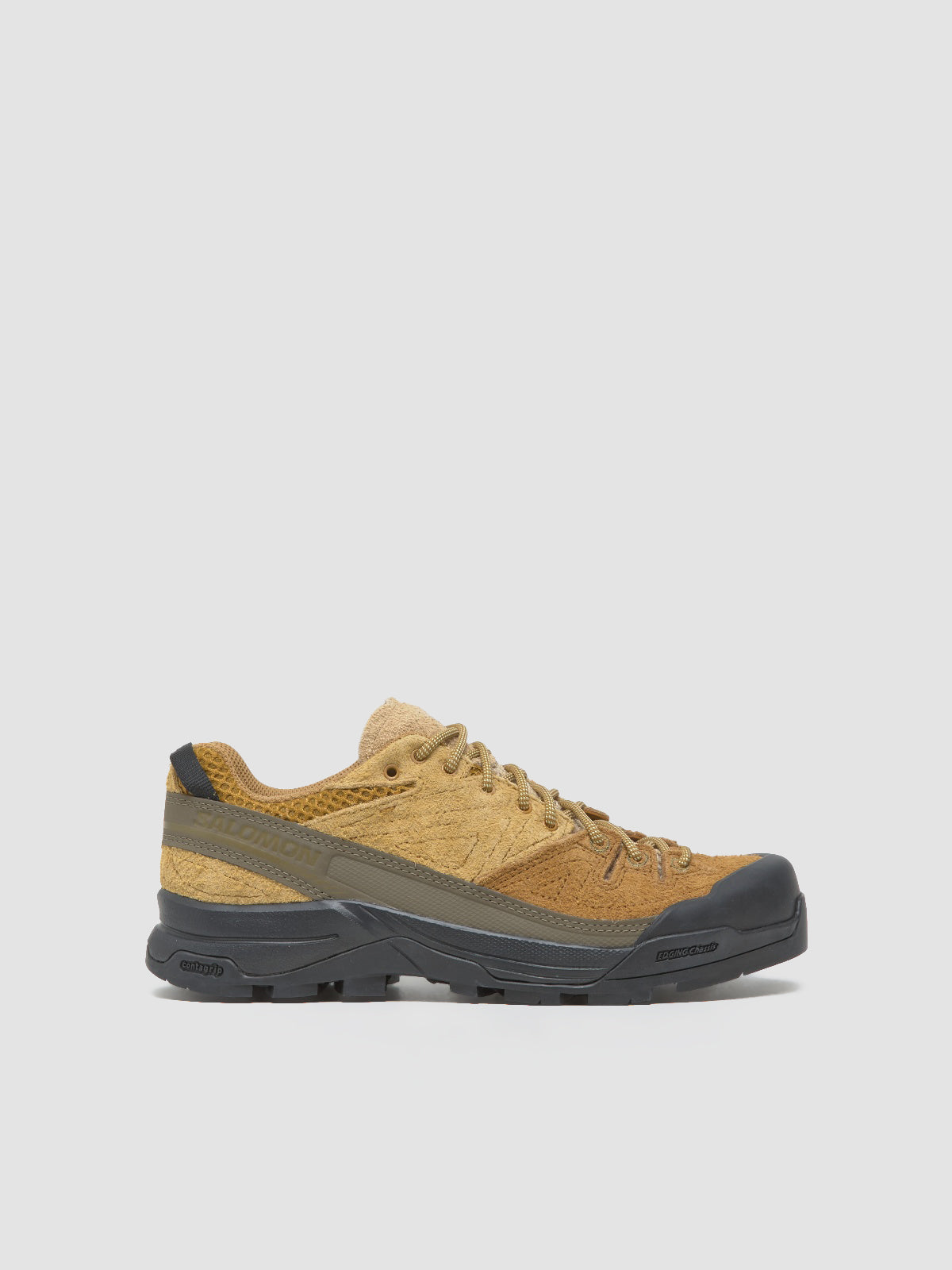 X-ALP SUEDE is rooted in Salomon’s mountaineering history and inspired by technical approach footwear. This hybrid design blends protective detailing with functional cues to alpinism through a premium lens of rich materials and subtle, impactful details.