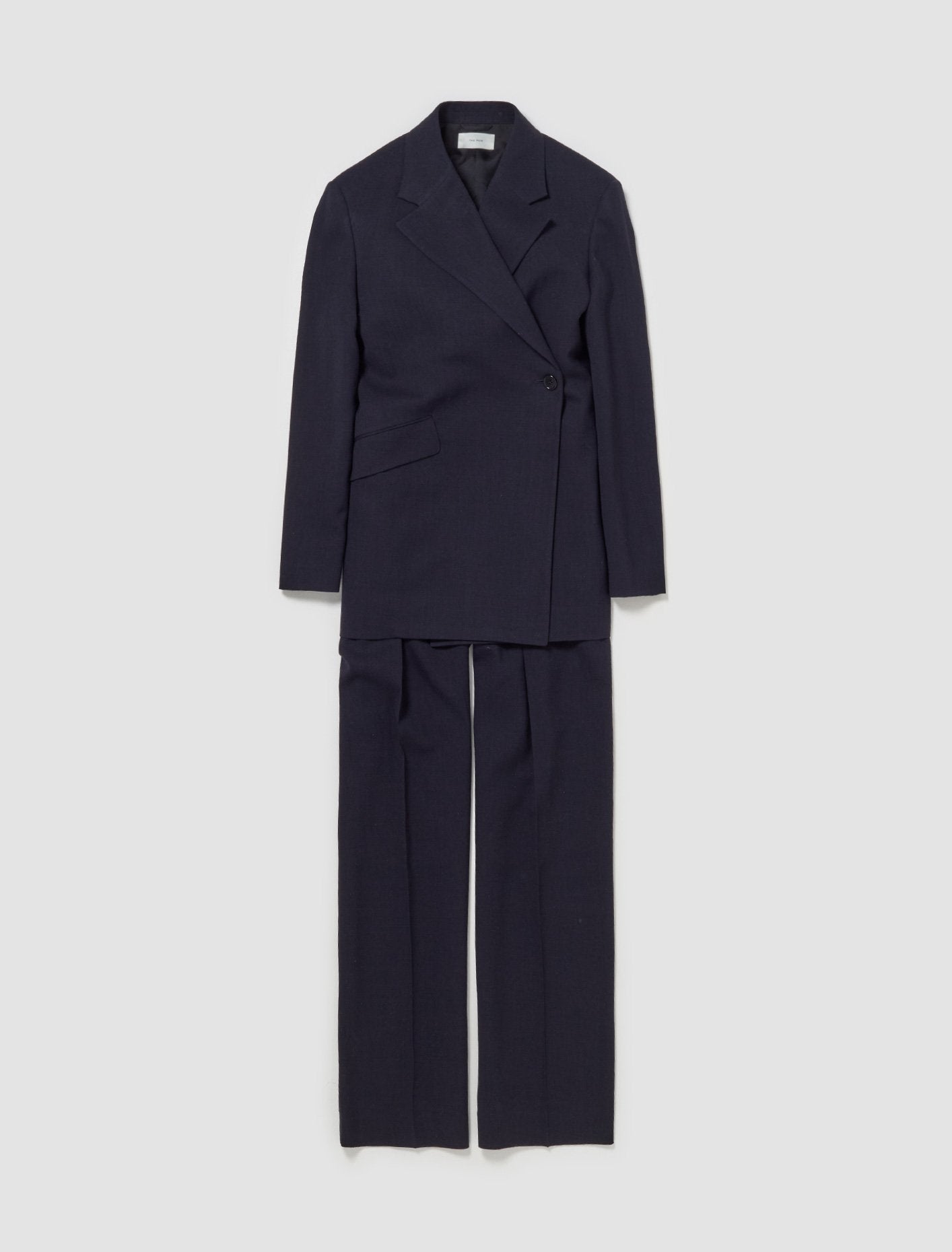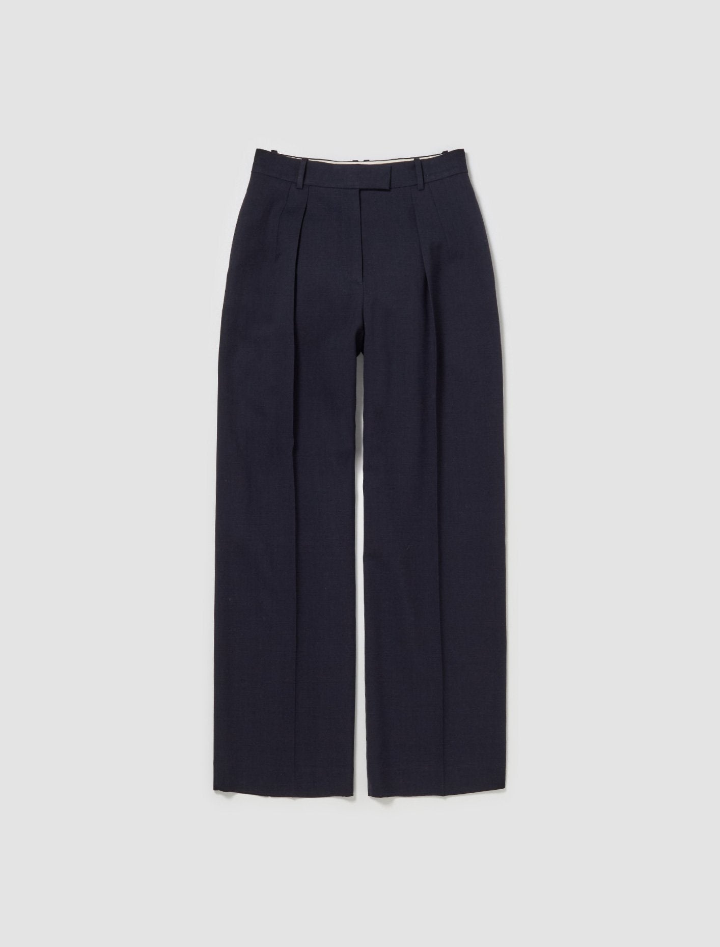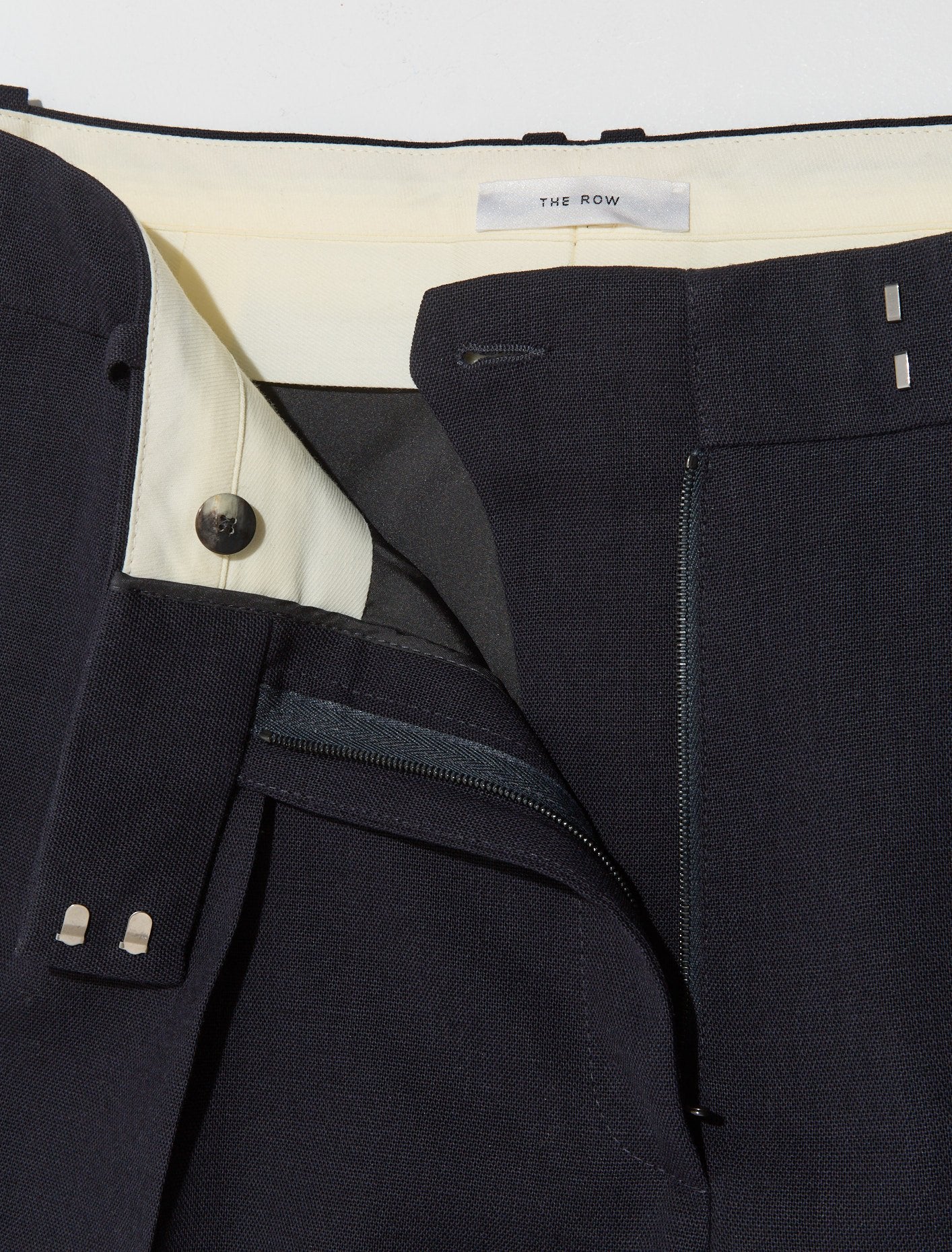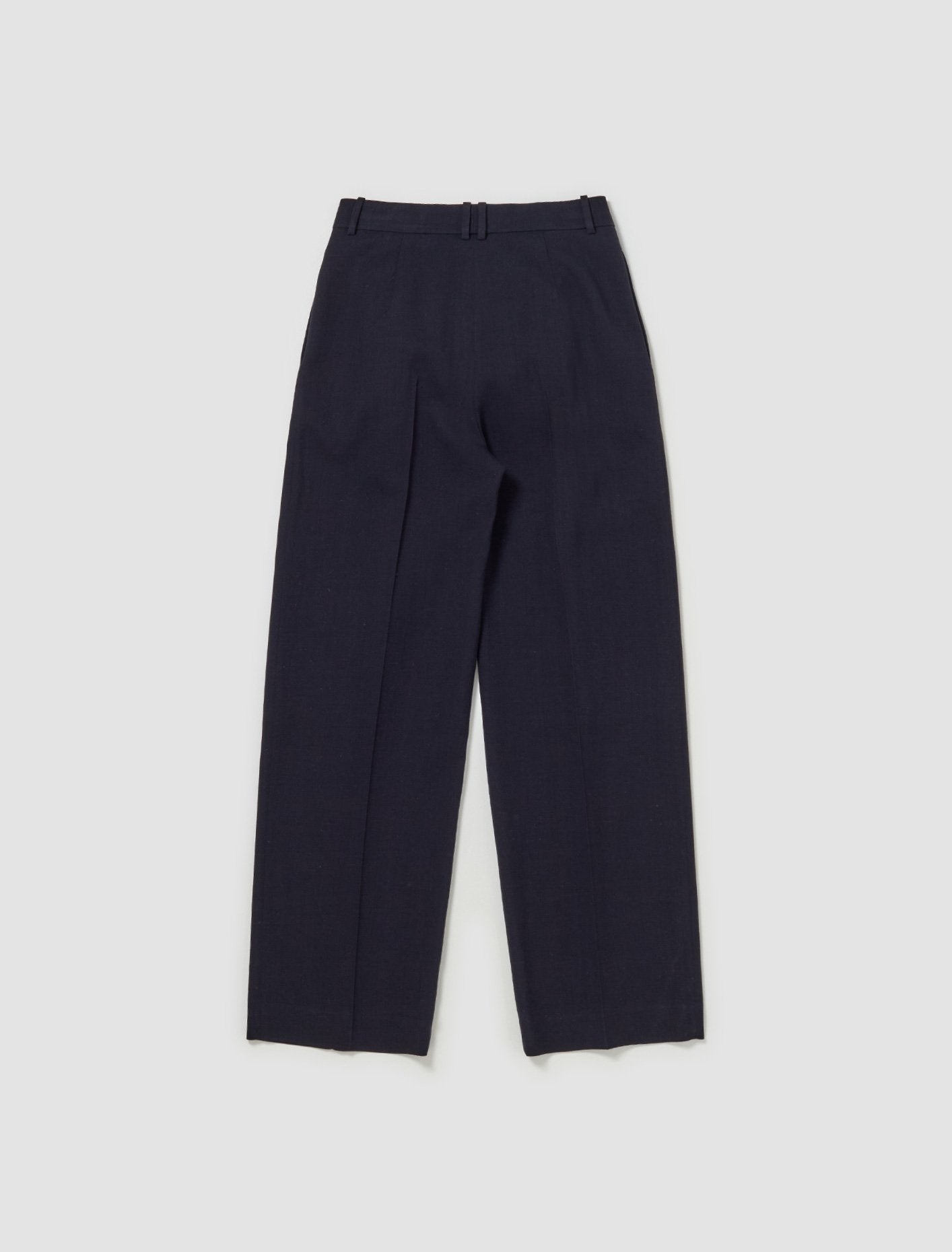 The Row Antone Pants in Dark Navy are made from 100% virgin wool following a straight, wide silhouette with pressed creases at the front.