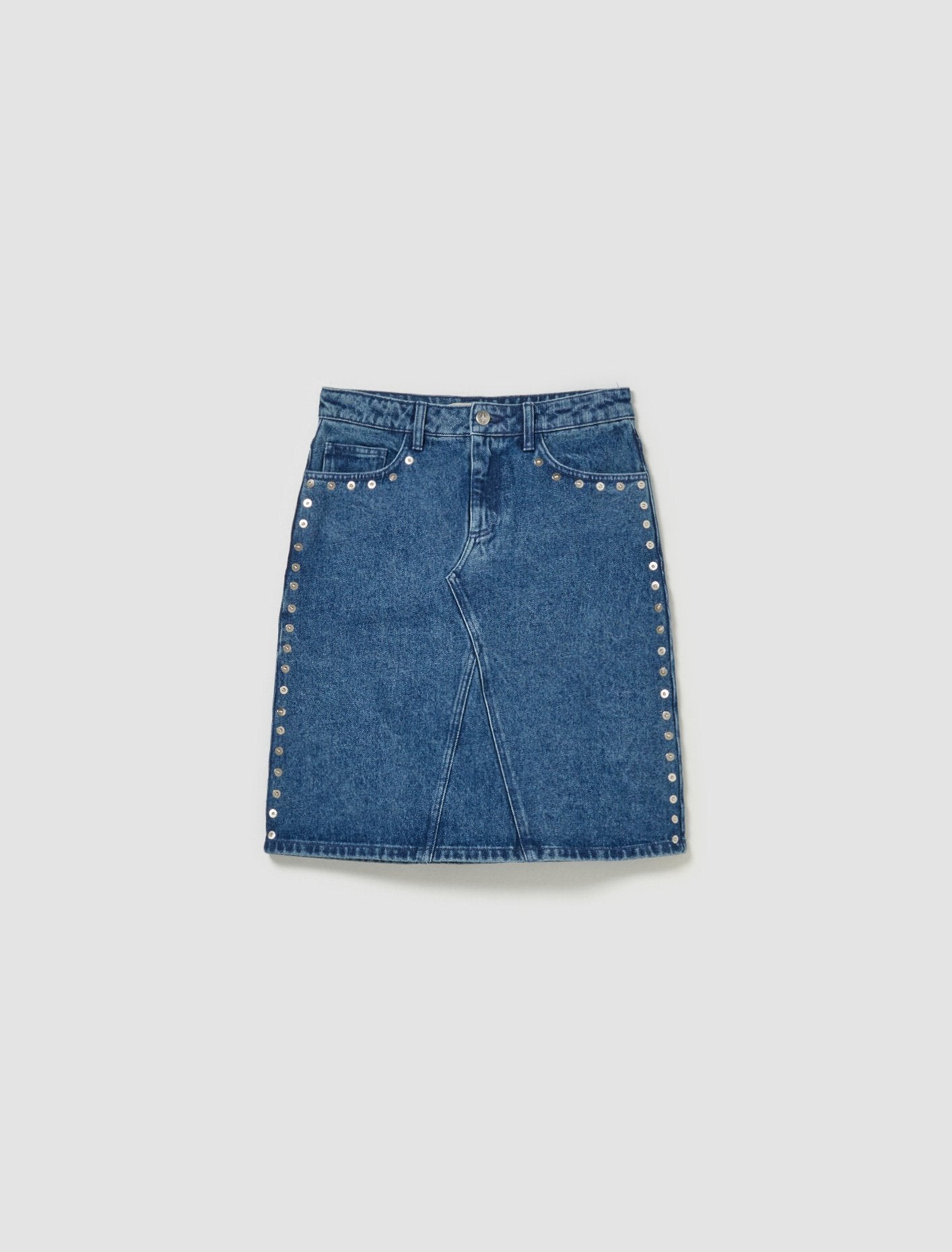 Paloma Wool Crowd Skirt in Denim is made from 100% cotton following a low–waisted silhouette with studded details.
