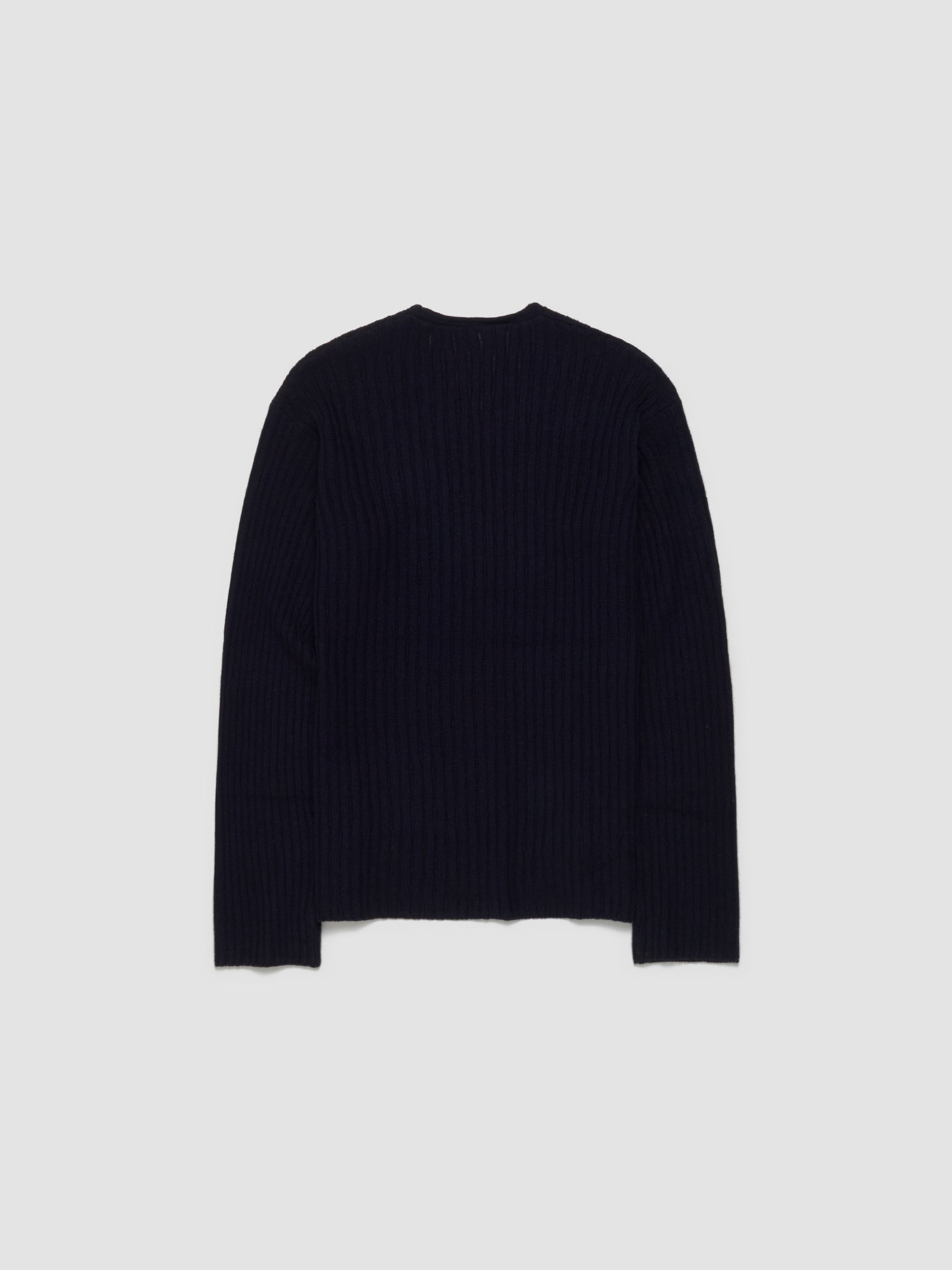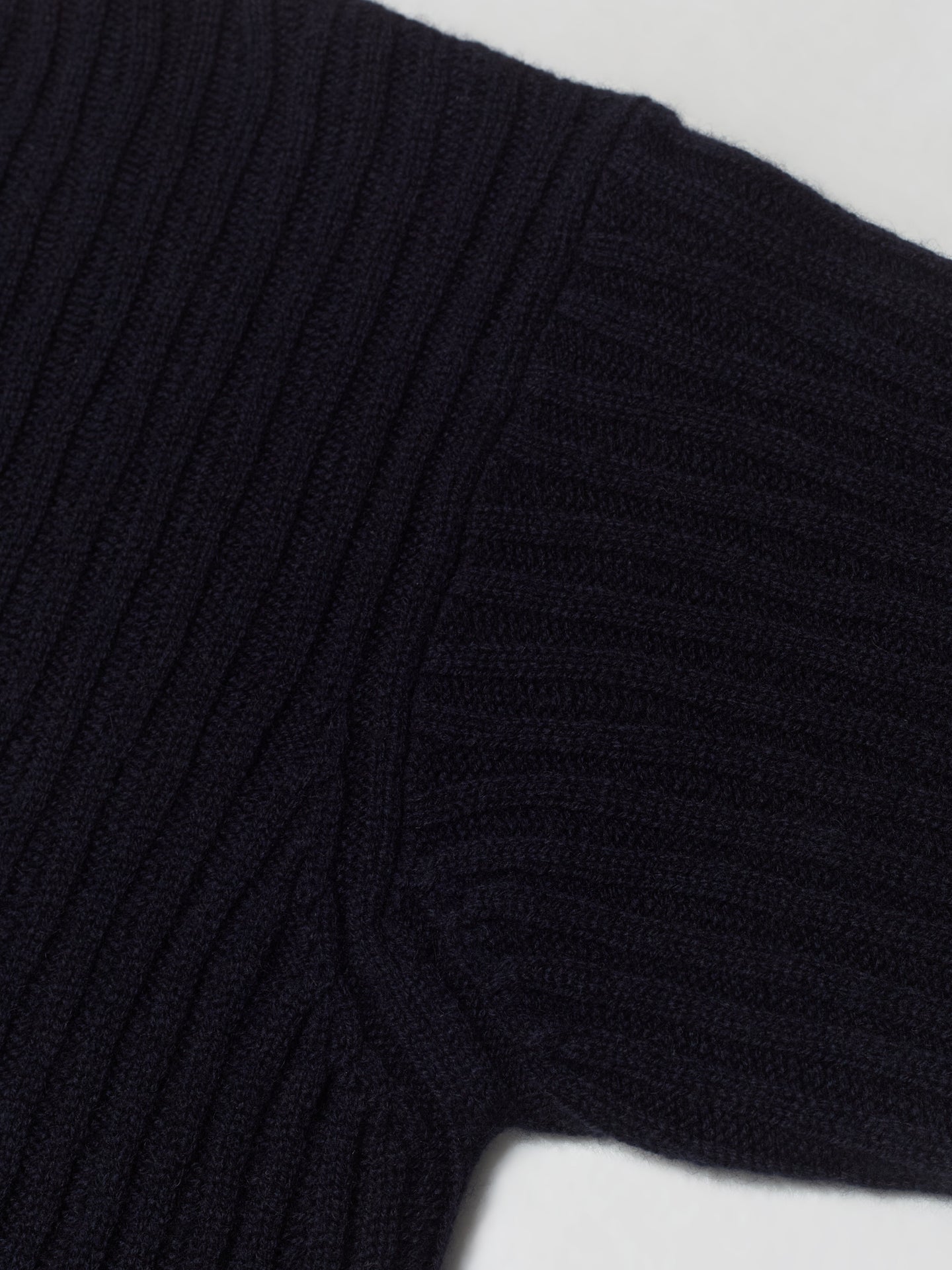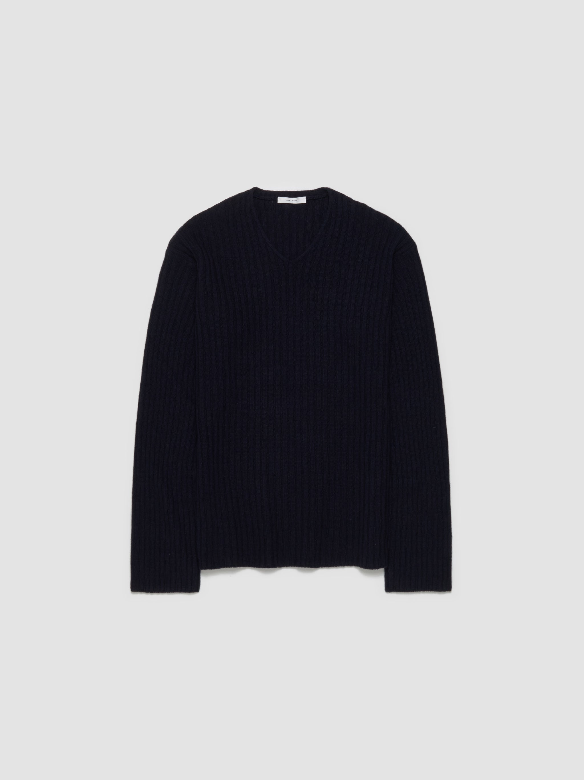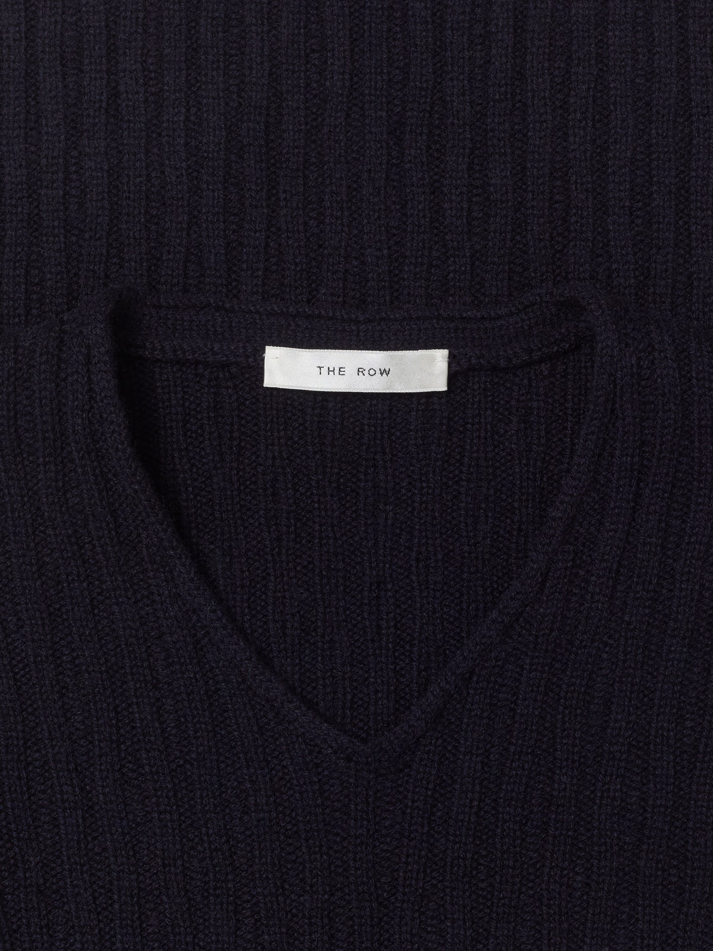 The Row Gustave Sweater in Dark Navy is made from 100% cashmere following a boxy silhouette with ribbed knit.