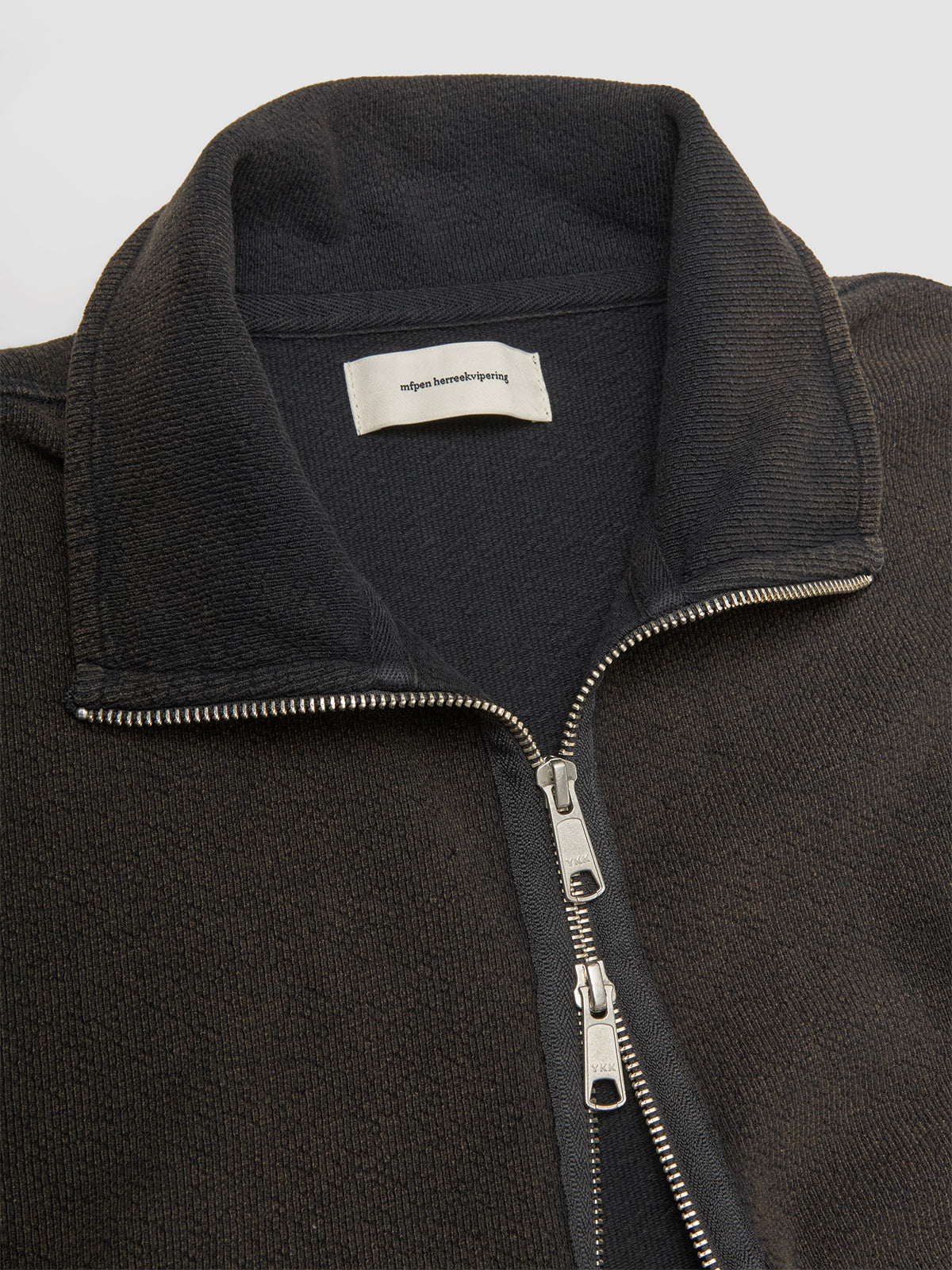 mfpen Cropped Covet Full Zip in Burned Black is made from 100% cotton following a boxy silhouette with elasticated hem and cuffs.