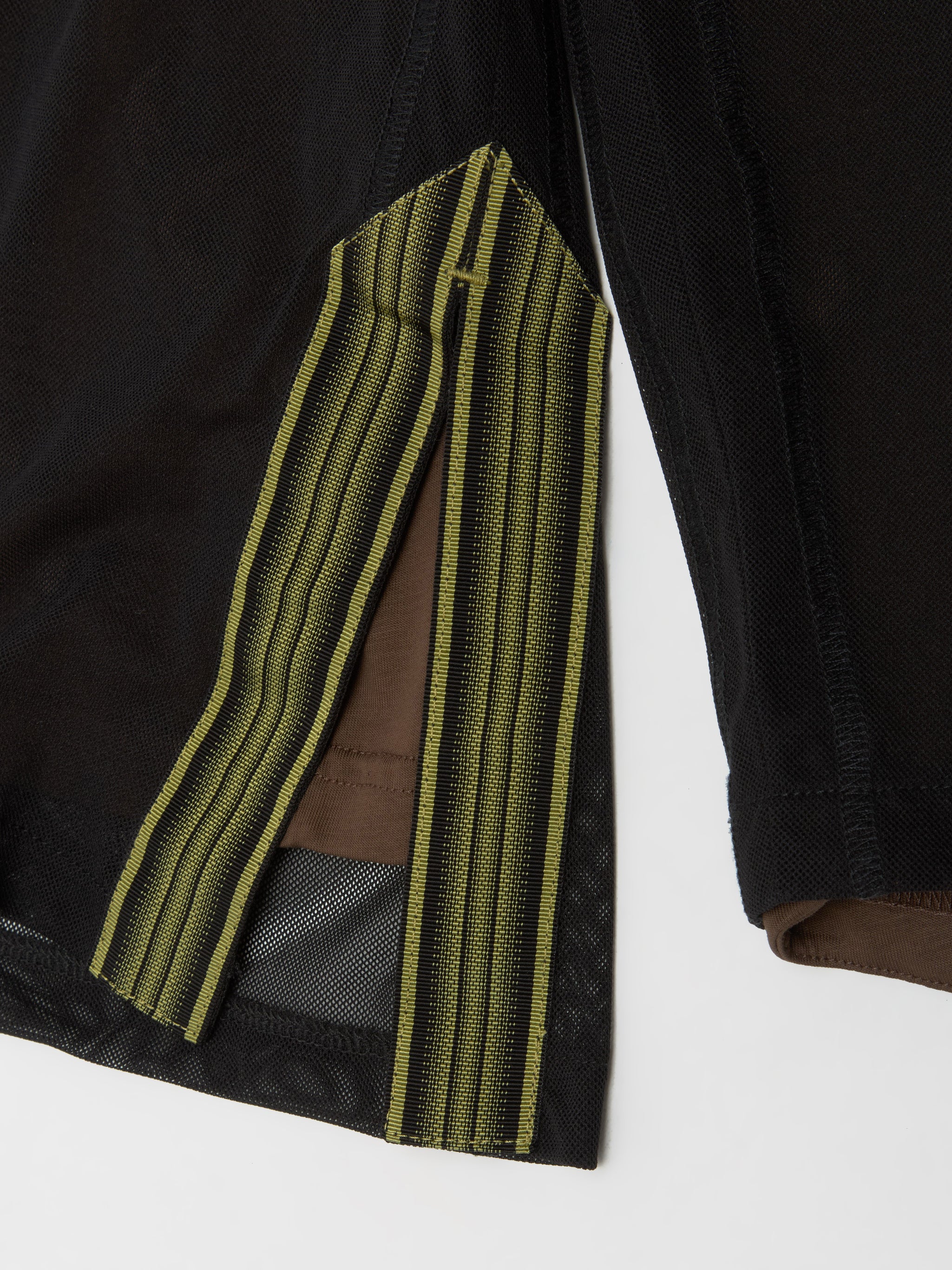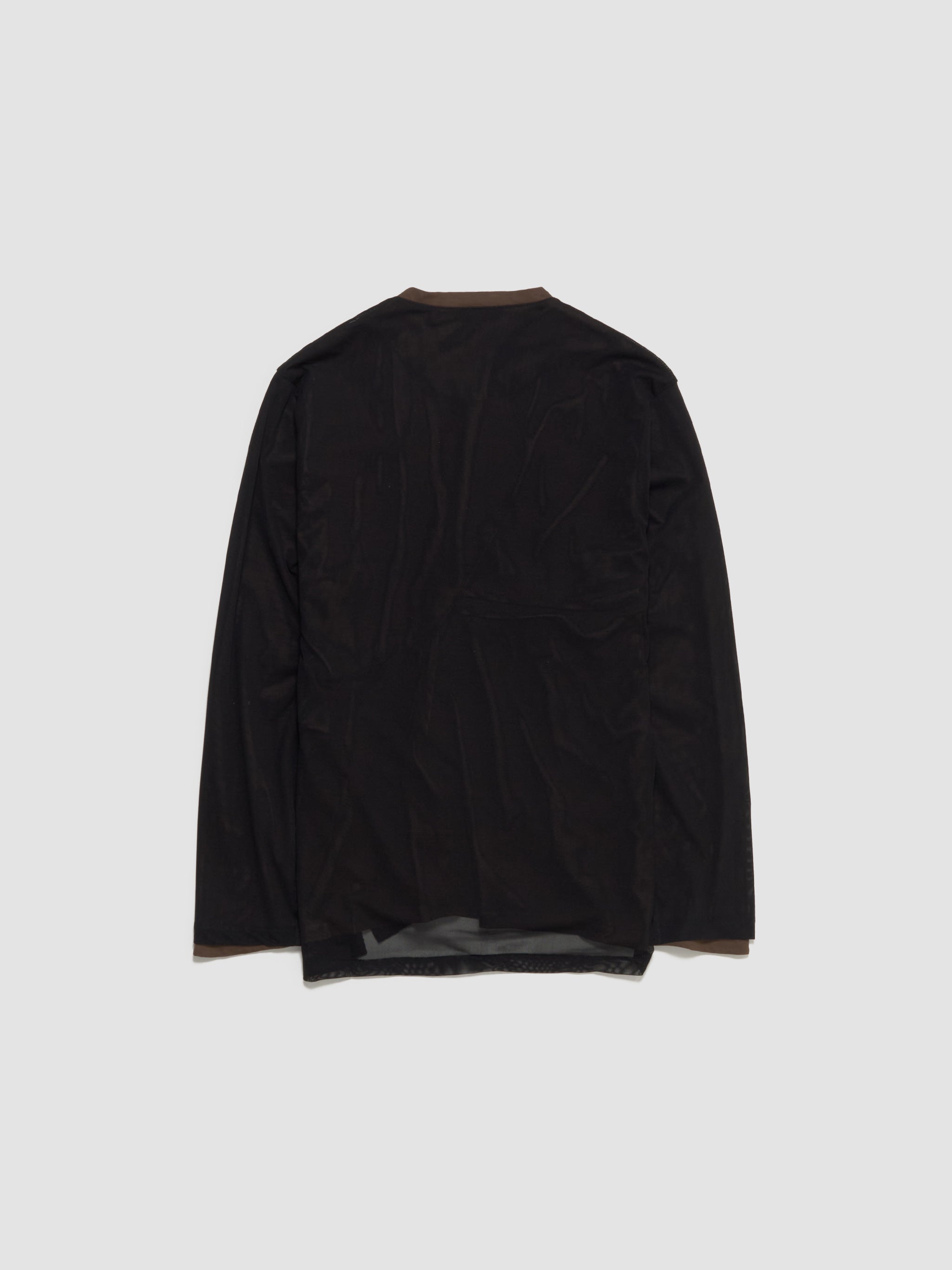 KIKO KOSTADINOV Inex Mesh Top in Brown & Black is made from 100% cotton following a relaxed silhouette with asymmetrical seams.