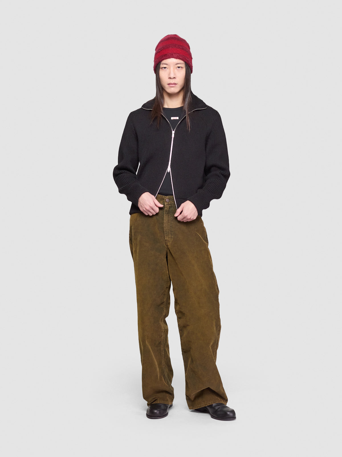 Maison Margiela Zip Wool Cardigan in Black is made from 100% wool following a boxy silhouette with a high-neck collar.