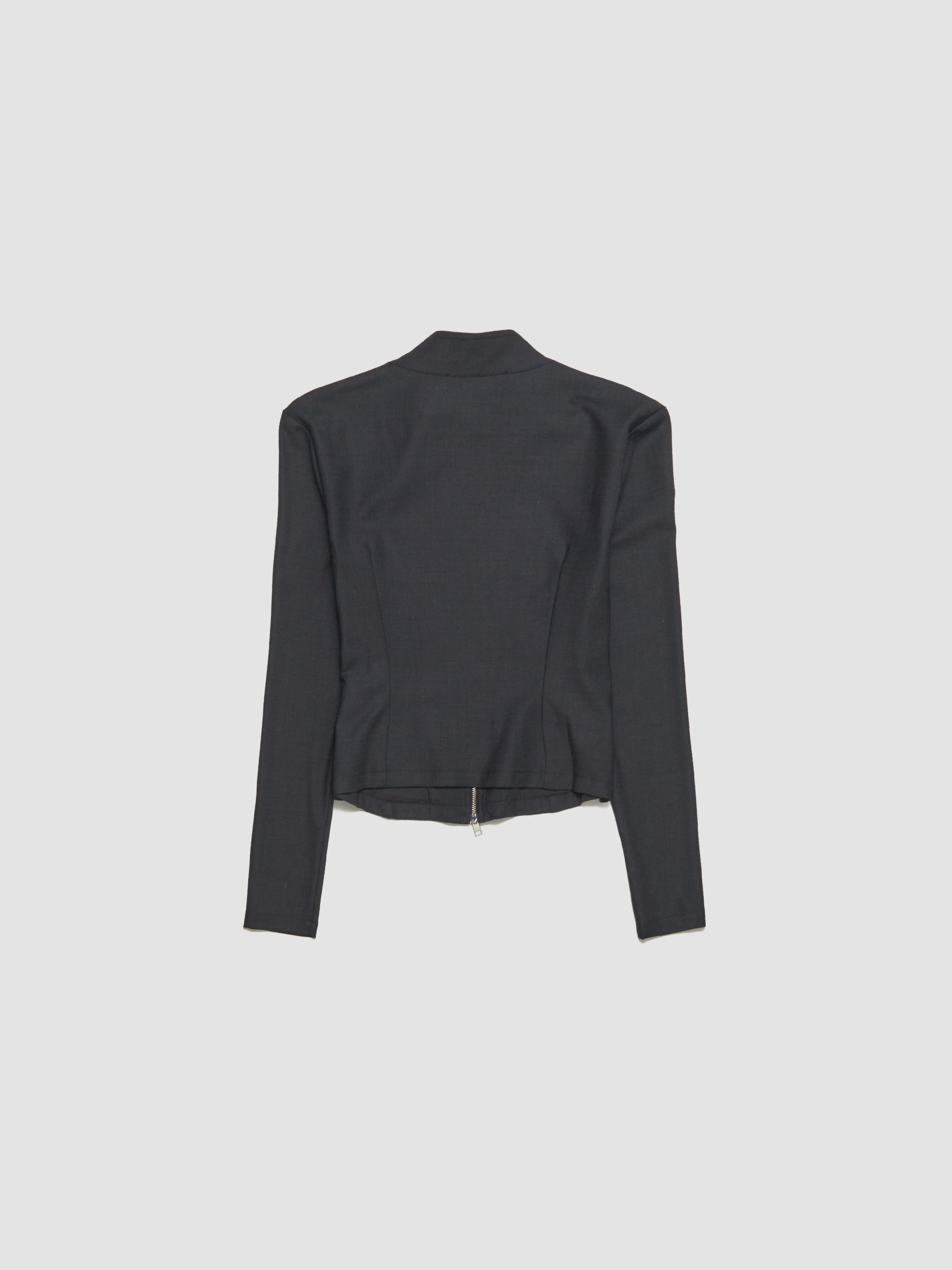 Paloma Wool Fumi Jacket in Grey is made from a wool blend following a fitted silhouette with silver grommet details.