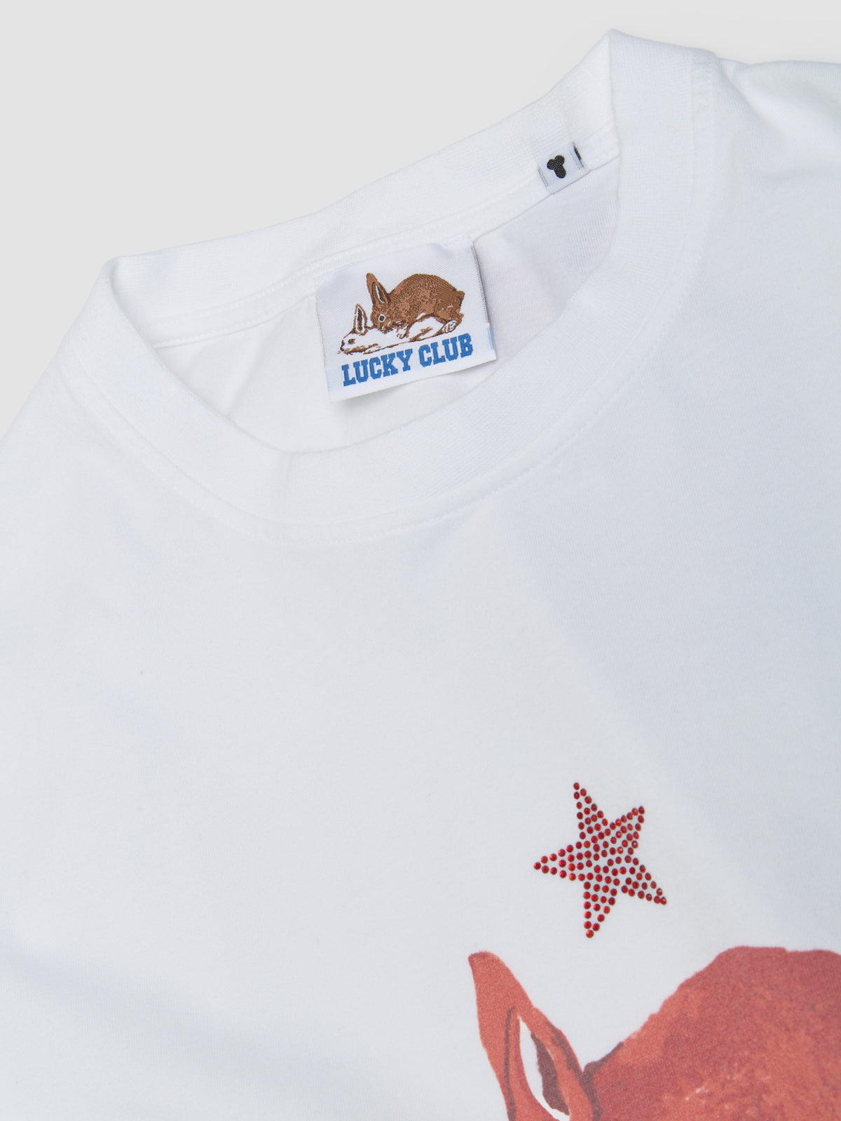 Carne Bollente Lucky Club T-Shirt in White is made from 100% cotton following a regular silhouette with a graphic print at the front.