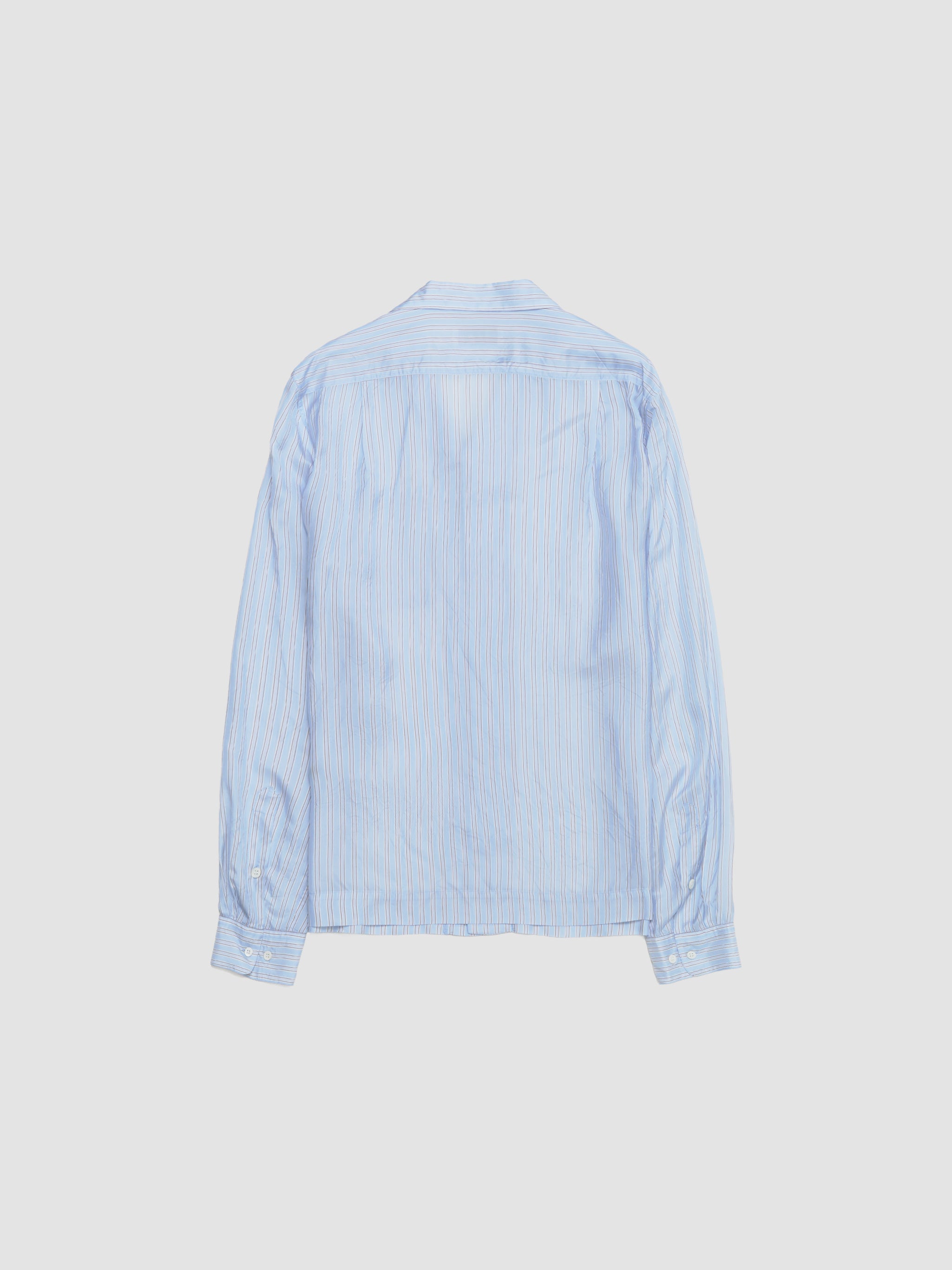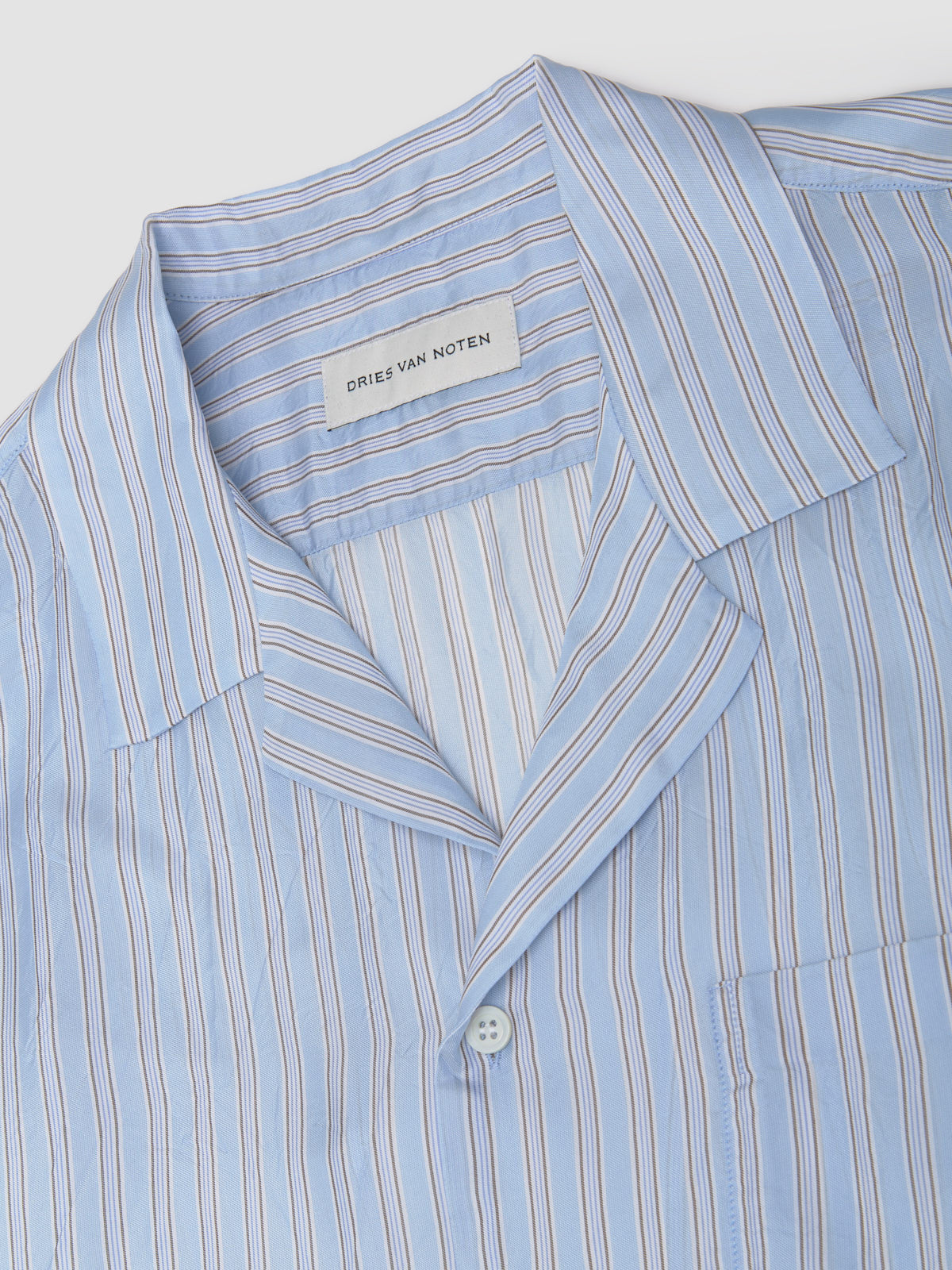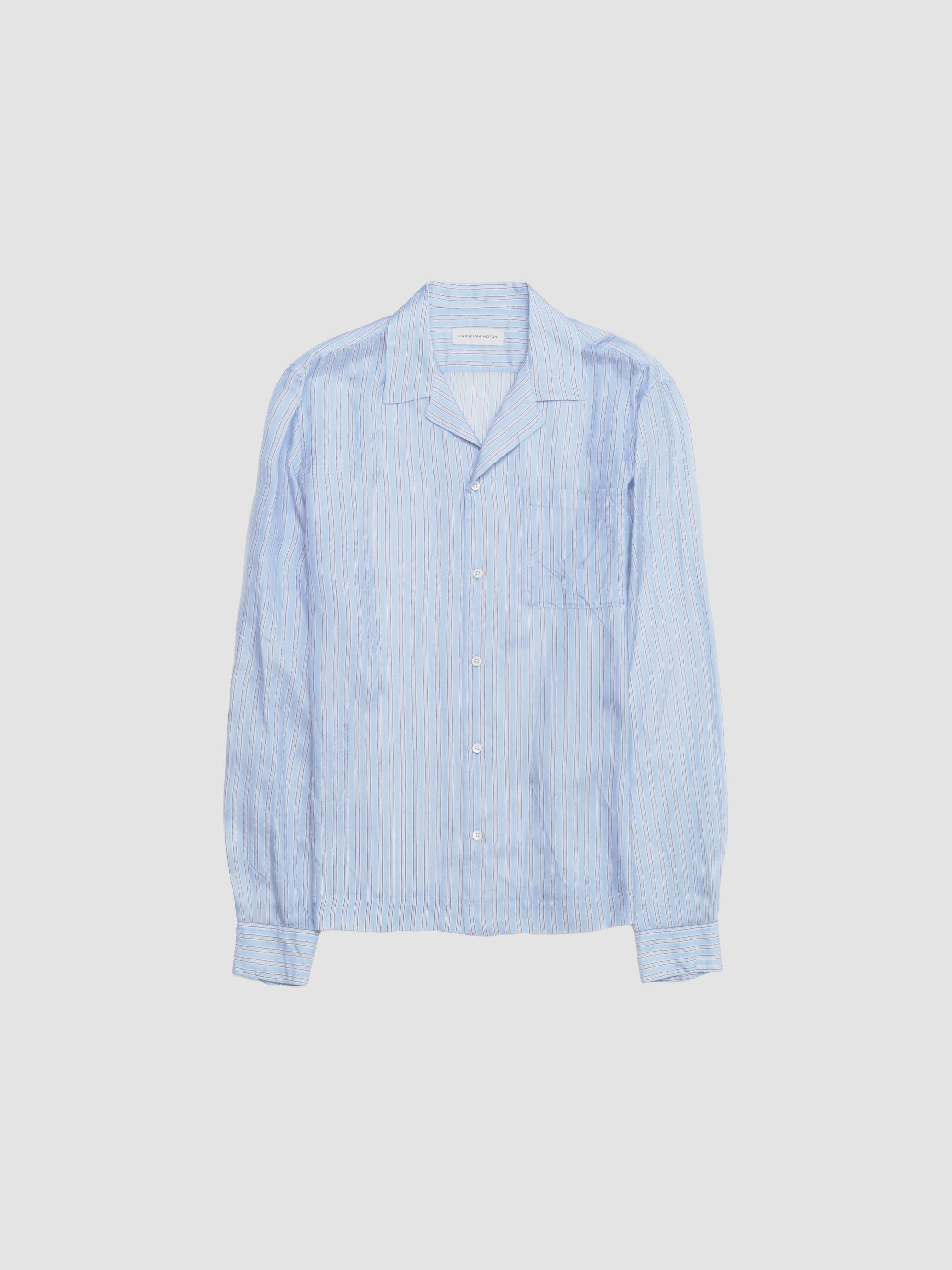 Dries Van Noten Carlty Shirt in Light Blue is made from 100% cupro following a relaxed silhouette with an all-over striped pattern.