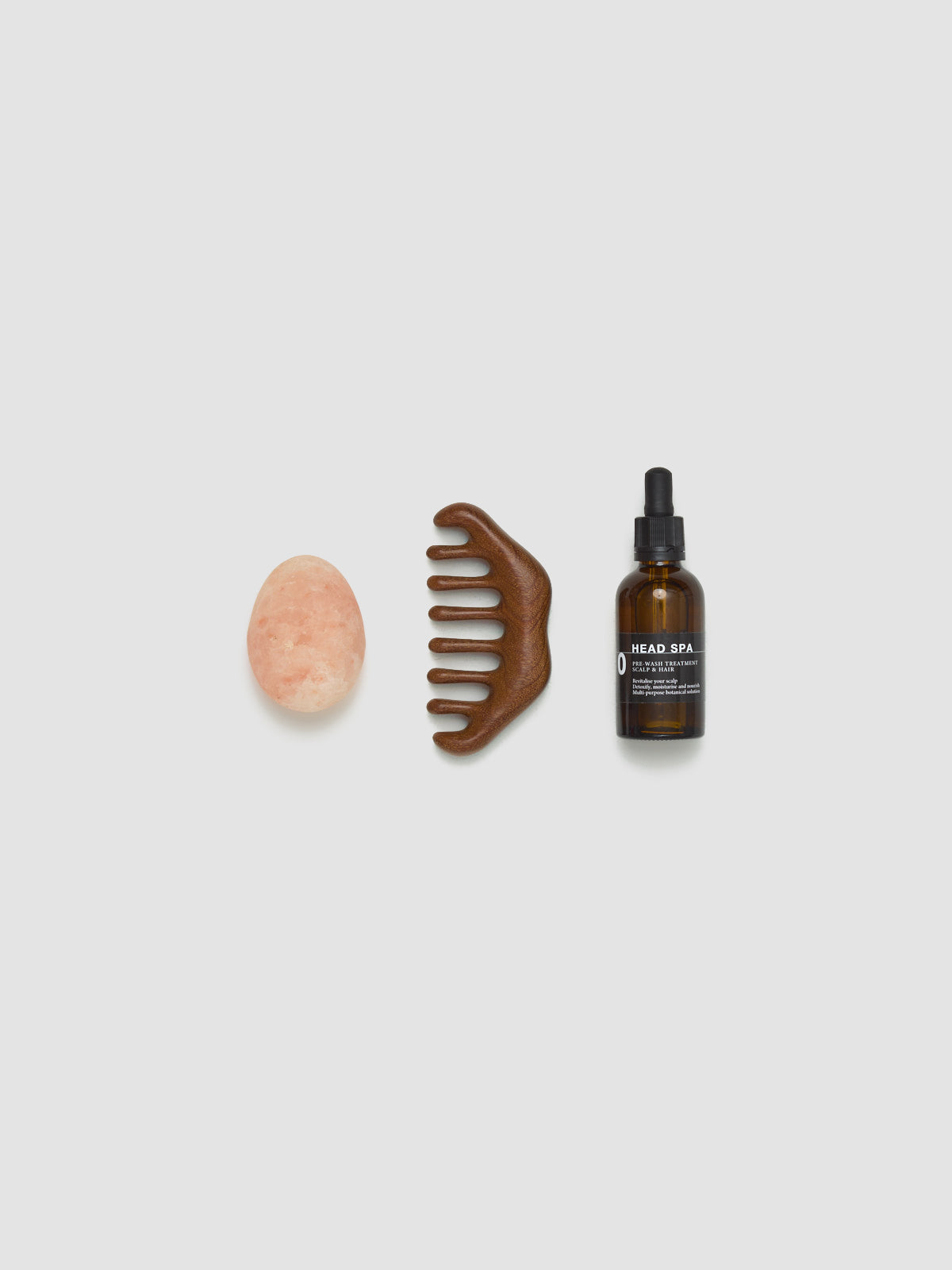 Head Spa Multi-Purpose Botanical Solution 50ml, Himalayan Crystal Salt Deodorant Bar 190g, Scalp Massage Wooden Comb