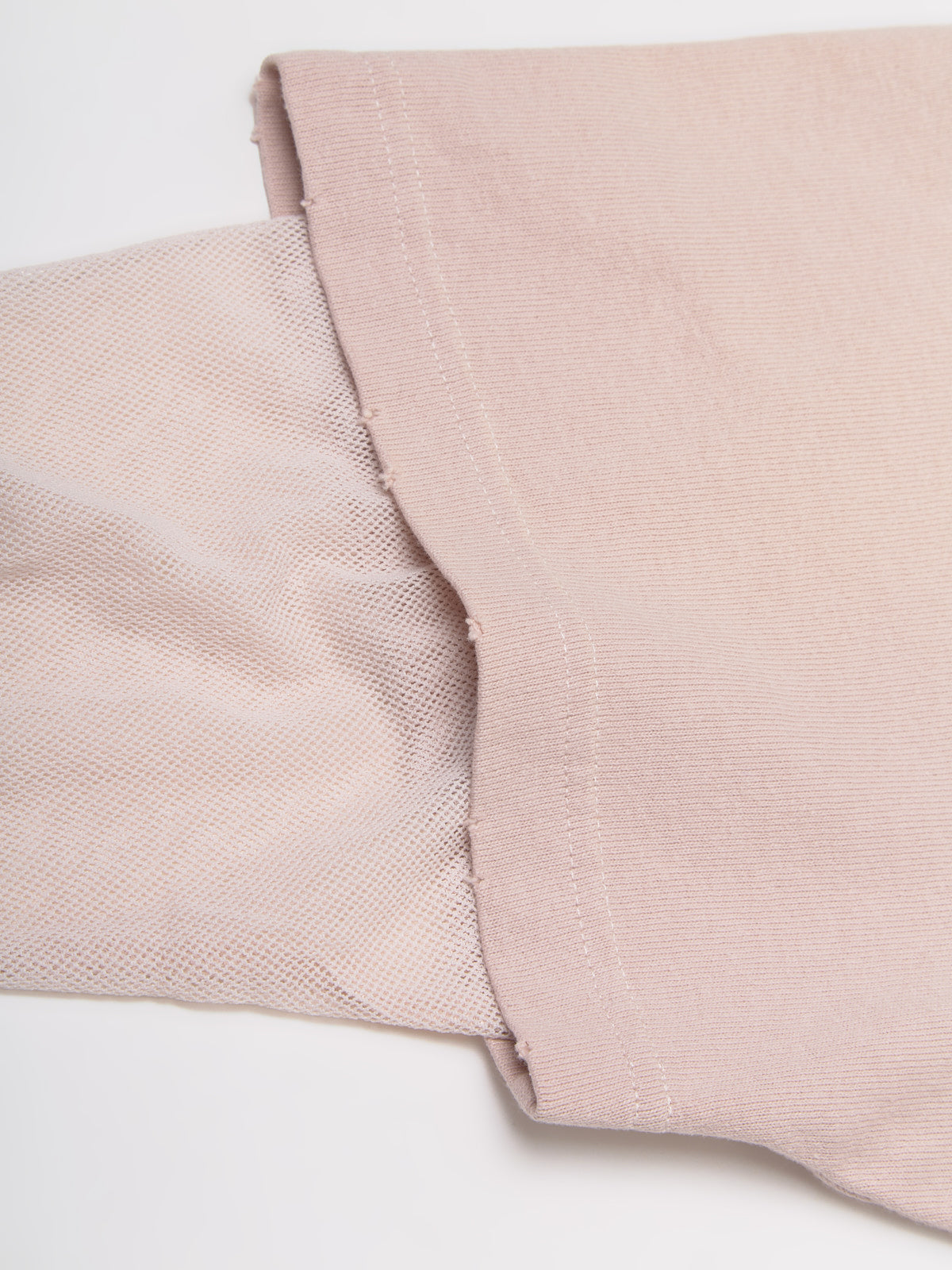 Acne Studios Layered Print T-Shirt in Violet Pink is made from 100% cotton following a relaxed silhouette with a mesh long sleeve underlayer.
