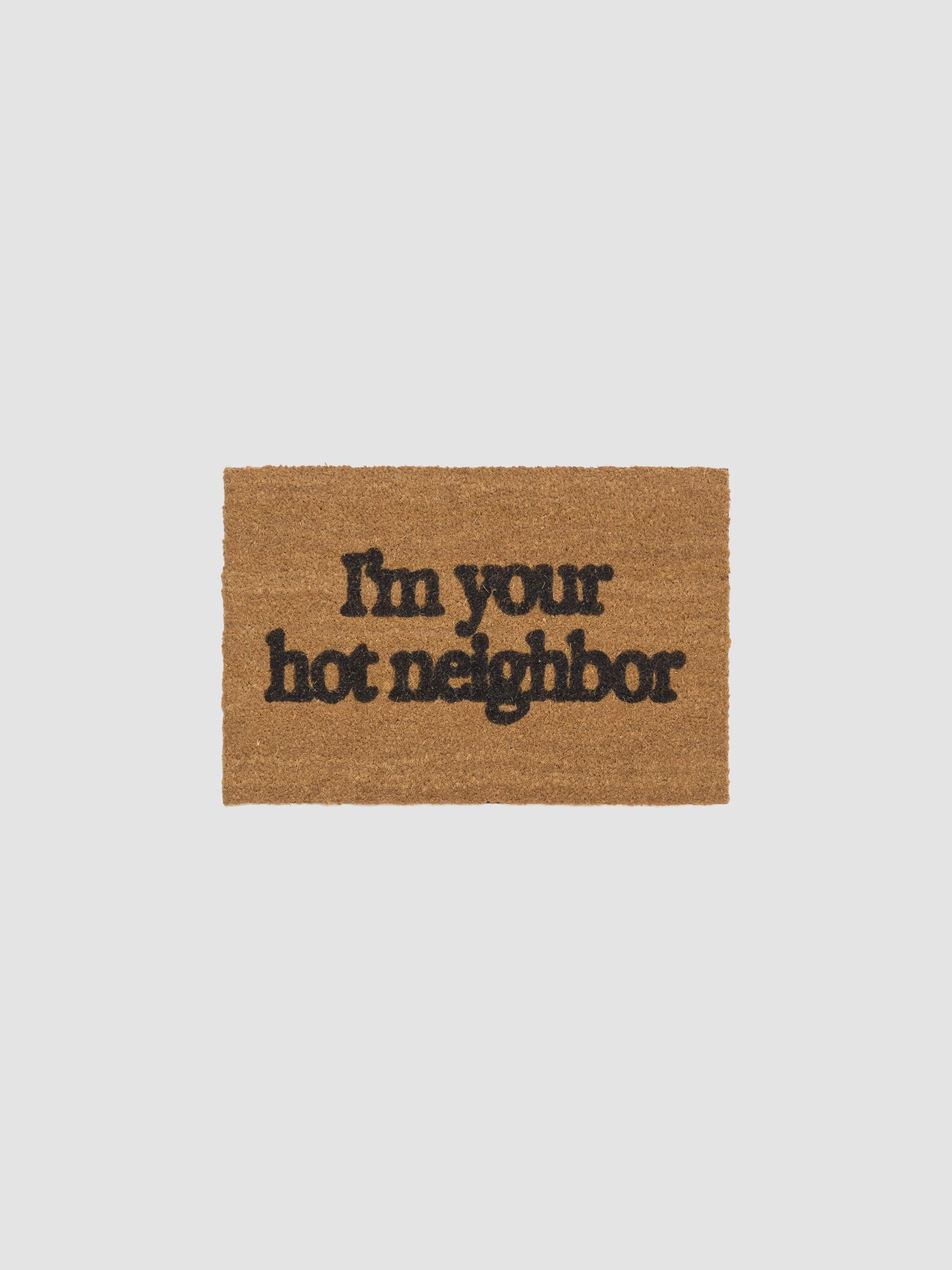 Carne Bollente Hello Neighbor Rug in Natural is made from 100% coconut fiber featuring a text graphic.