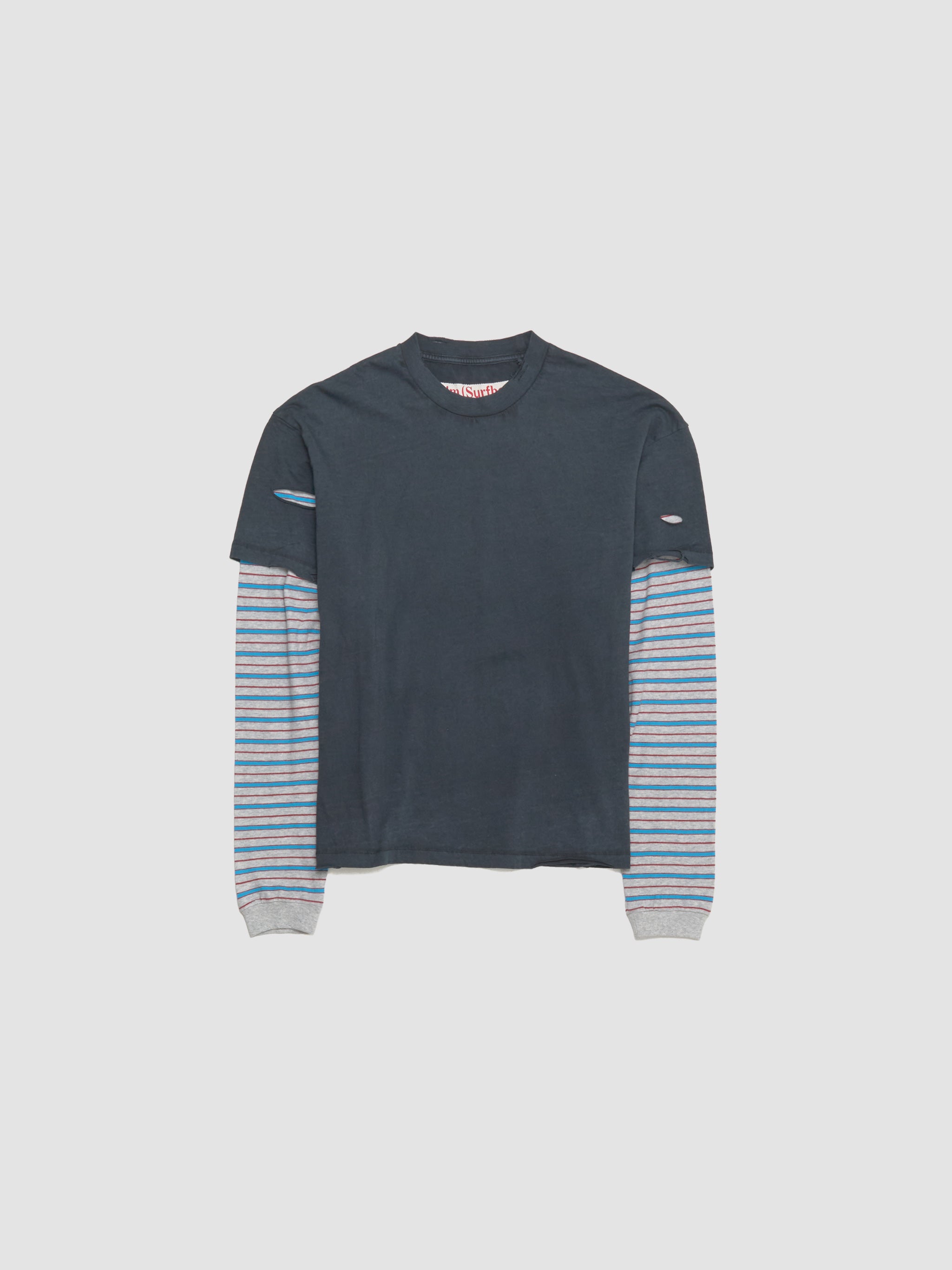 Stockholm Surfboard Club Layer Box T-Shirt in Black & Stripe is made from 100% cotton following a relaxed silhouette with a layered construction.