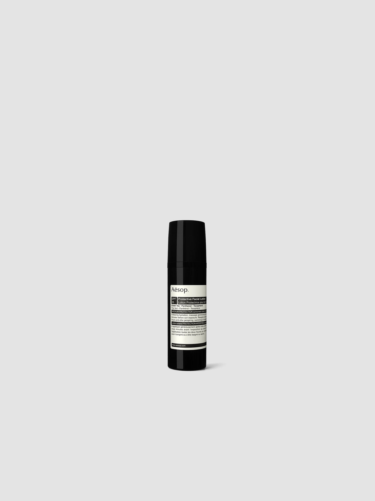 Protective Facial Lotion SPF25 by Aesop is a broad–spectrum moisturising sunscreen with high SPF25 protection—formulated to provide up to four hours’ water resistance—with a lightweight skin feel and refreshing aroma.