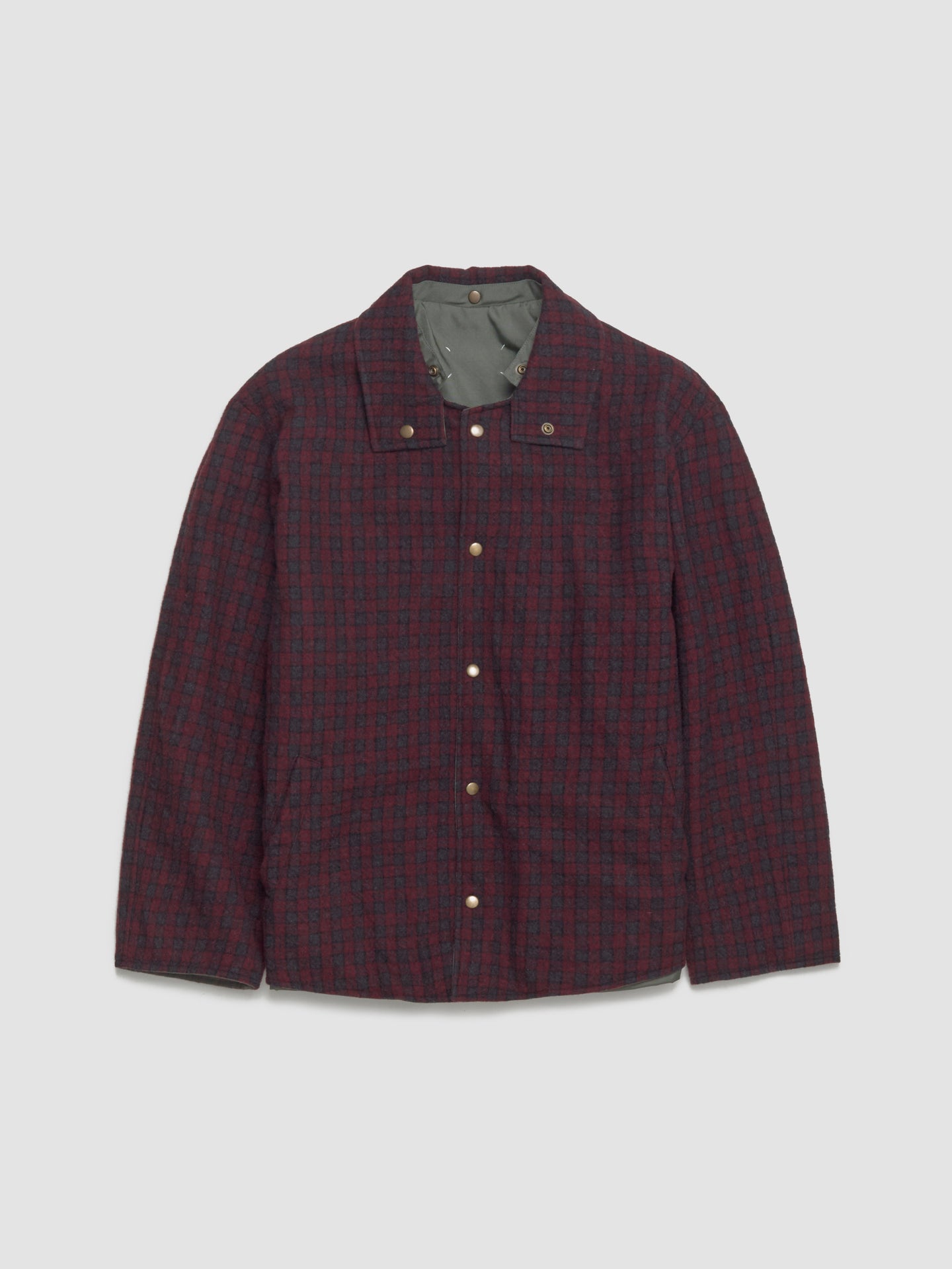 Maison Margiela Sport Jacket in Military & Burgundy Check is made from wool and polyamide following an oversized silhouette with a reversible construction.